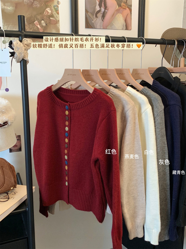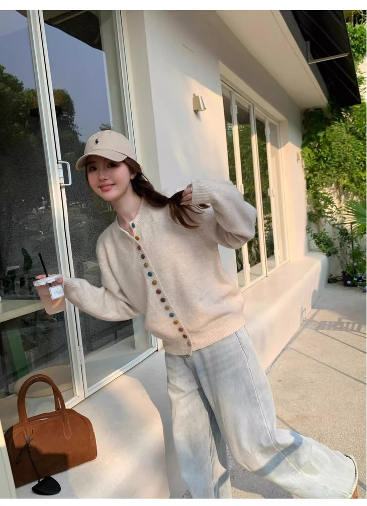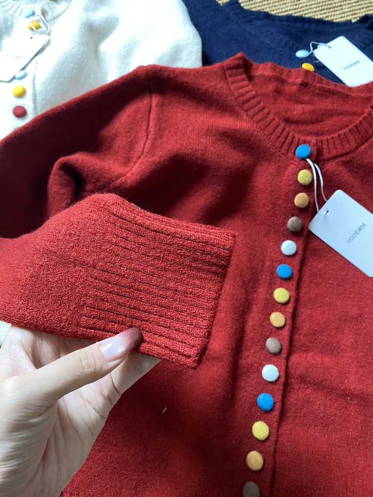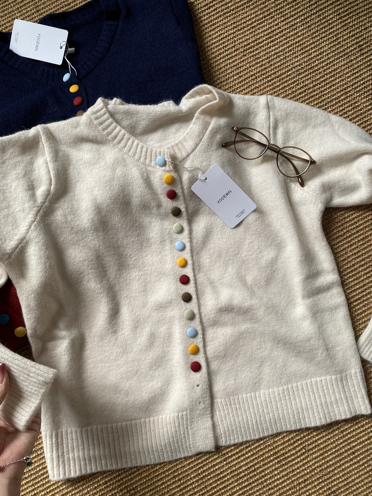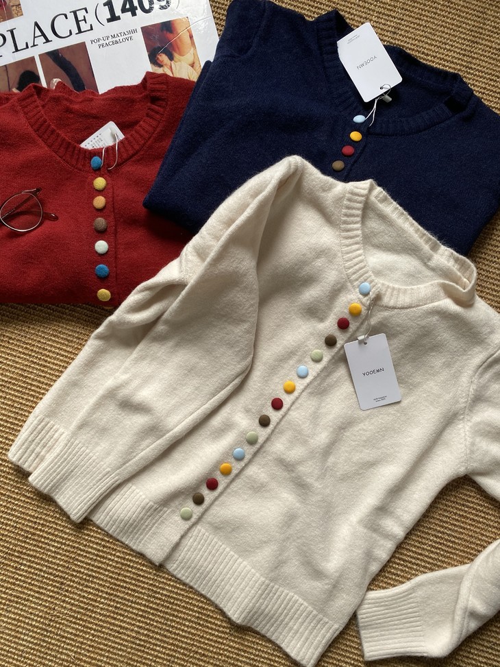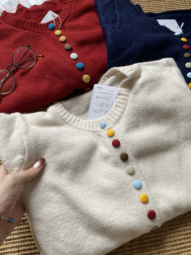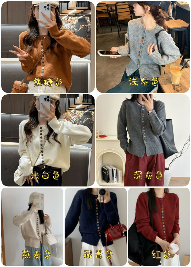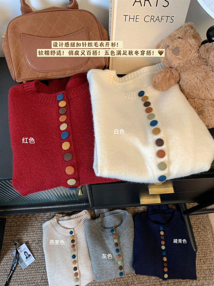 🥰品牌同款【秋季韩系羊毛混纺彩扣针织开衫慵懒毛衣】🎉秋天怎么能没有一件开衫!👍超高品质版本!超~舒~服~面料无敌软糯,🤩和普通开衫不一样的柔软度~!