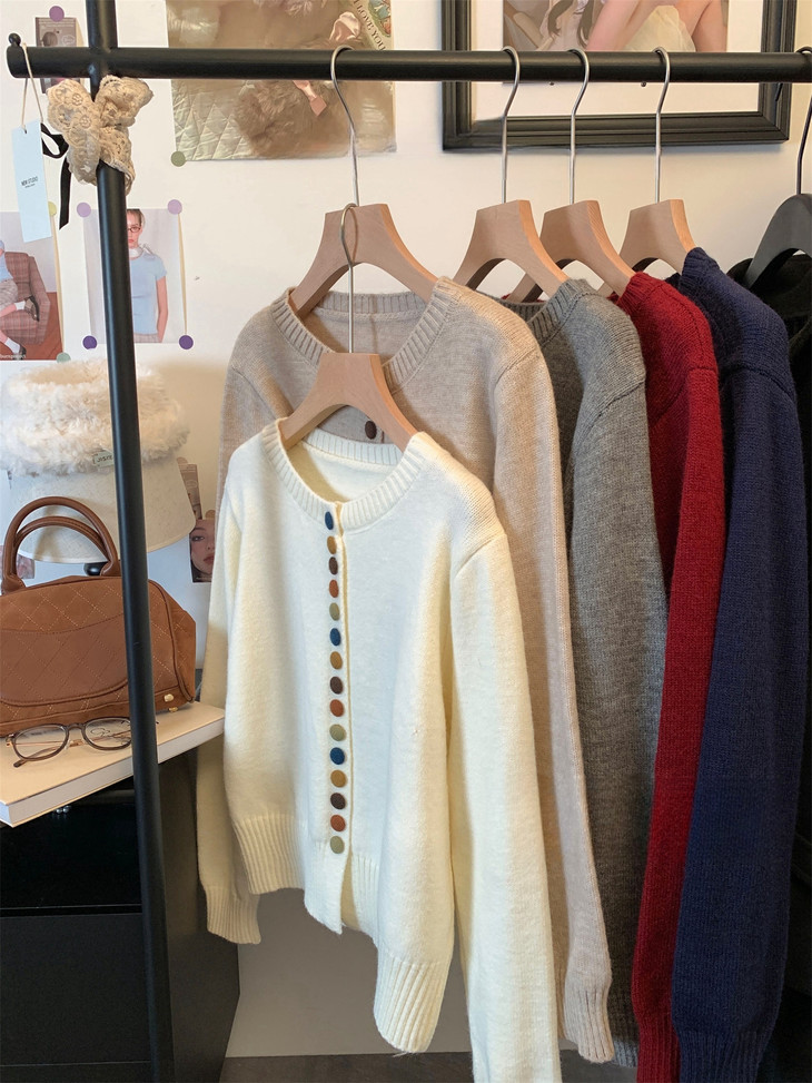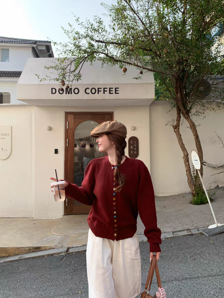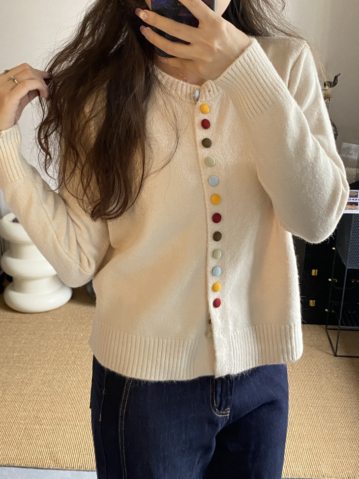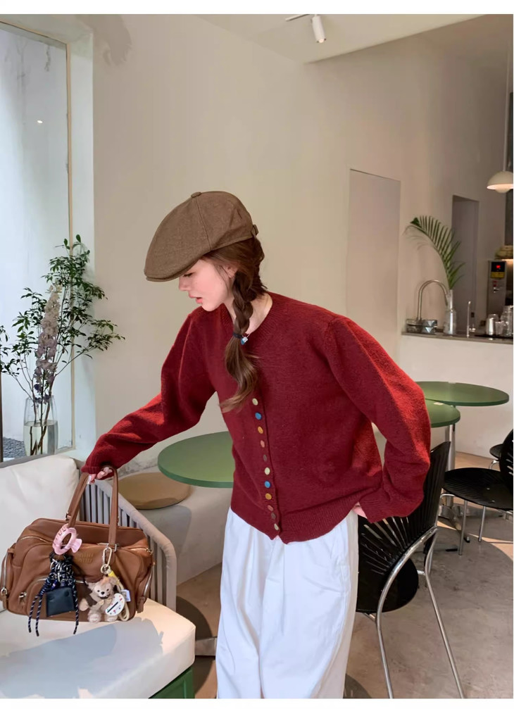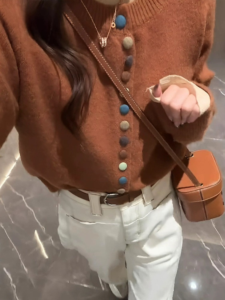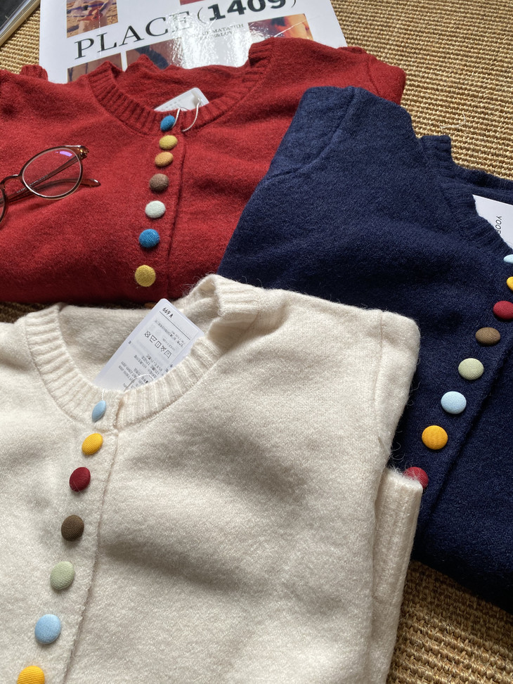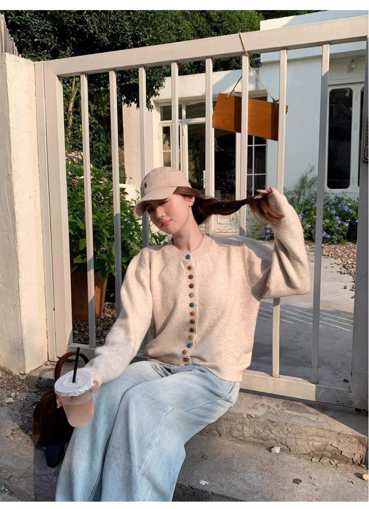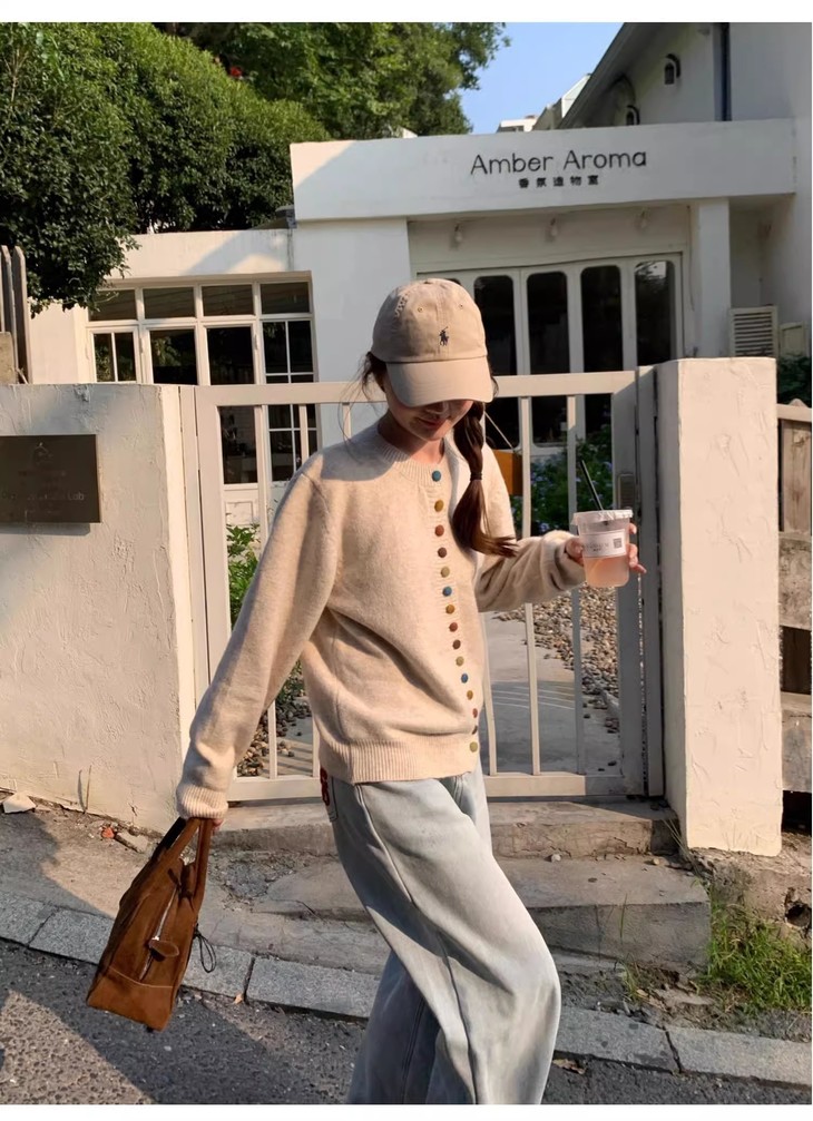 🥰品牌同款【秋季韩系羊毛混纺彩扣针织开衫慵懒毛衣】🎉秋天怎么能没有一件开衫!👍超高品质版本!超~舒~服~面料无敌软糯,🤩和普通开衫不一样的柔软度~!