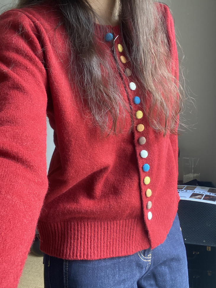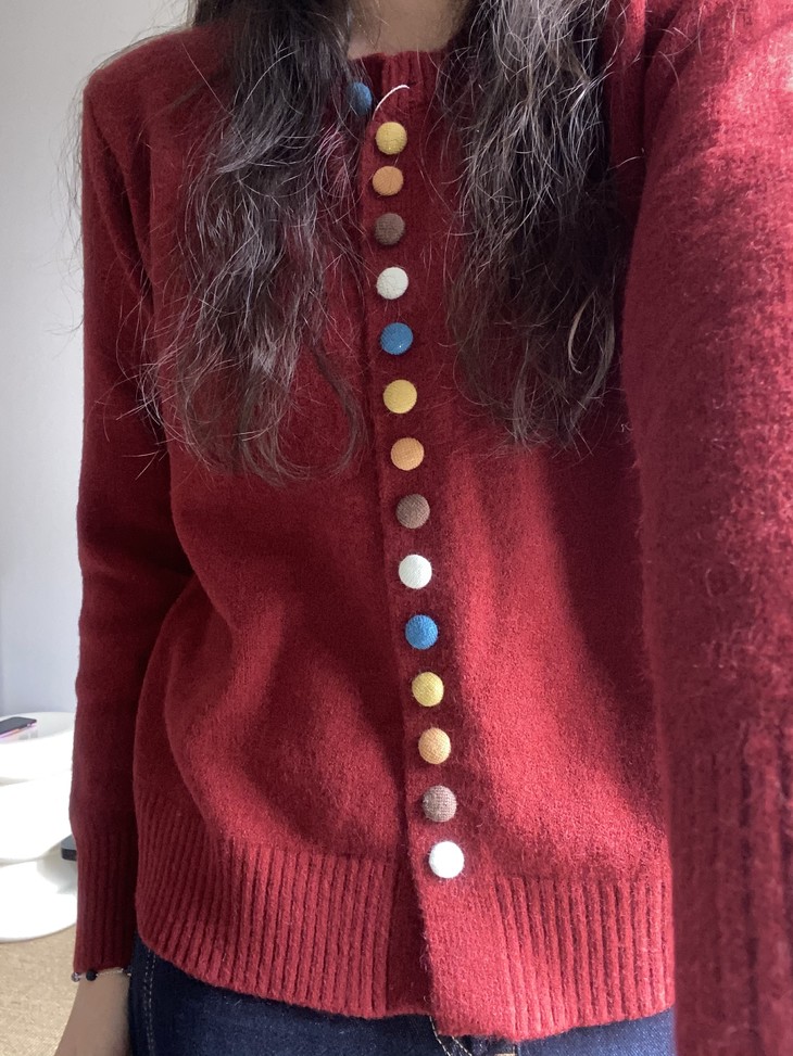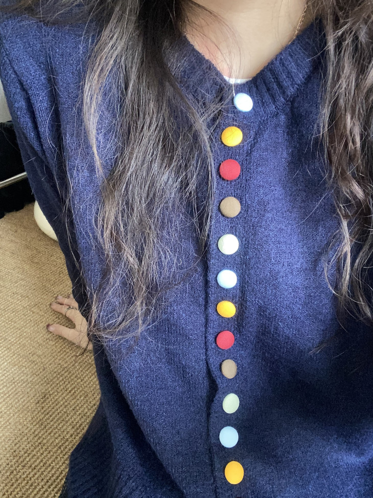 细腻的羊毛混纺材质 上身自然显腰身,真的超级显瘦 编织的彩色纽扣的搭配!基础色也可以变得很百搭‼️ 有了这样的撞色小巧思,又变得很特别 穿上就是优雅本身,上身超有品❗️ 不仅显瘦显身材 还有轻熟Lady的知性大方