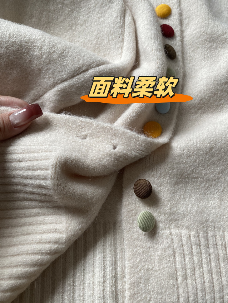 真的是一件秋冬让人无法拒绝的慵懒风开衫! 穿上就是氛围感满满! 超显气质的开衫谁能拒绝! ✅手工编织的彩色纽扣,真的超级超级起范儿! ✅超柔面料,细节满满,亲肤又保暖!质感一级棒! ✅而且还不易粘毛起球!