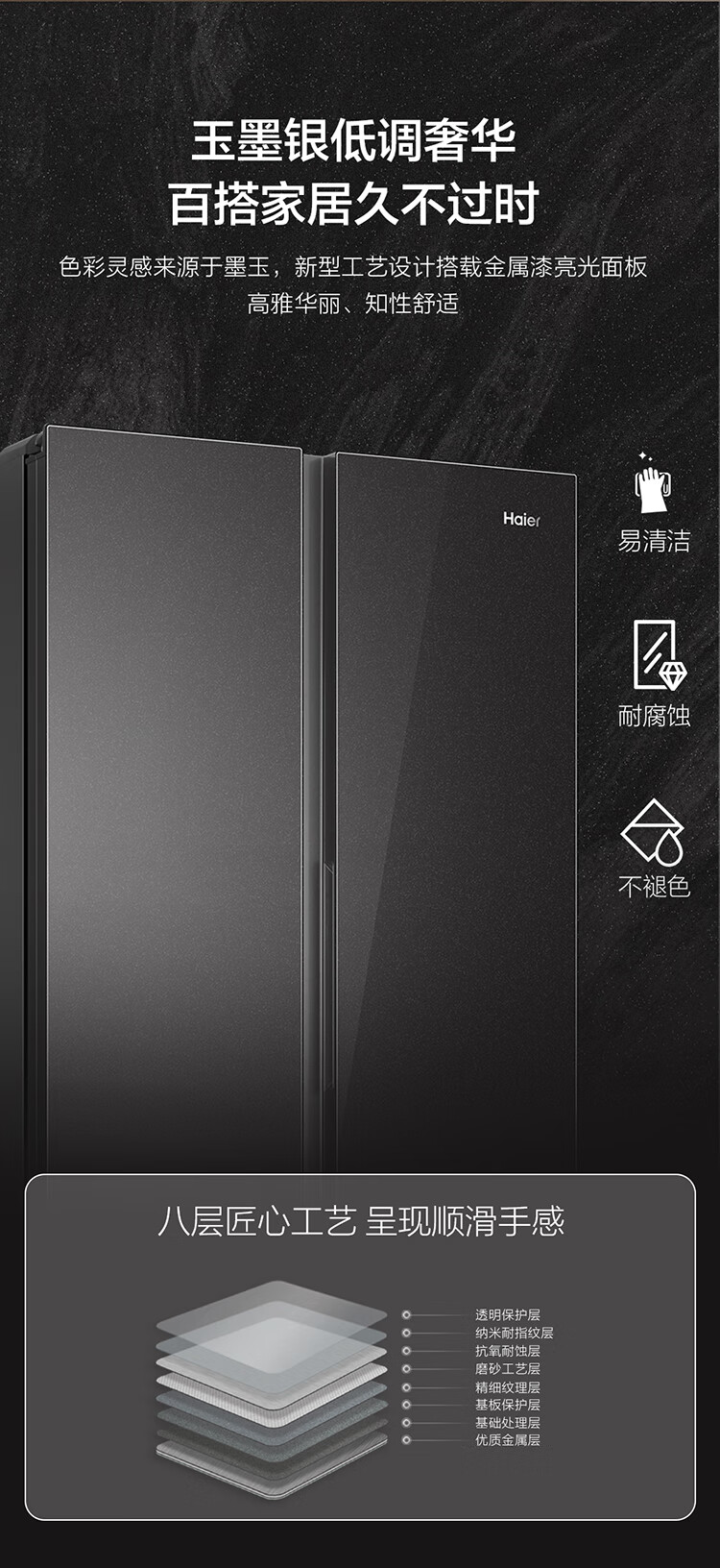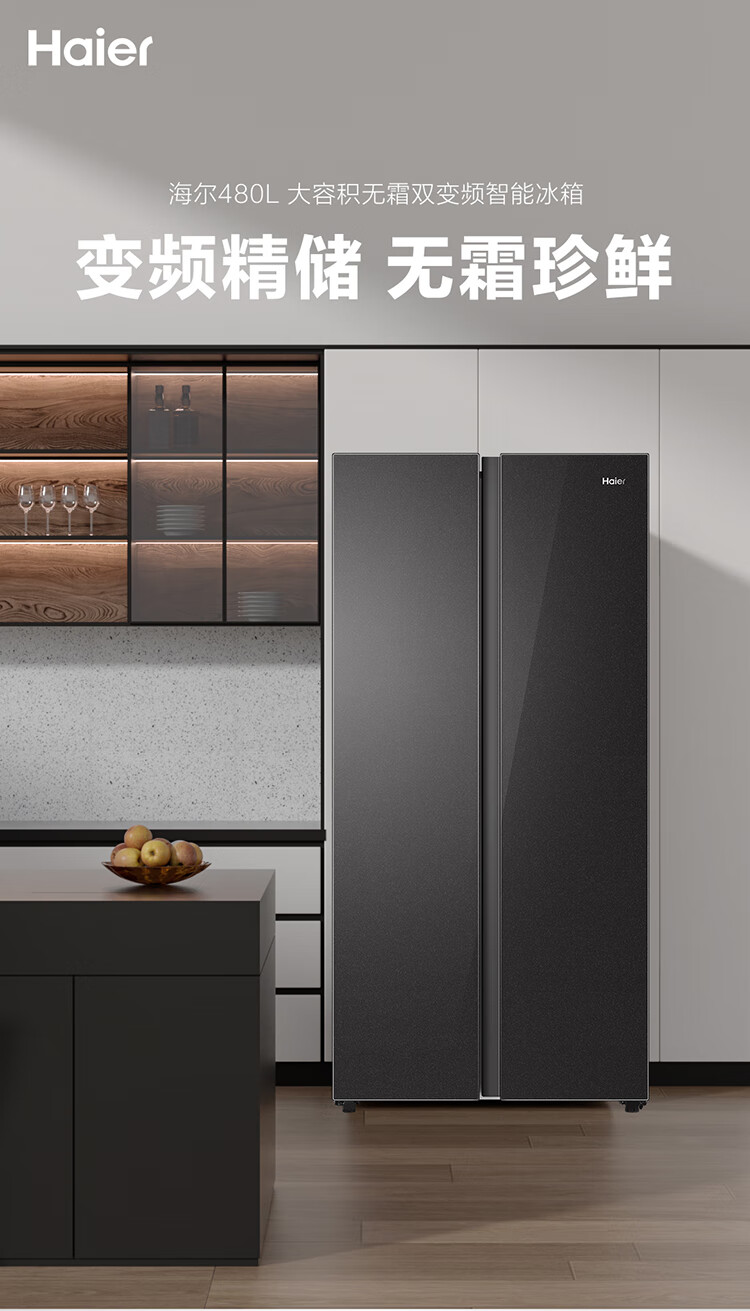 海尔(Haier)480升风冷无霜彩晶变频对开门大容量超薄家用电冰箱BCD-480WGHSSEDSLU1