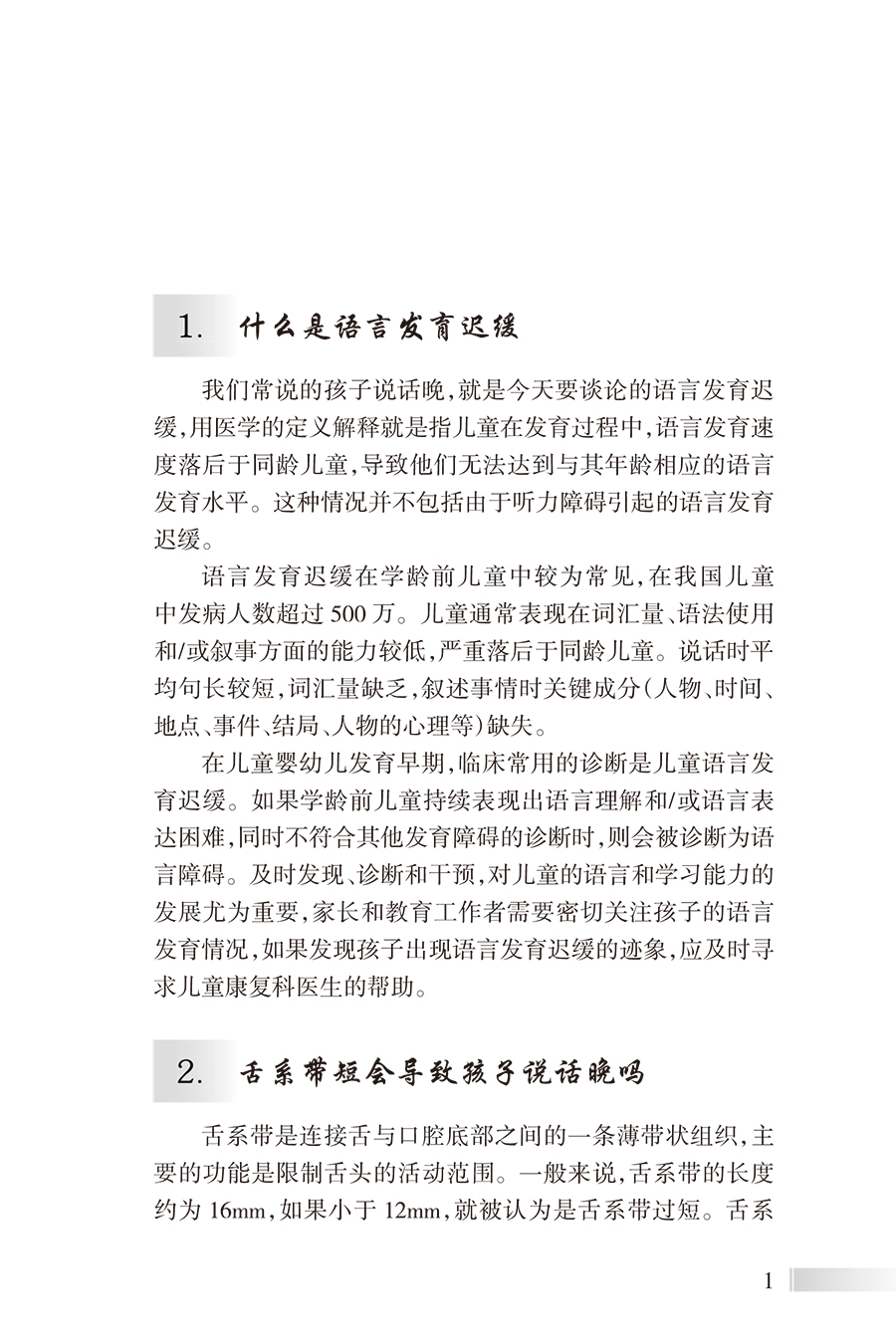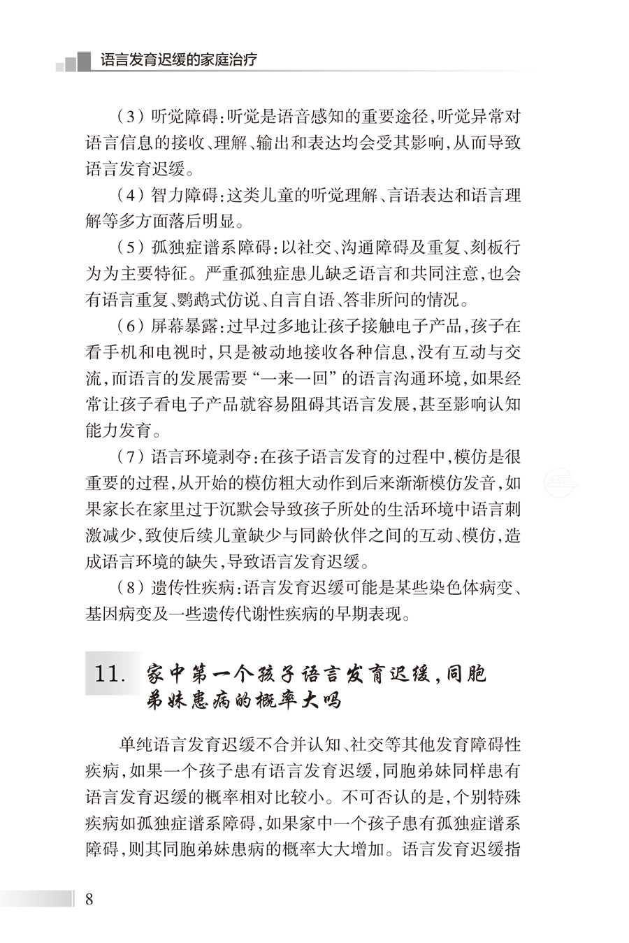 语言发育迟缓的家庭治疗 语言发育迟缓与饮食习惯 舌系带短 孤独症谱系障碍 主编吕智海 龚建华 人民卫生出版社9787117364607