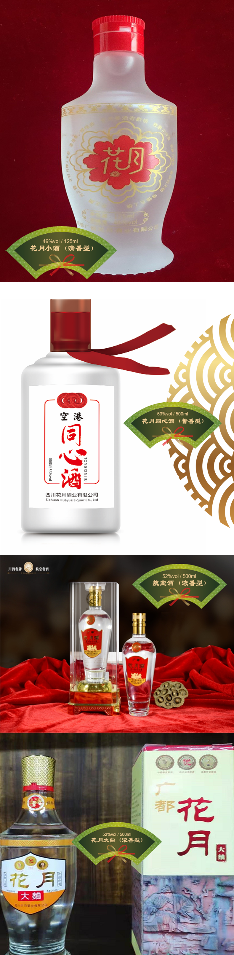 "花月"是川酒名牌,源自唐代名诗《春江花月夜》。千年窑、万年糟,高粱麦曲,单锅小灶,古法酿造,酒美如诗。有雾霭烟霞的画韵,江楼钟馨的清声。朦胧如诗的神秘,诗香酒名,百代流芳。也有华阳的古风,棠湖的繁盛,凭添一樽诗情,半盏文气。“花月”不仅是酒的冰清玉洁,回味悠长。更是陶潜的秋菊,苏轼的江月,李太白的人生梦,张若虚的孤篇诗。