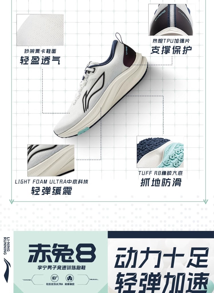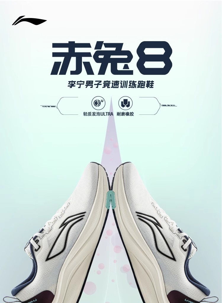 李宁 赤兔8 男款2025春季新款轻量竞速低帮训练运动跑步鞋