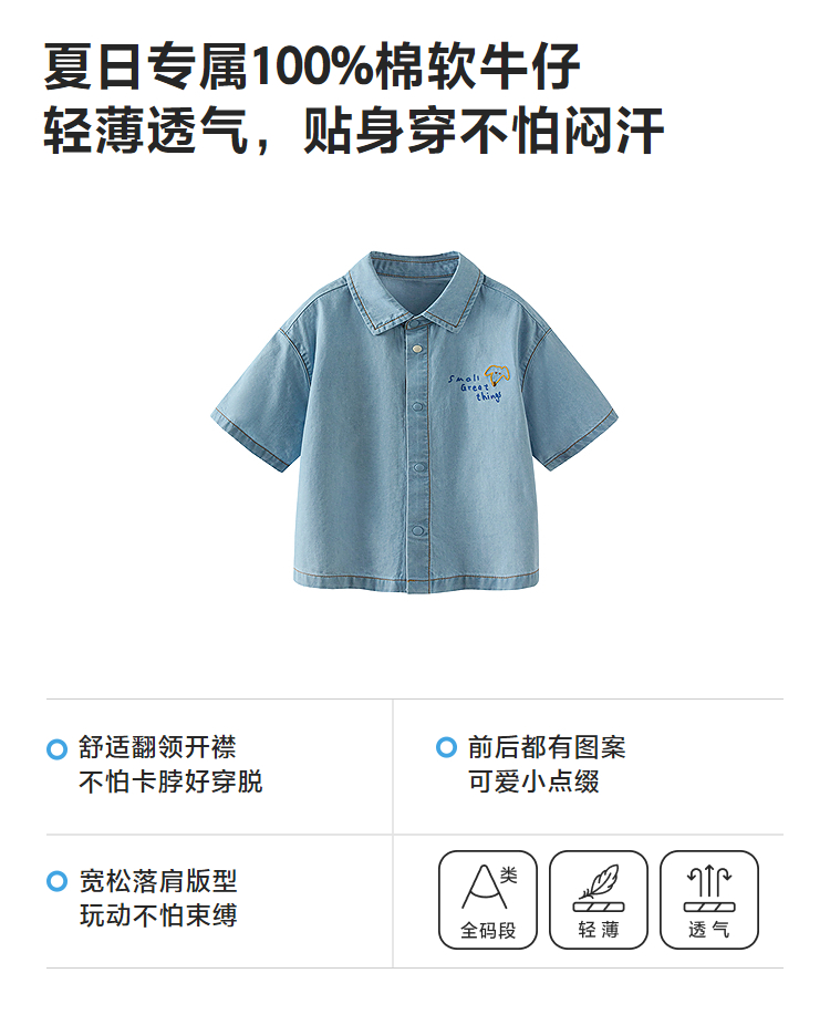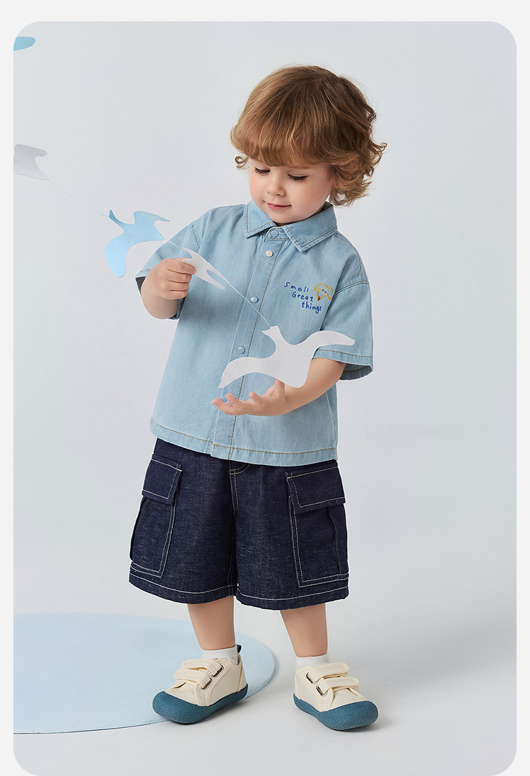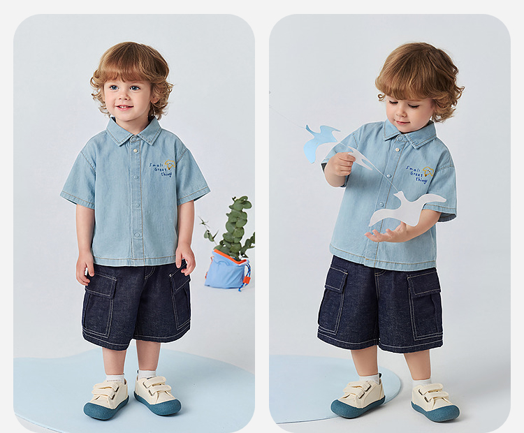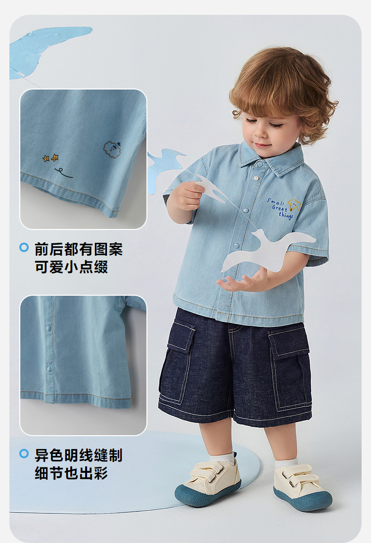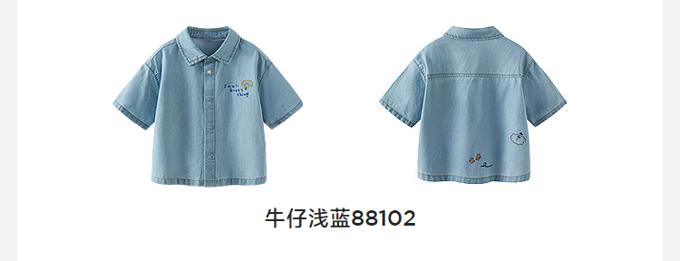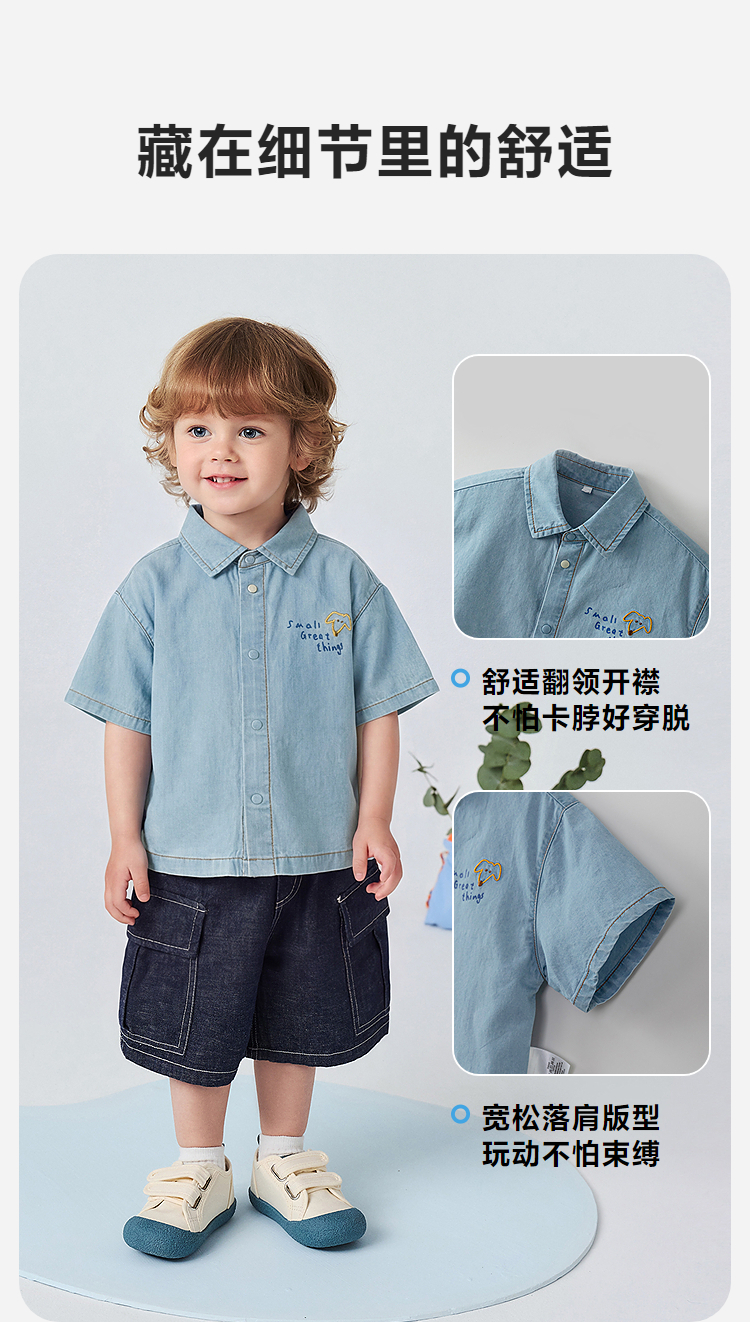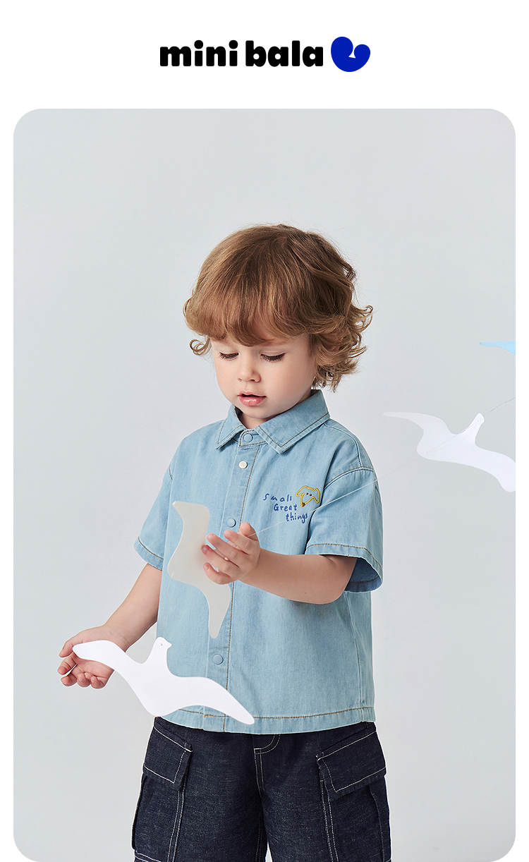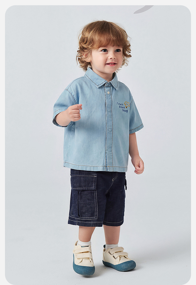 [纯棉]迷你巴拉巴拉男童短袖衬衫牛仔柔软透气轻薄上衣26夏新品