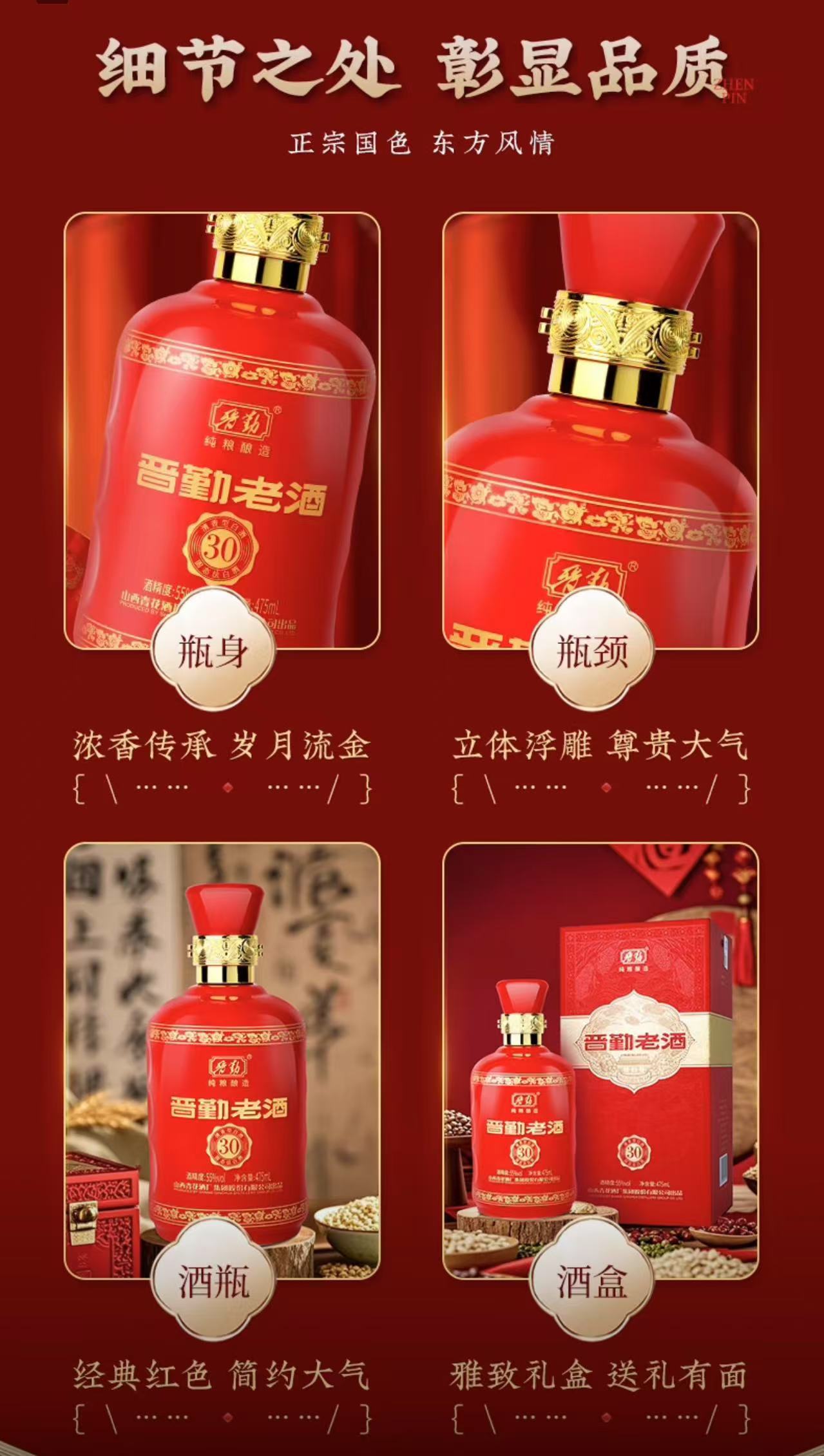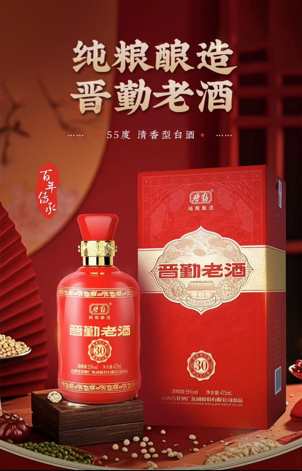 汾酒 55度晋勤老酒30(475ml*6瓶)-整箱装