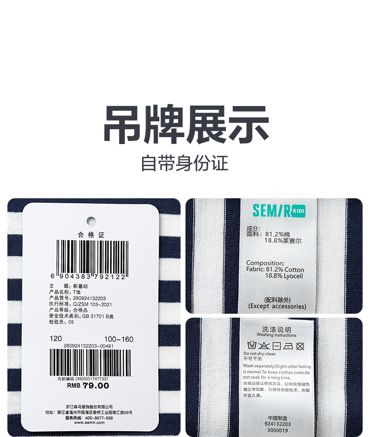 森马儿童童装长袖T恤年春季新款男童女童时尚百搭条纹打底衫