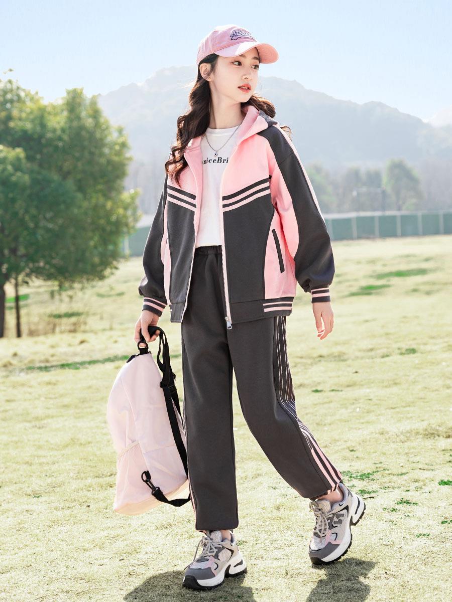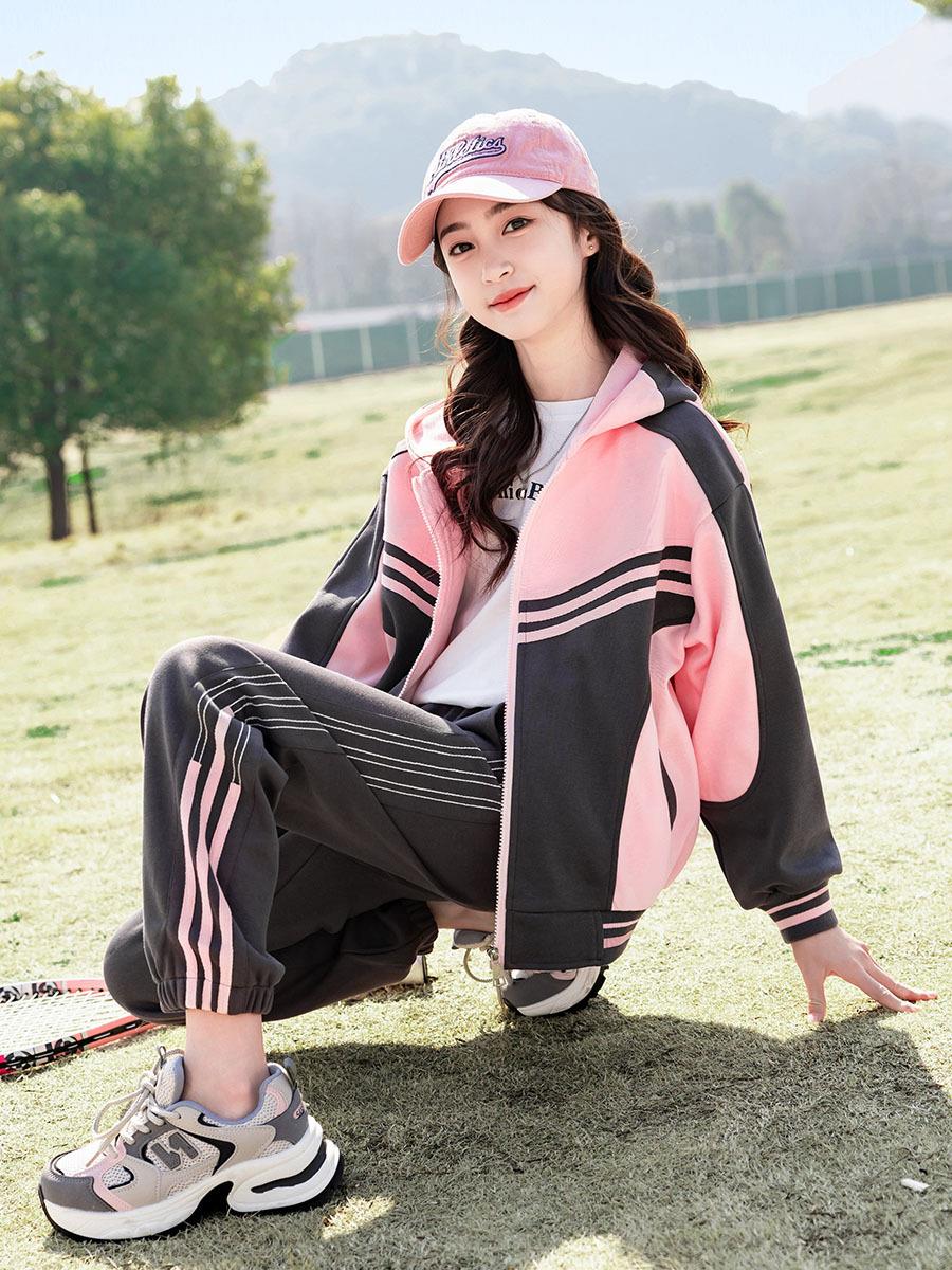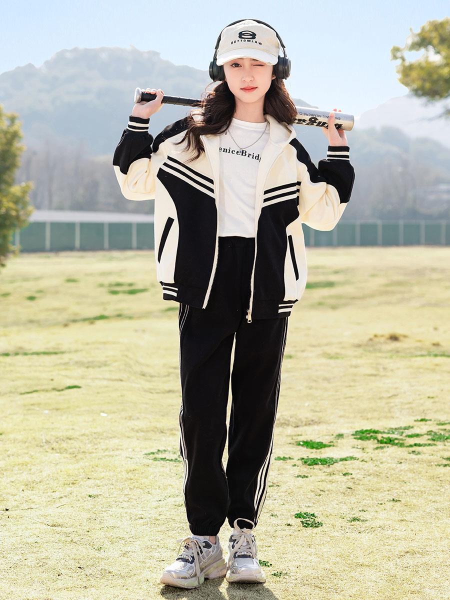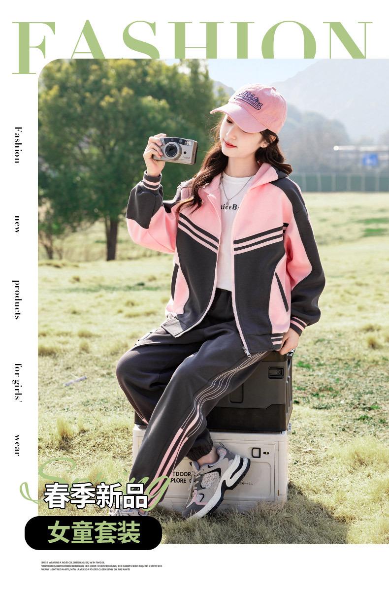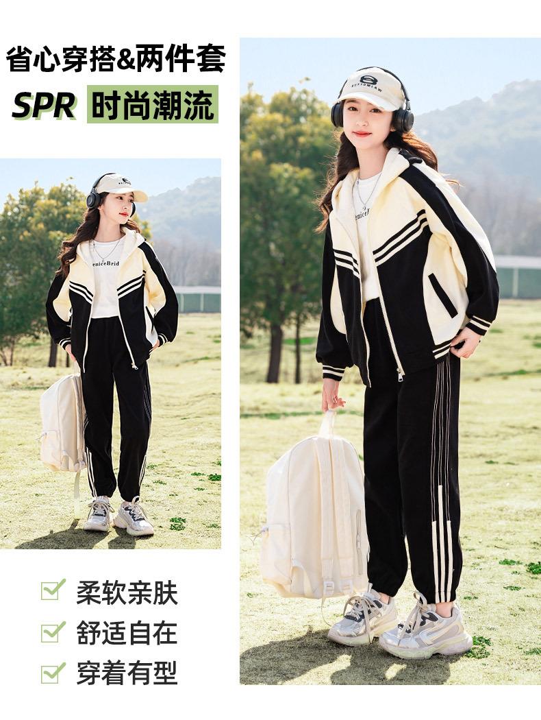 女童春装运动套装洋气中大童2024新款儿童装春秋款休闲针织两件套