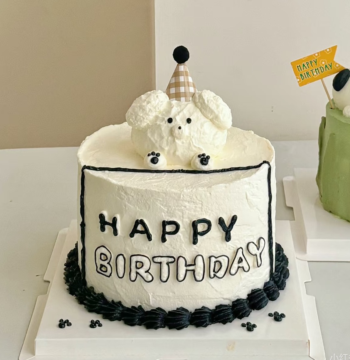【臻品系列】---【黑色线条小狗】送男友、兄弟、男孩生日蛋糕--帽子颜色随机