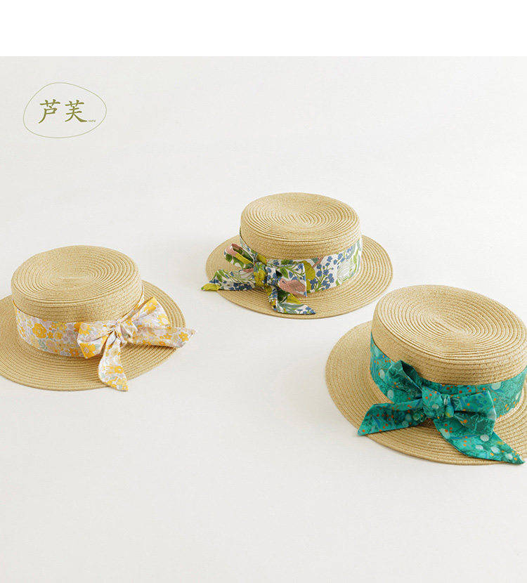 【马克珍妮芦芙】2024年夏款 女童碎花蝴蝶结编织遮阳草帽240817
