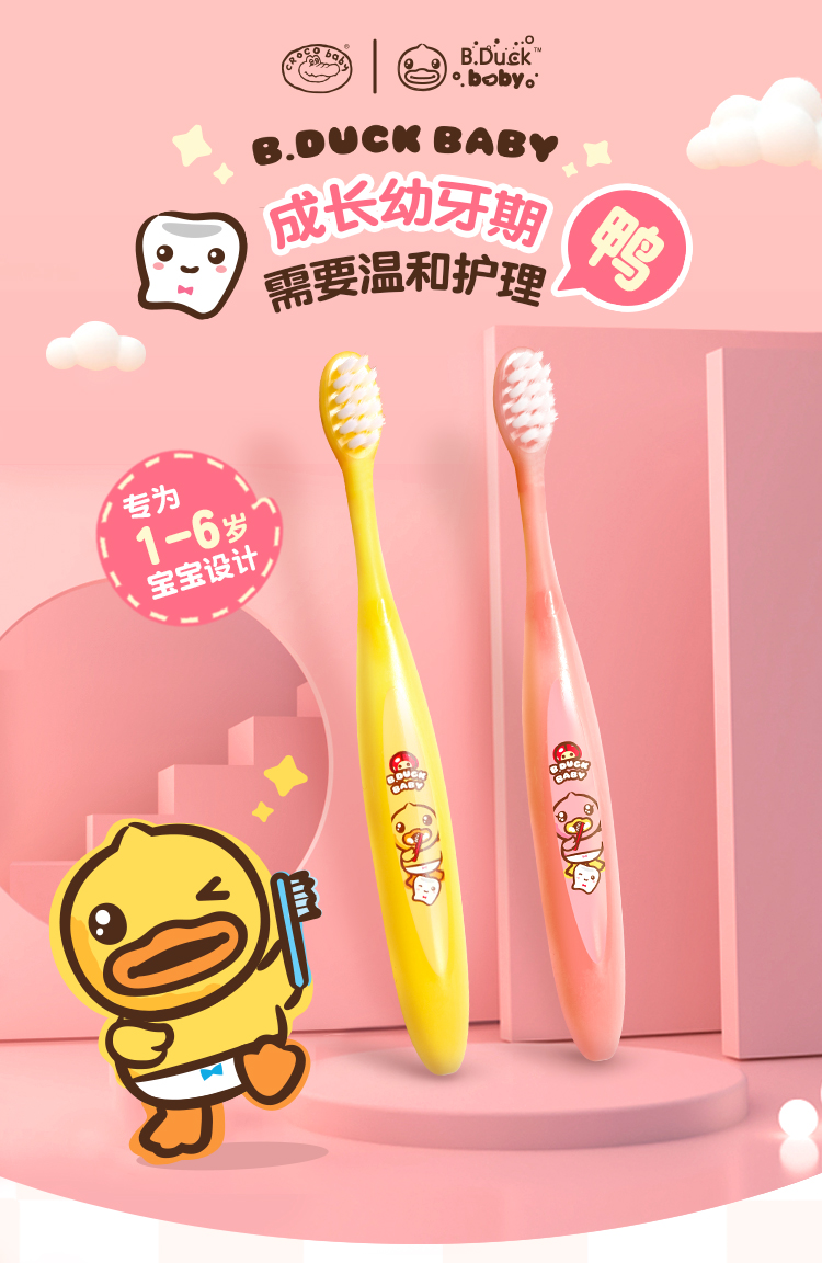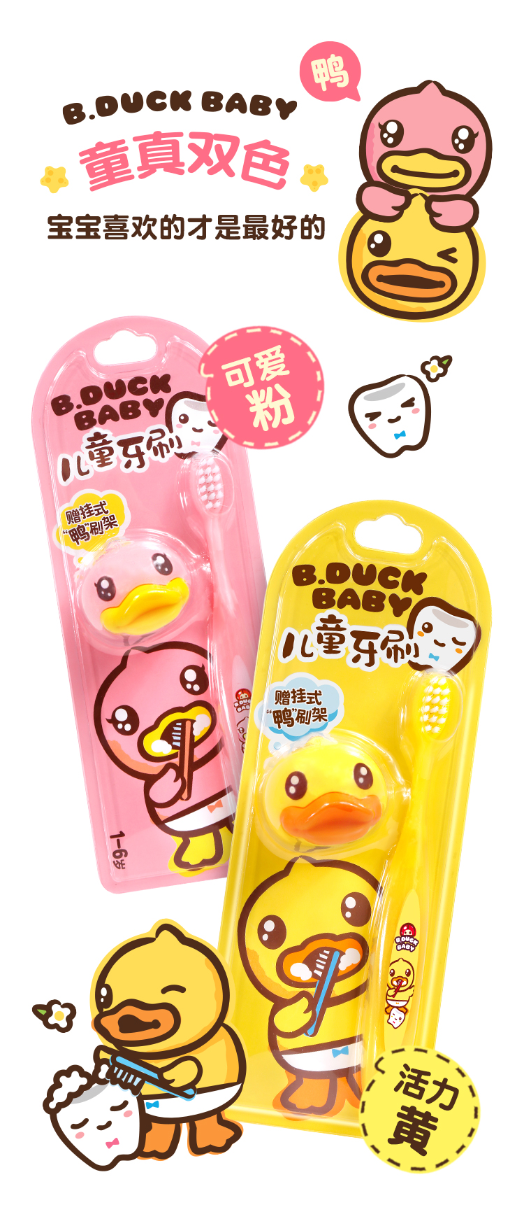 B.Duck Baby小黄鸭1-6岁儿童牙刷送牙刷架