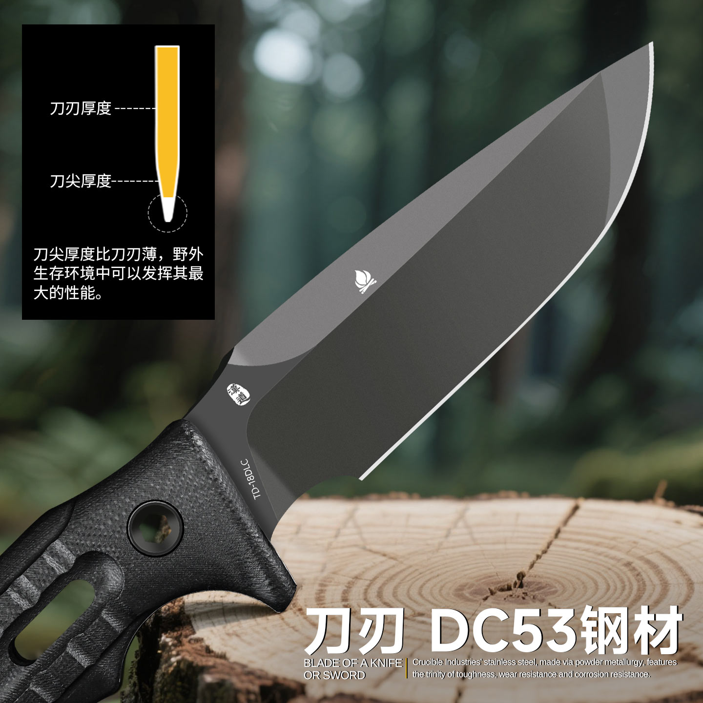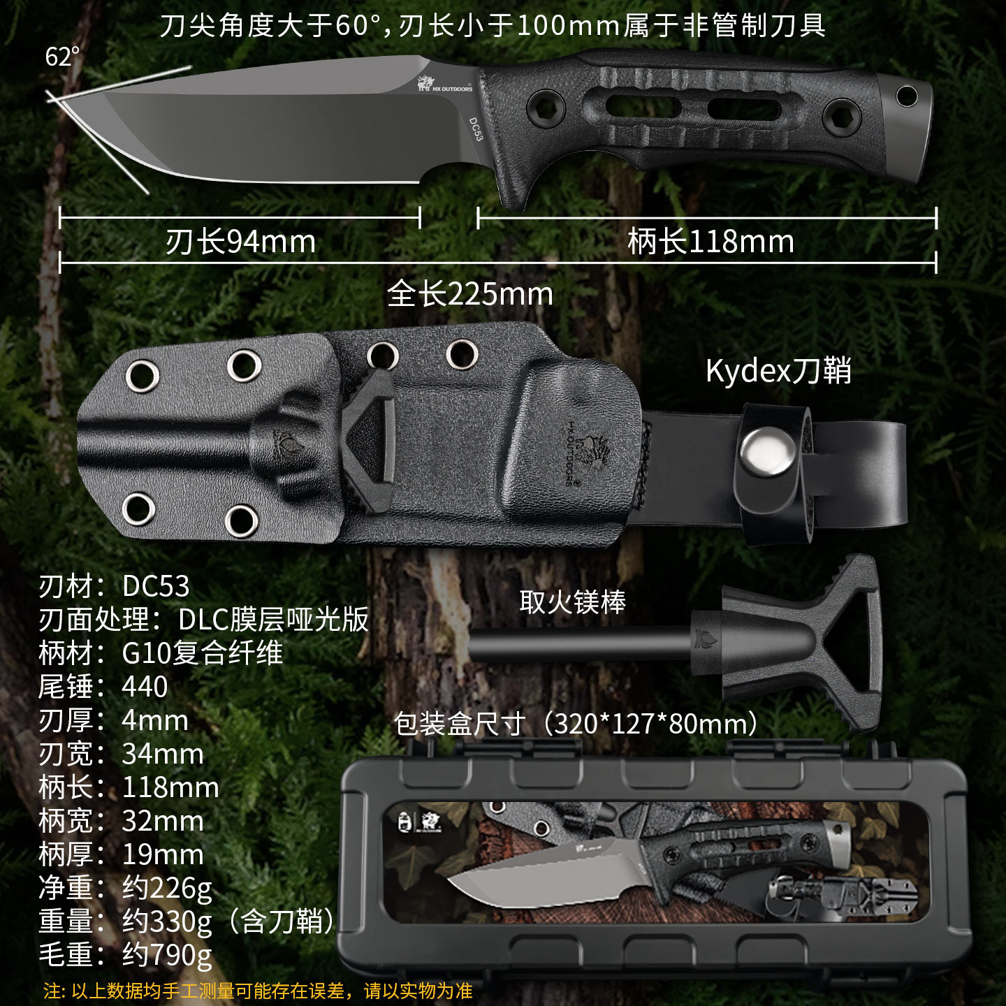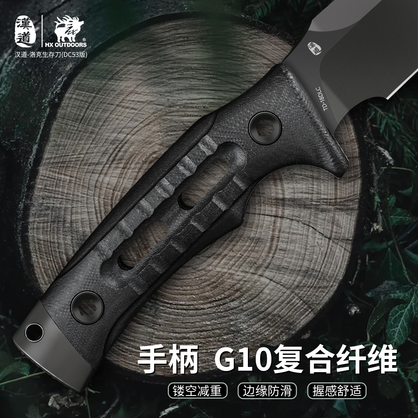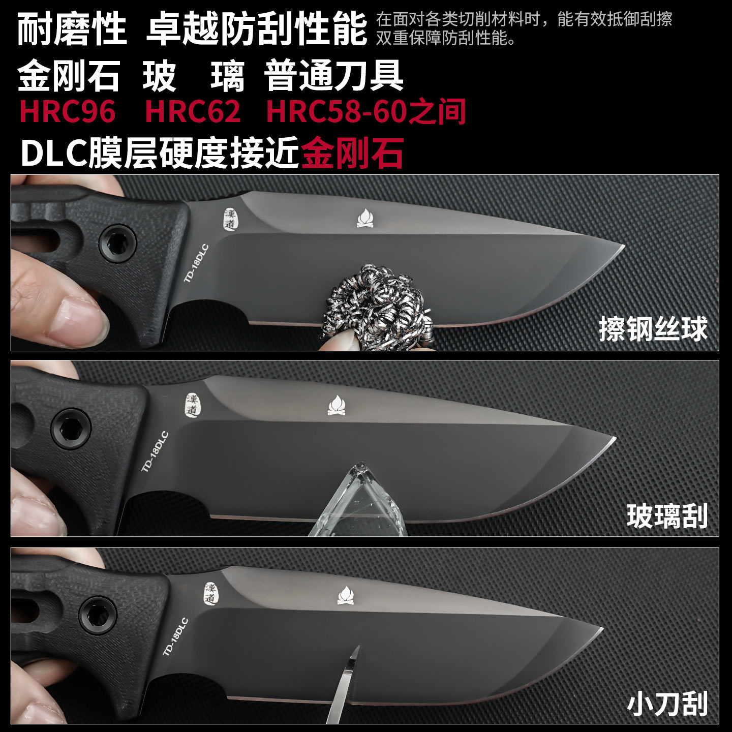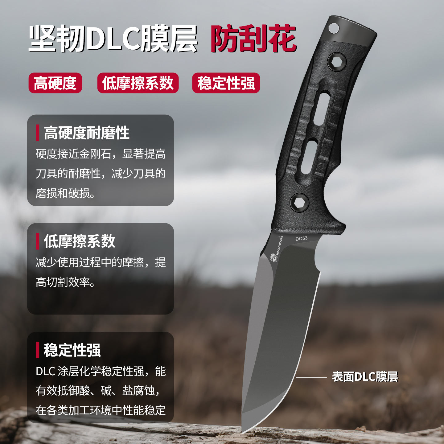 汉道洛克DLC哑光版涂层户外水果刀野外求生生存刀露营刀具