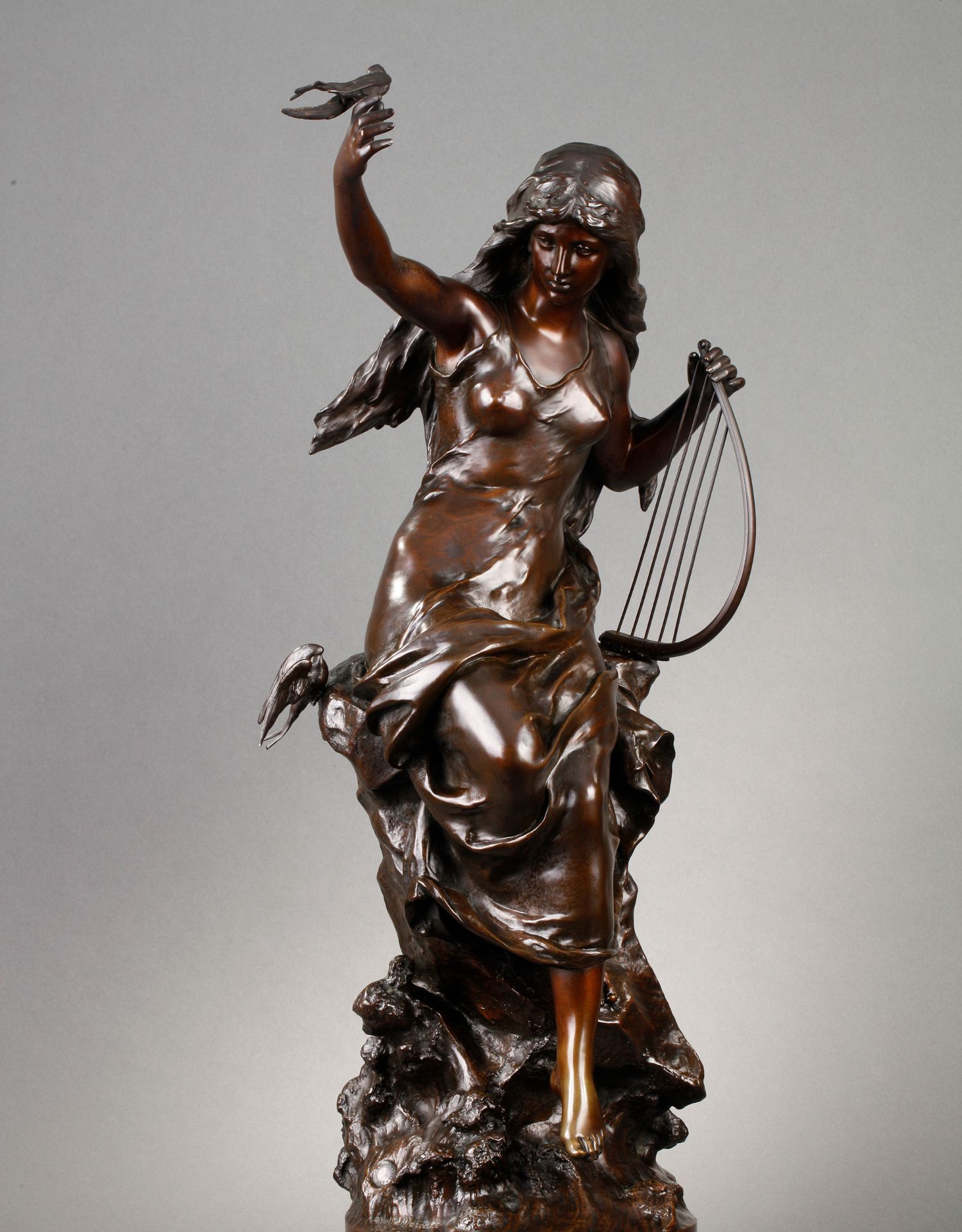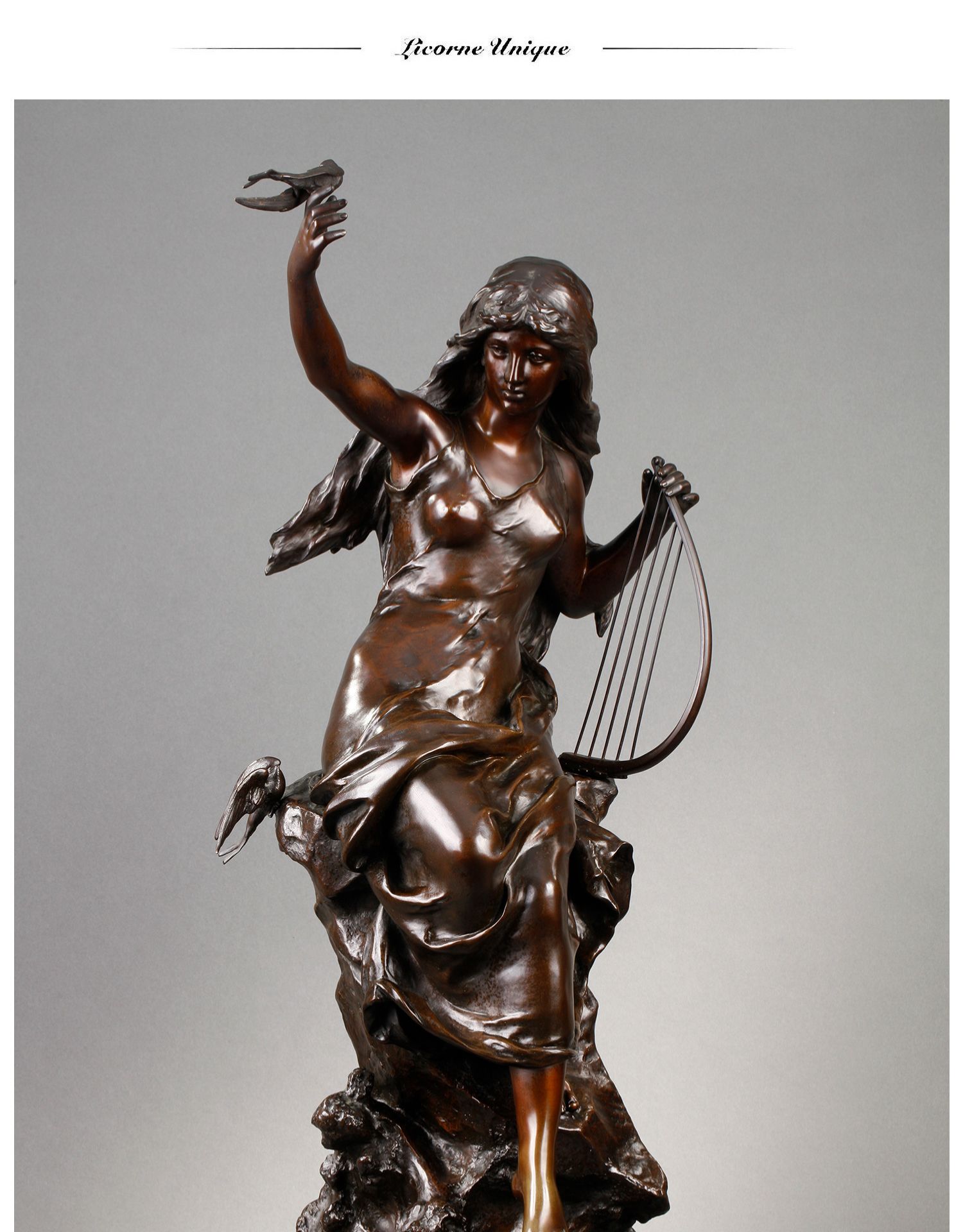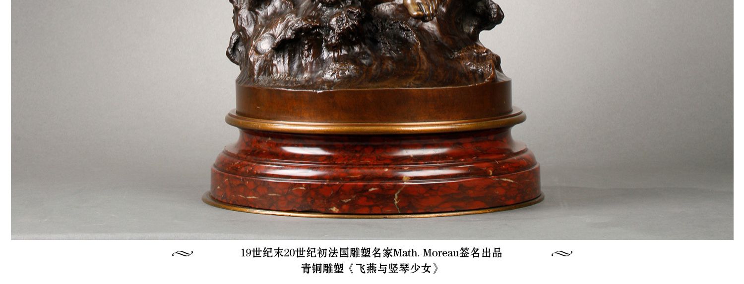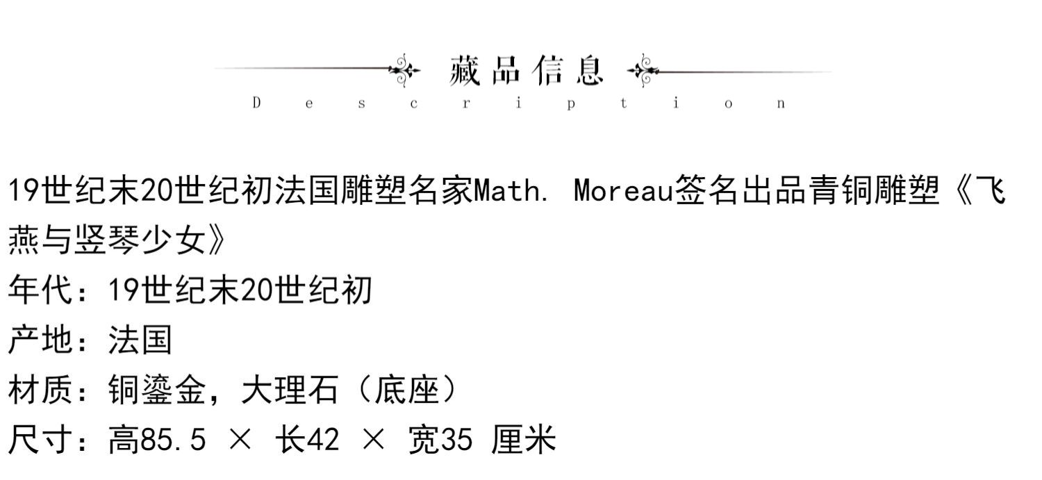 独角鹿西洋古董法国雕塑名家Math. Moreau青铜雕塑飞燕与竖琴少女