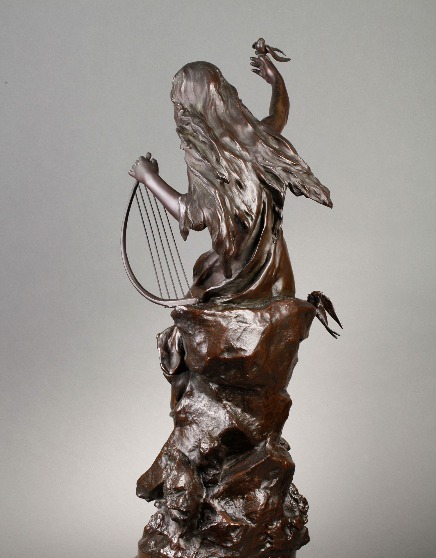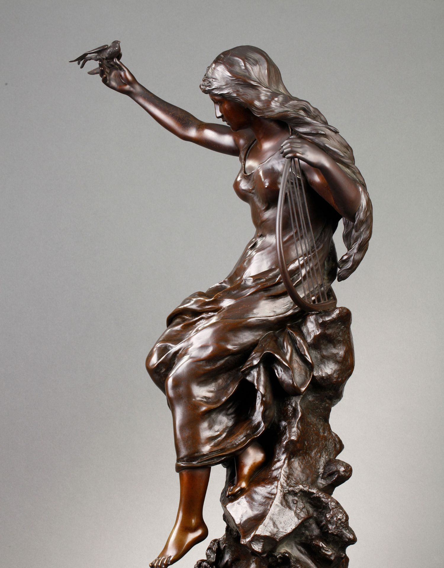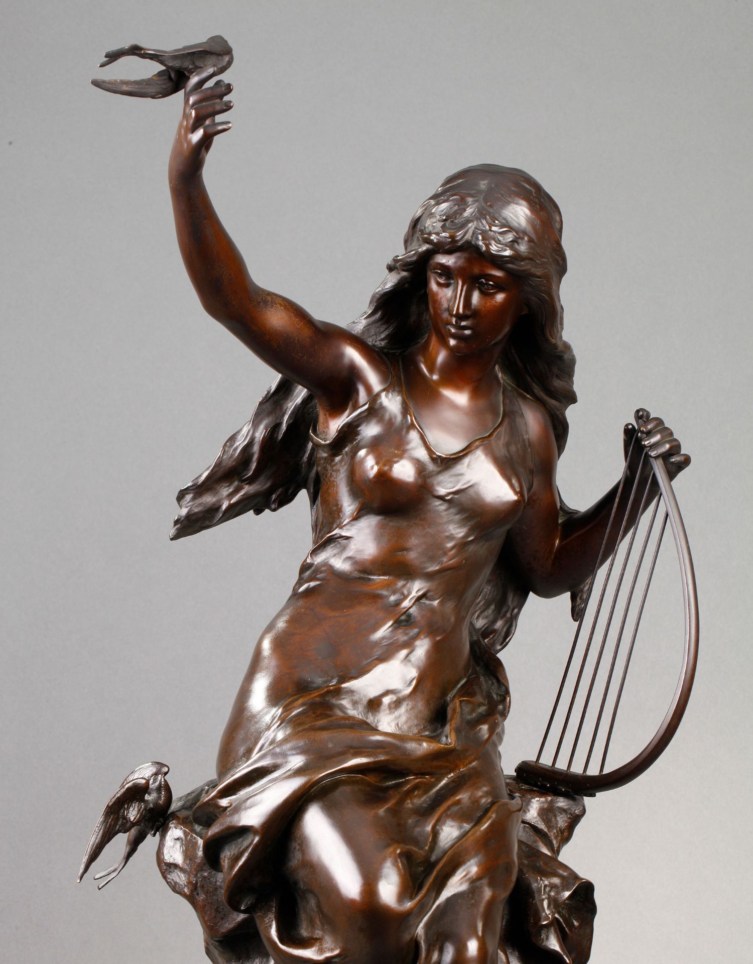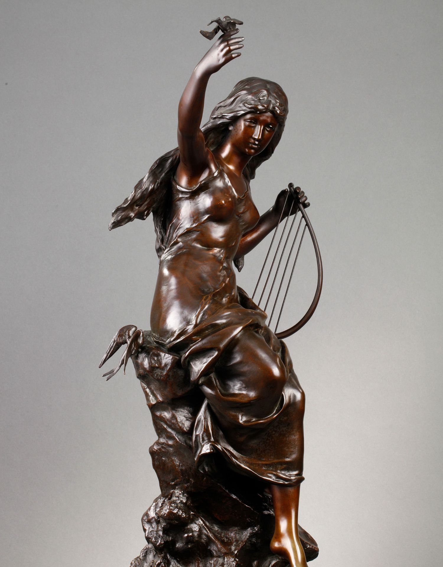独角鹿西洋古董法国雕塑名家Math. Moreau青铜雕塑飞燕与竖琴少女
