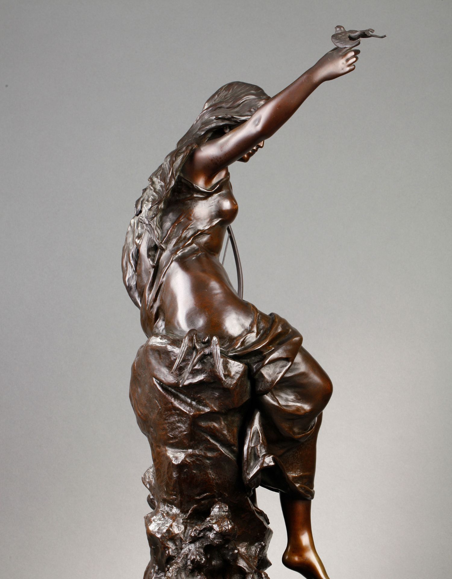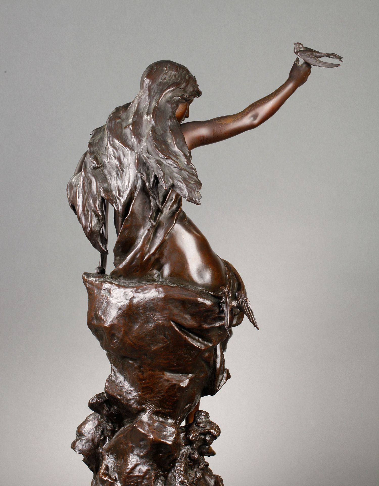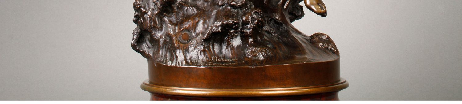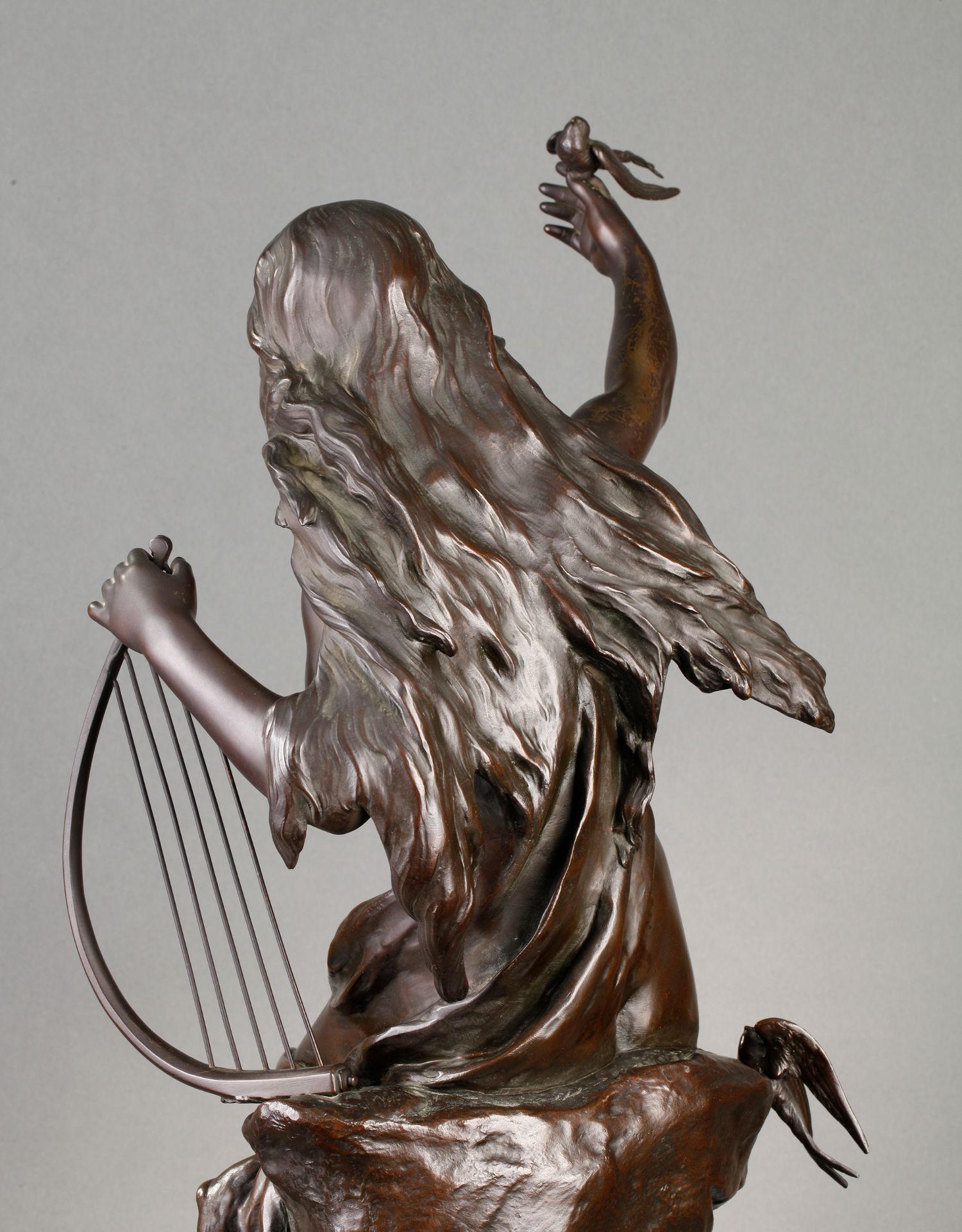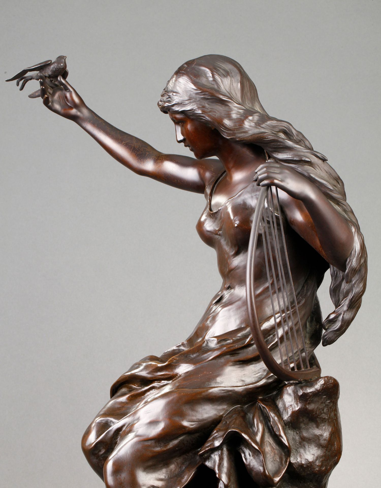 独角鹿西洋古董法国雕塑名家Math. Moreau青铜雕塑飞燕与竖琴少女