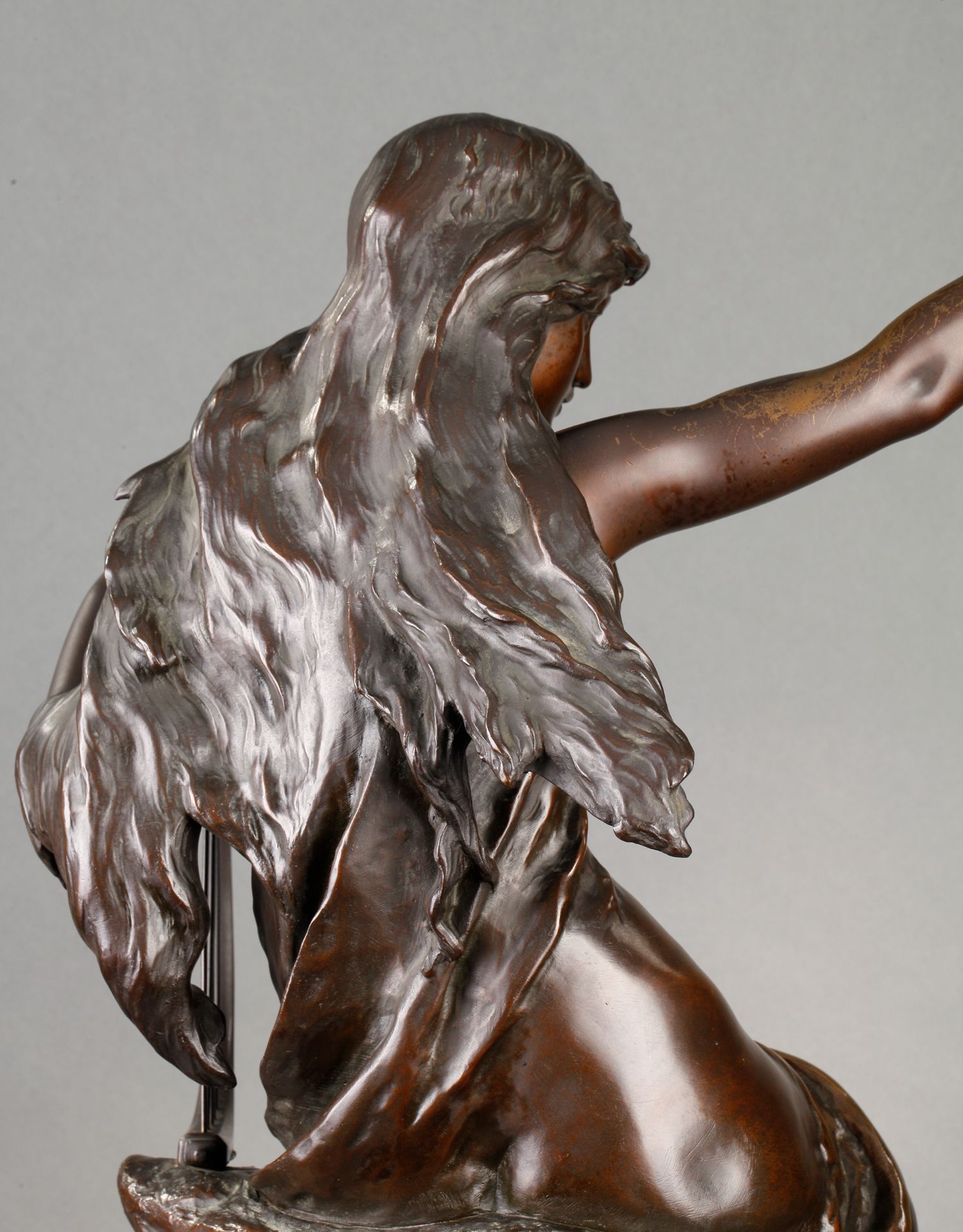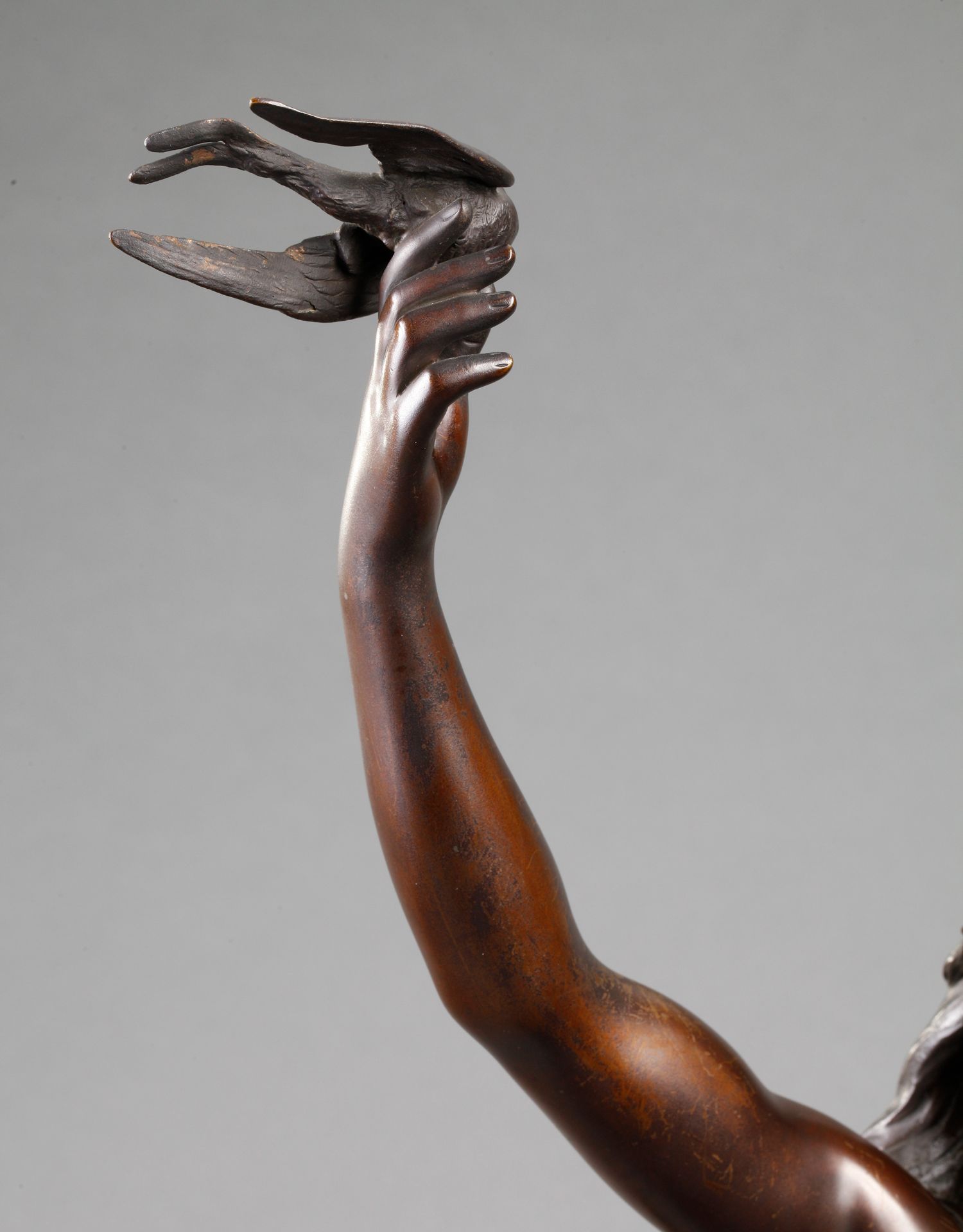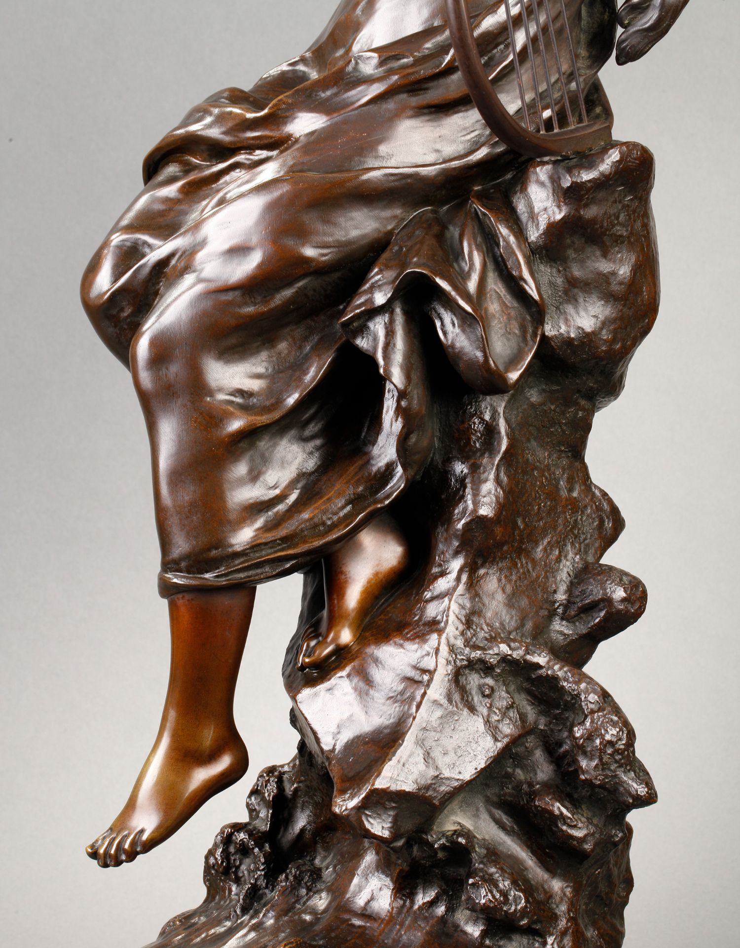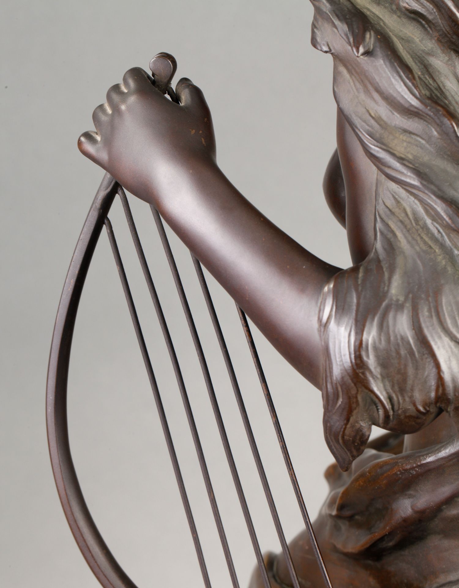 独角鹿西洋古董法国雕塑名家Math. Moreau青铜雕塑飞燕与竖琴少女