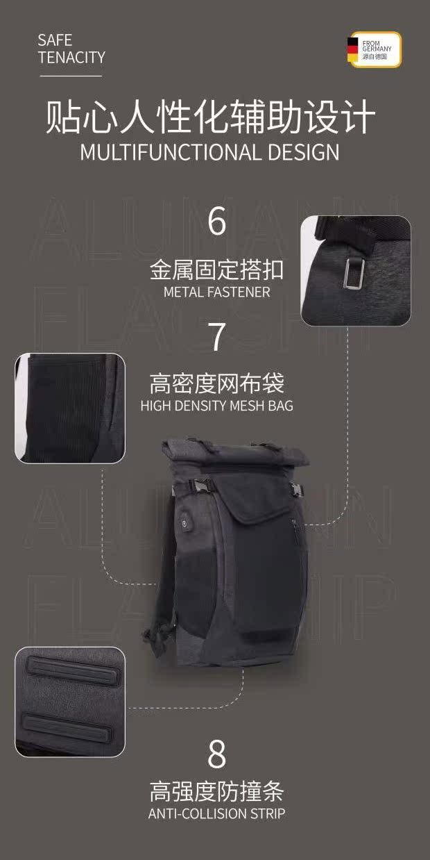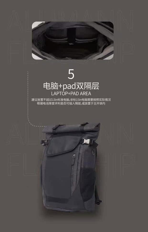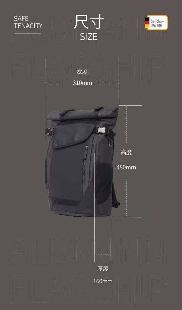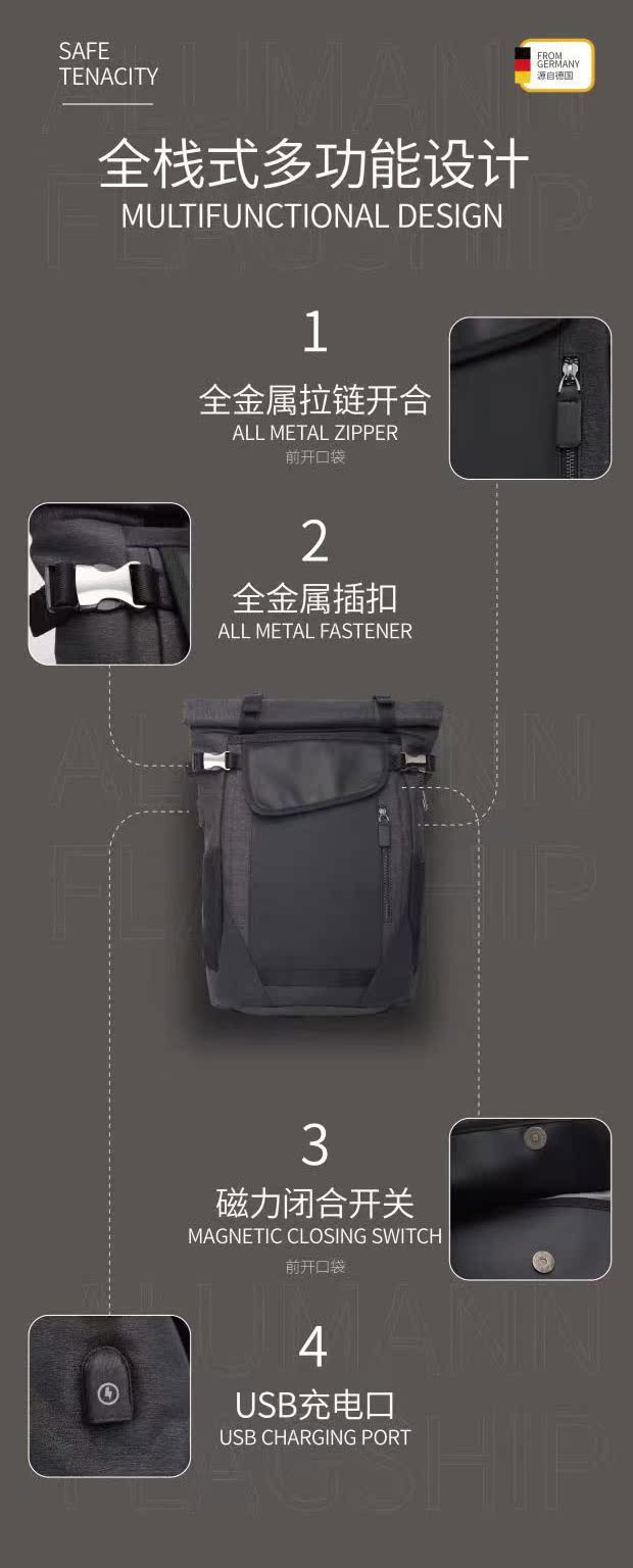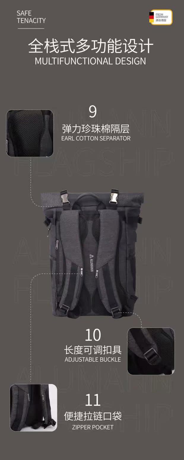 旅漫.Alumann 新款AeoBag系列 多功能旅行包大容量旅行袋黑色背包AL-2005
