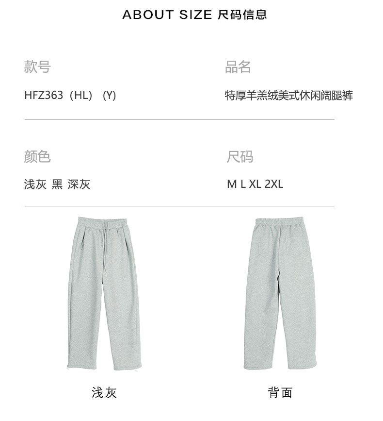 新款MDAY女人特厚羊羔绒美式休闲阔腿裤HFZ363(HL)155260325