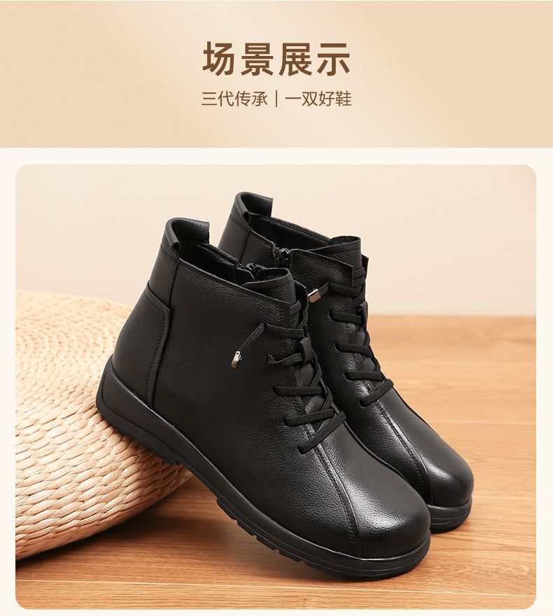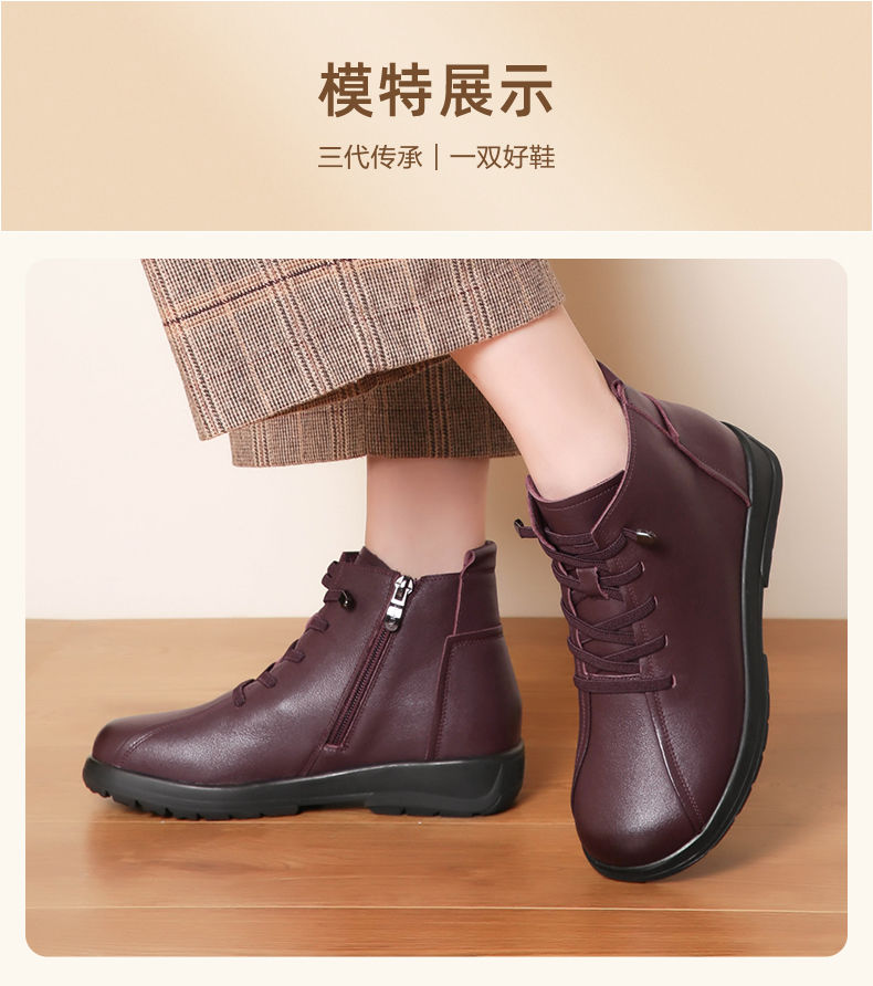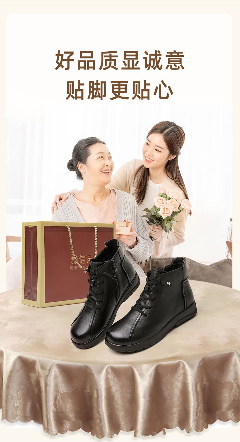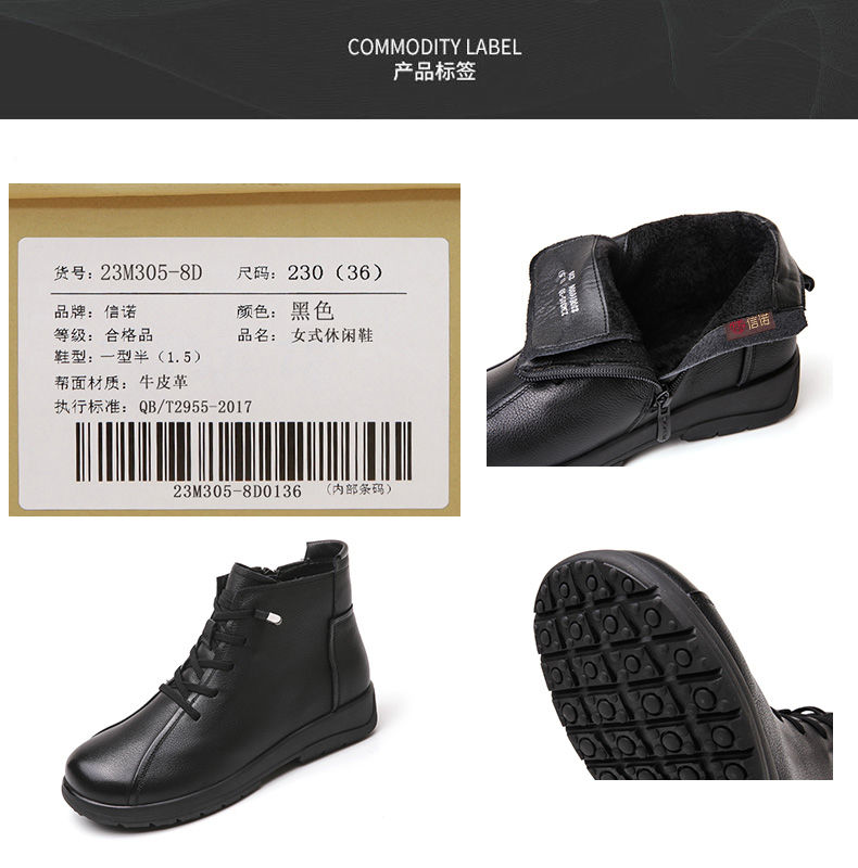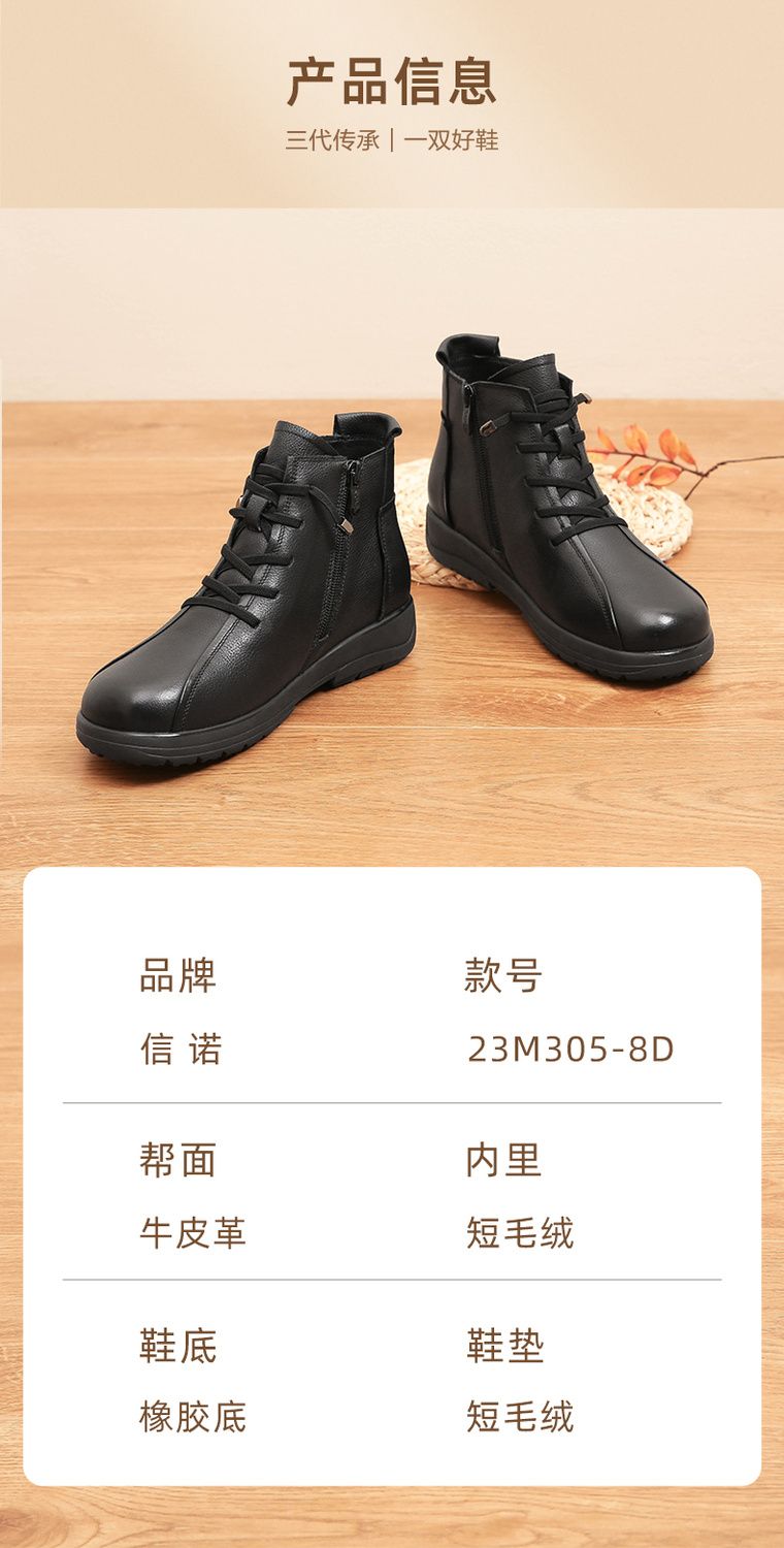 信诺真皮软底妈妈棉鞋2023新款冬季防滑加绒中老年皮鞋休闲女短靴23M305-8D