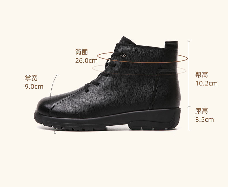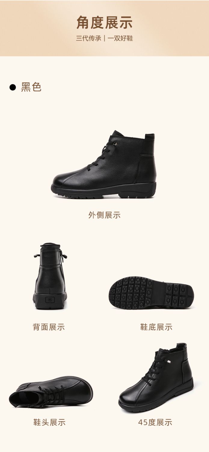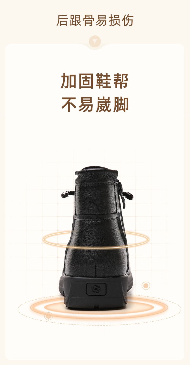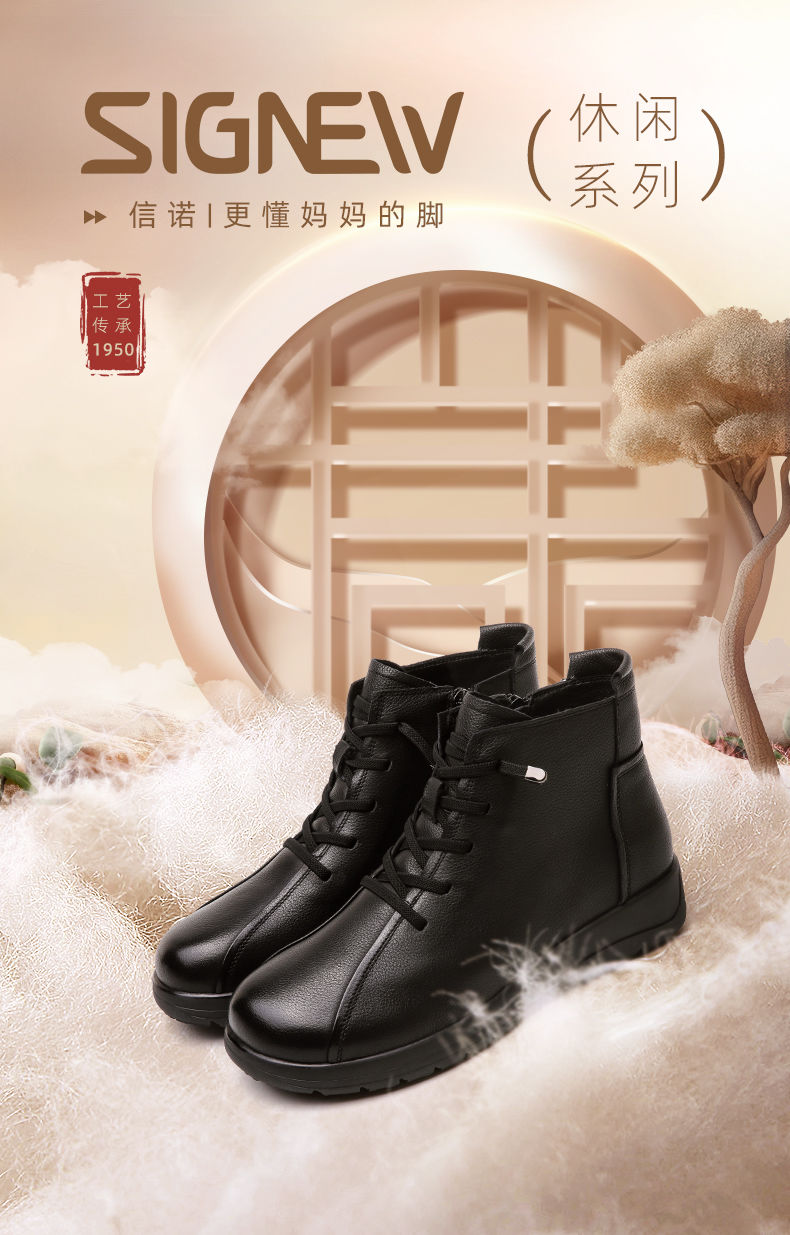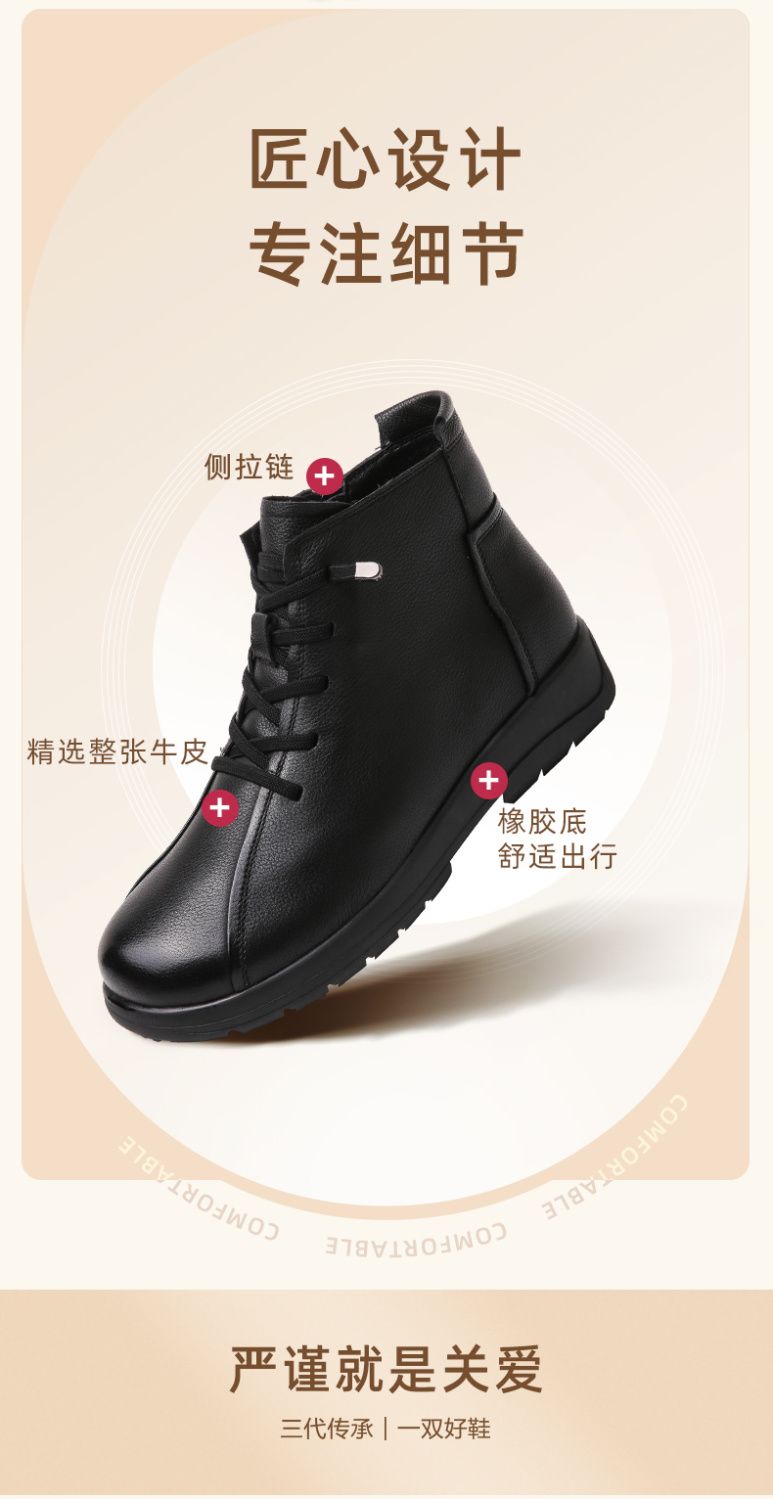 信诺真皮软底妈妈棉鞋2023新款冬季防滑加绒中老年皮鞋休闲女短靴23M305-8D