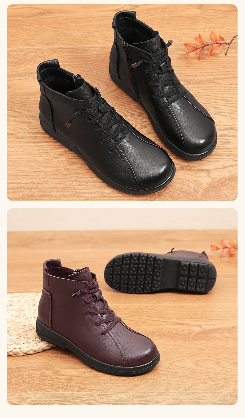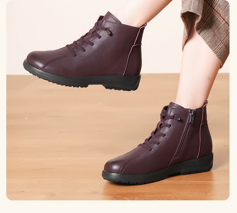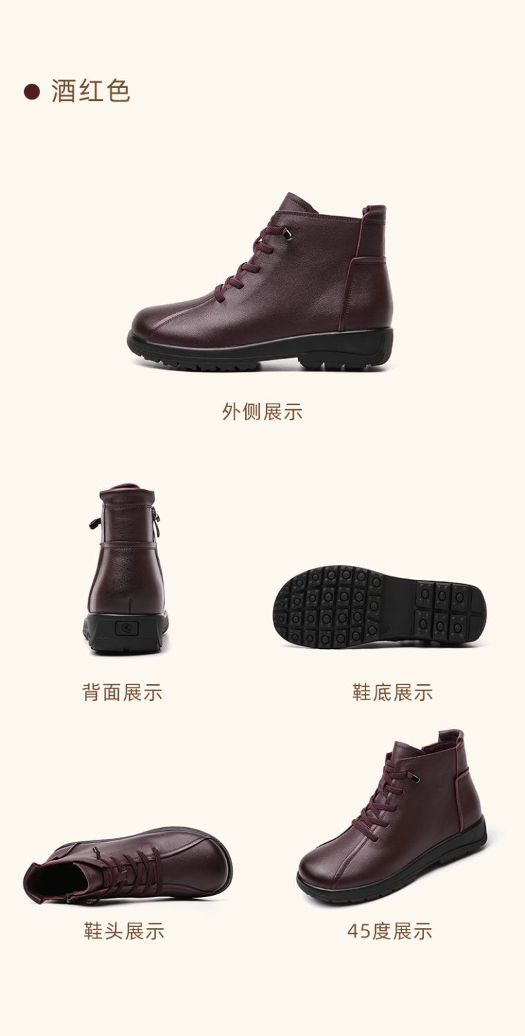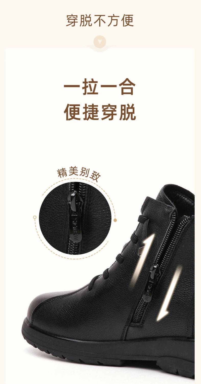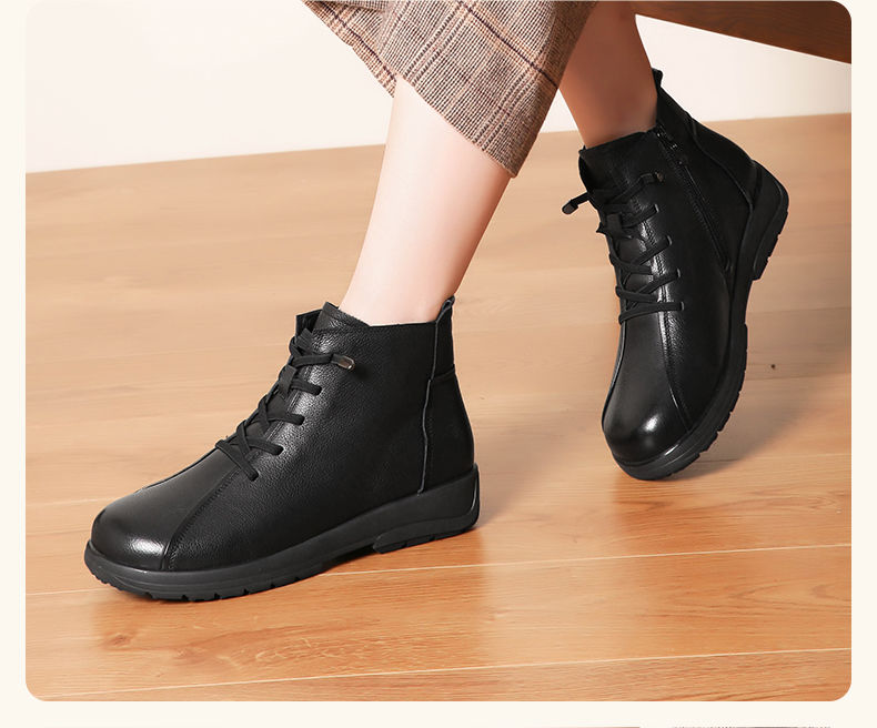 信诺真皮软底妈妈棉鞋2023新款冬季防滑加绒中老年皮鞋休闲女短靴23M305-8D