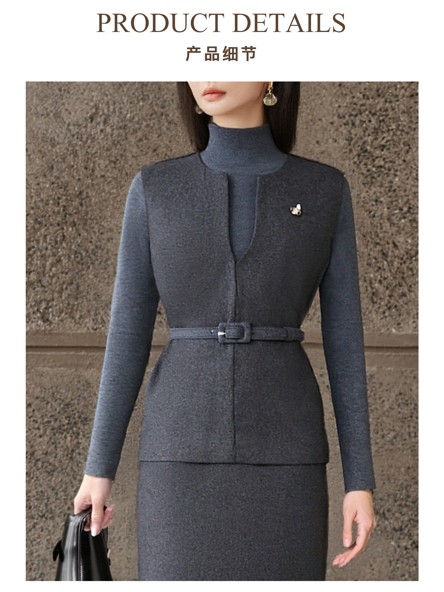 知性优雅~暖乎乎羊毛呢马甲 马甲附带本布腰带 收腰显瘦2025米思阳冬季新品5506
