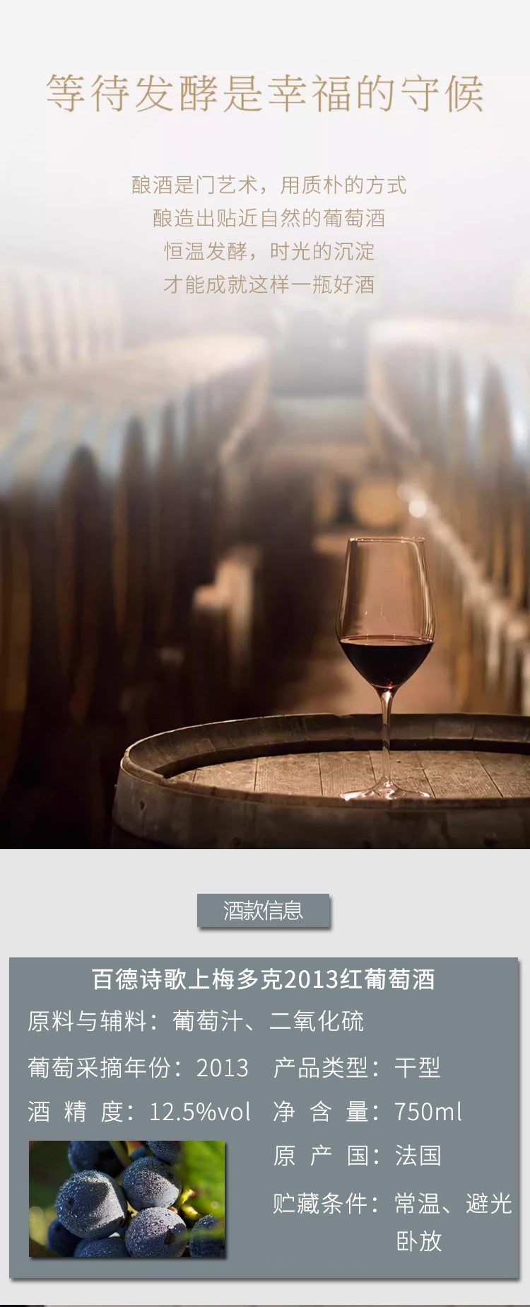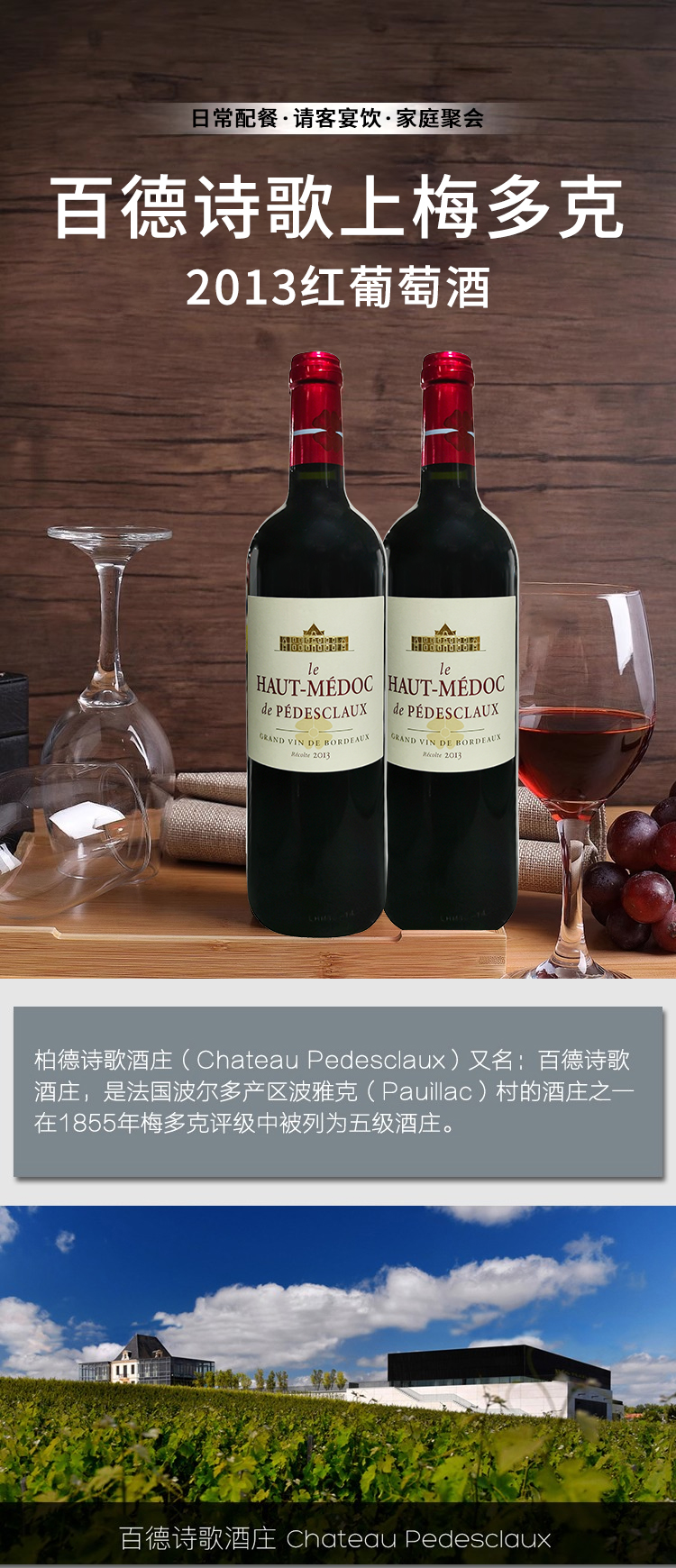 【1855列级名庄⁵】 法国进口百德诗歌上梅多克2013红葡萄酒750mi