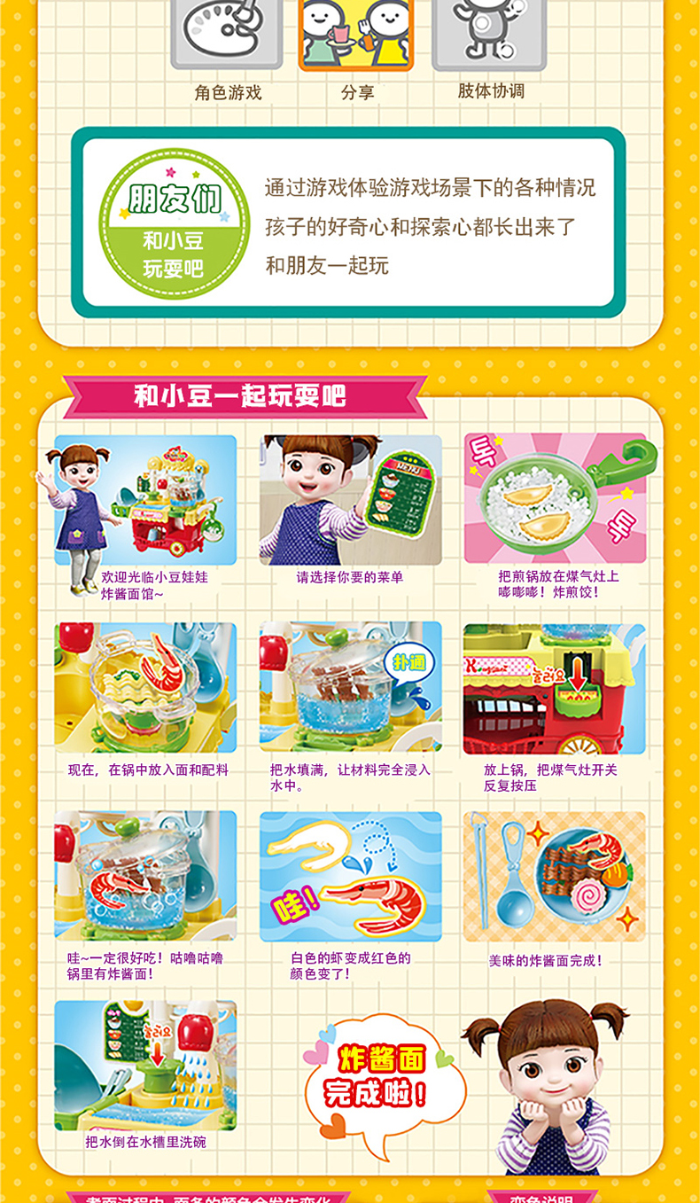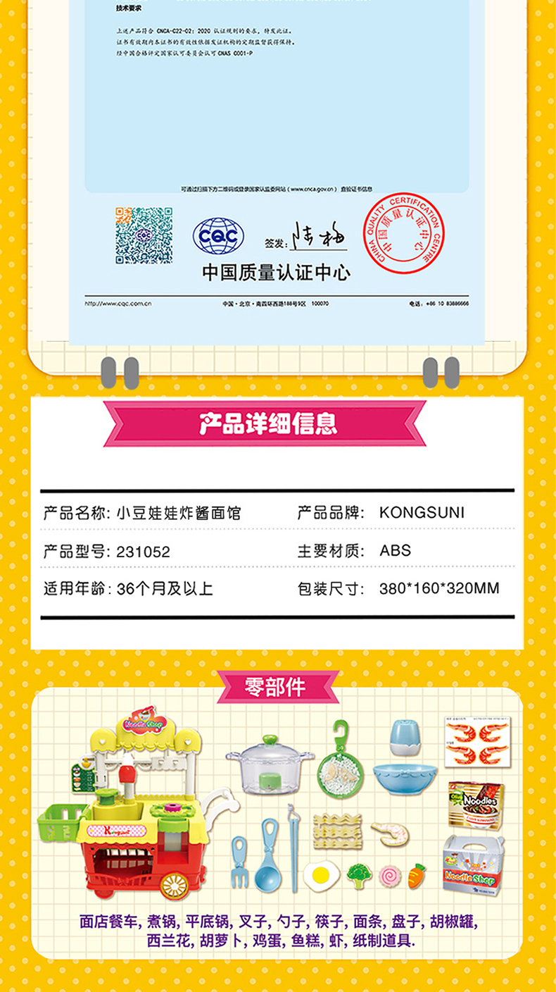 韩国Kongsuni小豆娃娃炸酱面馆 儿童过家家仿真玩具-【玩具】