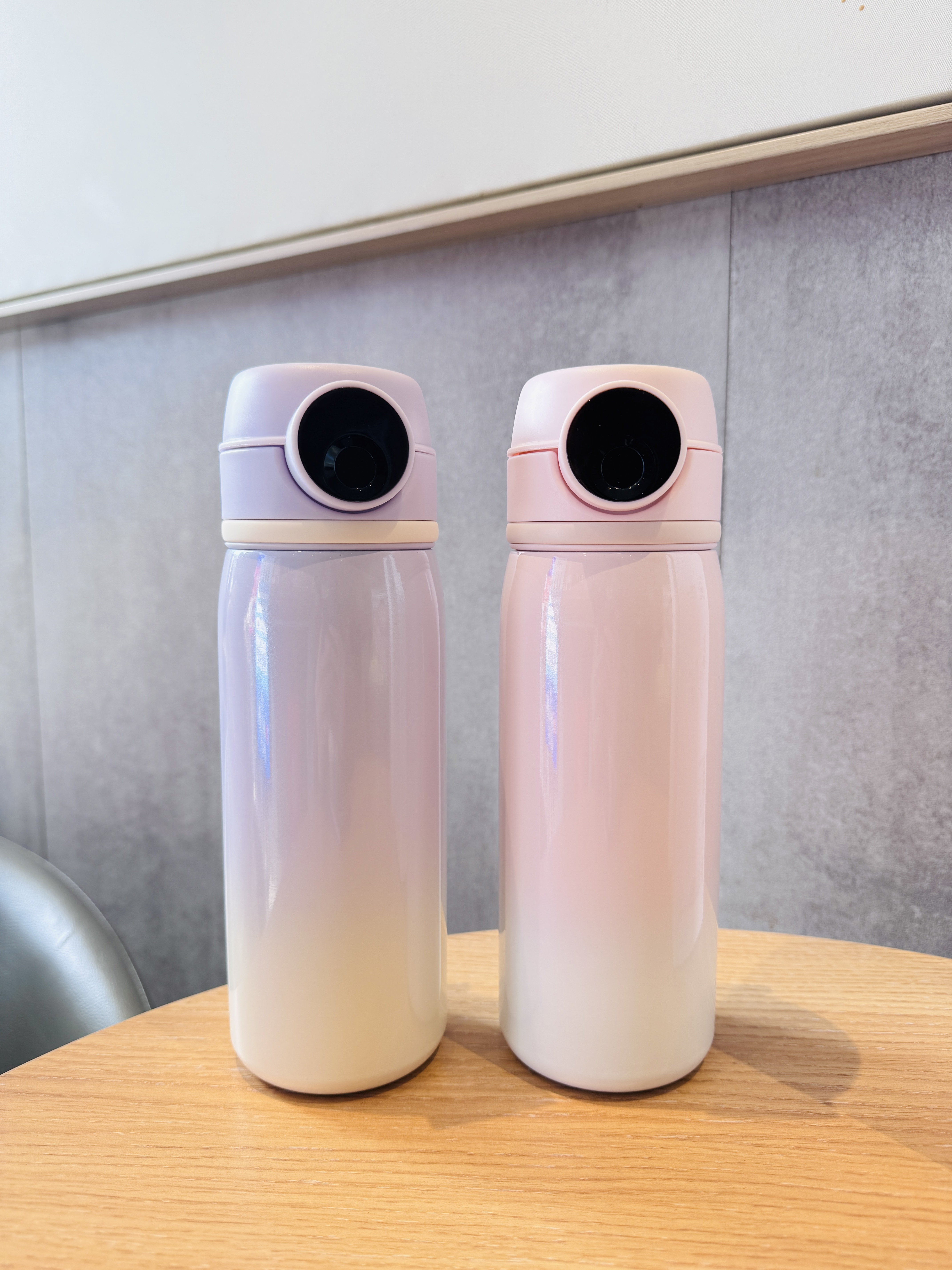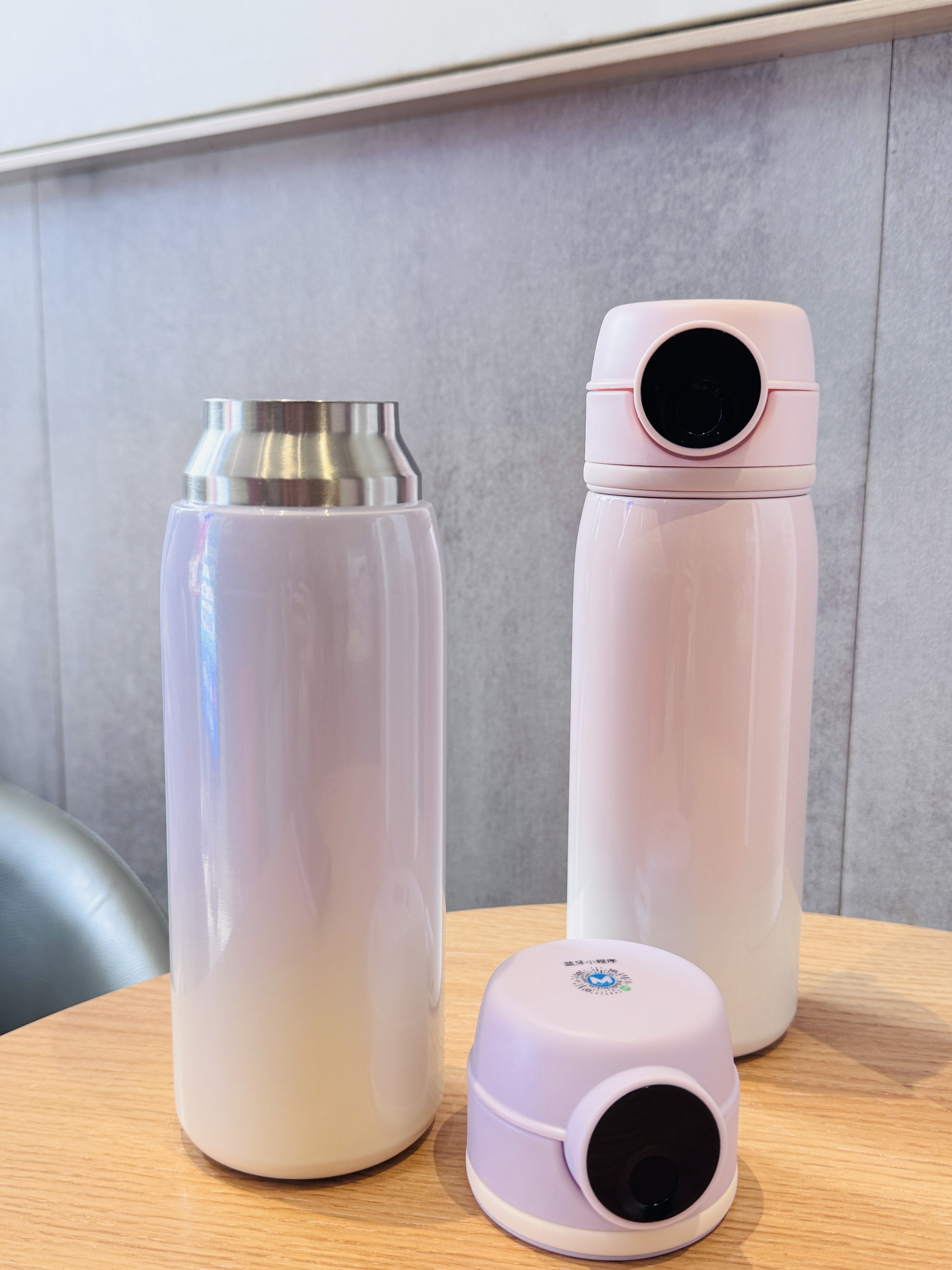 最直观的变化,就是颜值和外观彻底升级! 老款是直筒杯身,新款不再是单调的直筒! 1️⃣外观 磨砂纯色-亲肤钢琴烤漆渐变色,质感、手感都好了不止一个档次 纯圆-有弧度 整体更小巧、好看、实用,适合各种年龄段和场景 2️⃣杯身 不锈钢-不锈钢+镀铜 保温效果95°水,20°环境下6个小时能保持在74度左右,比普通杯身高6-8度,一整天有热水喝 3️⃣升级蓝牙功能 支持小程序连接蓝牙进行指纹管理、一键删除指纹、一键解锁杯盖、临时授权解锁、电量可视等! 4️⃣增加扣环 可以绑水杯手提带,更实用方便 5️⃣开盖力度调教 减小了弹盖力度,稳定性更好,更安全