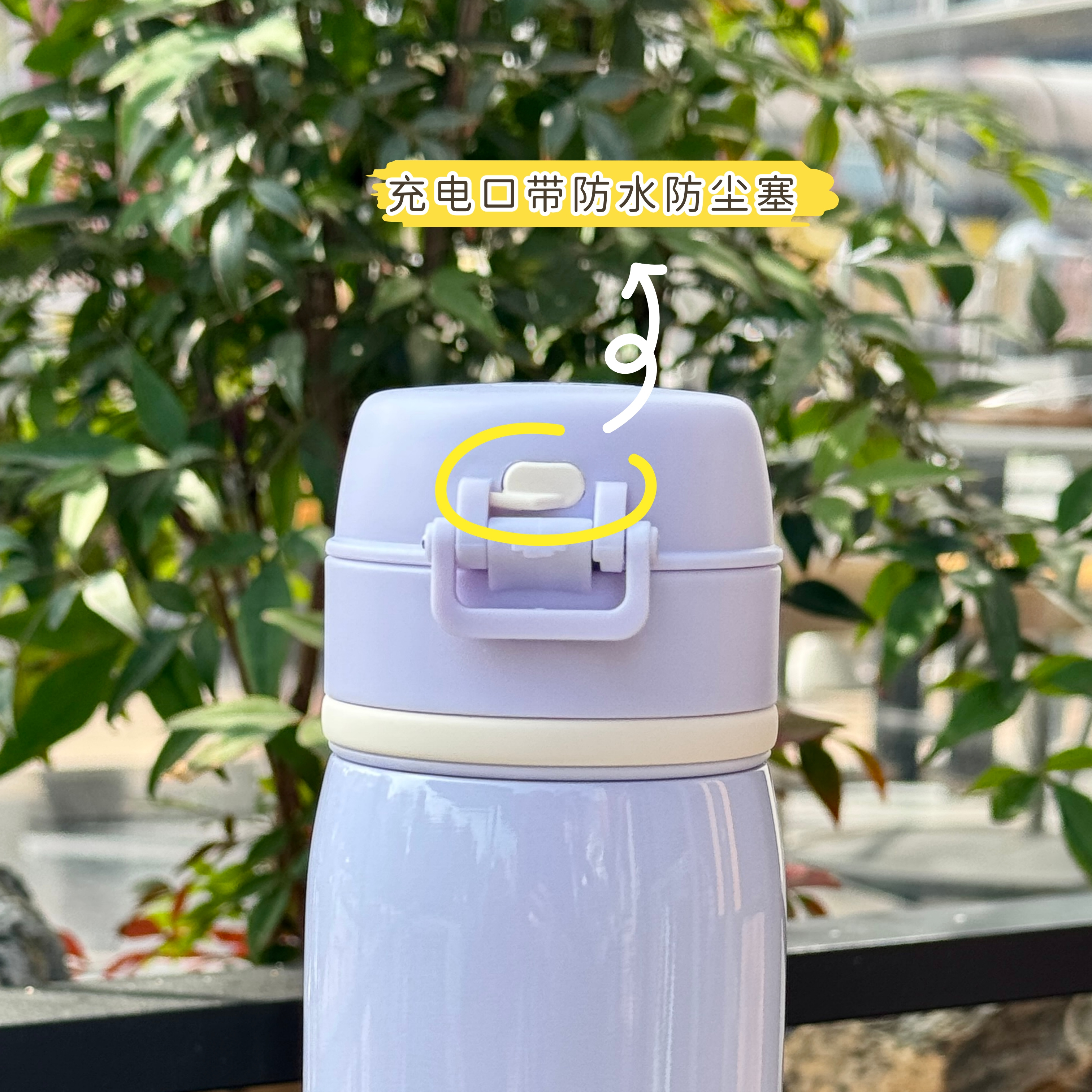 MIXWell用了通用type-c充电口,手机线就能充! 另一方面电源接口要做好保护! mixwell对充电口做了一个防尘防水塞 特别是一些极端环境,比如下雨天杯子被淋湿的情况下! 充电口没有防护的就极容易坏! 所以买指纹水杯!一定要看各种细节有没有设计考虑到位! MIXWell,出口日本!99%的人都不会注意的细节,它给你考虑到了!