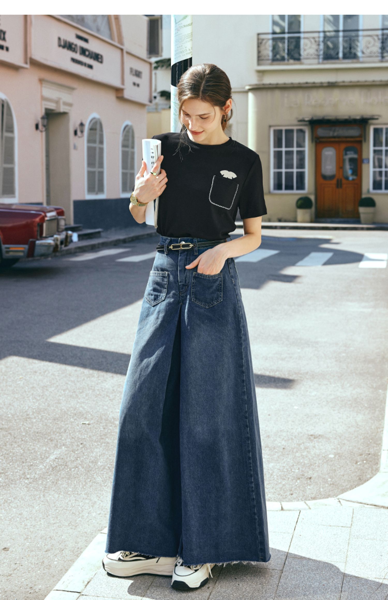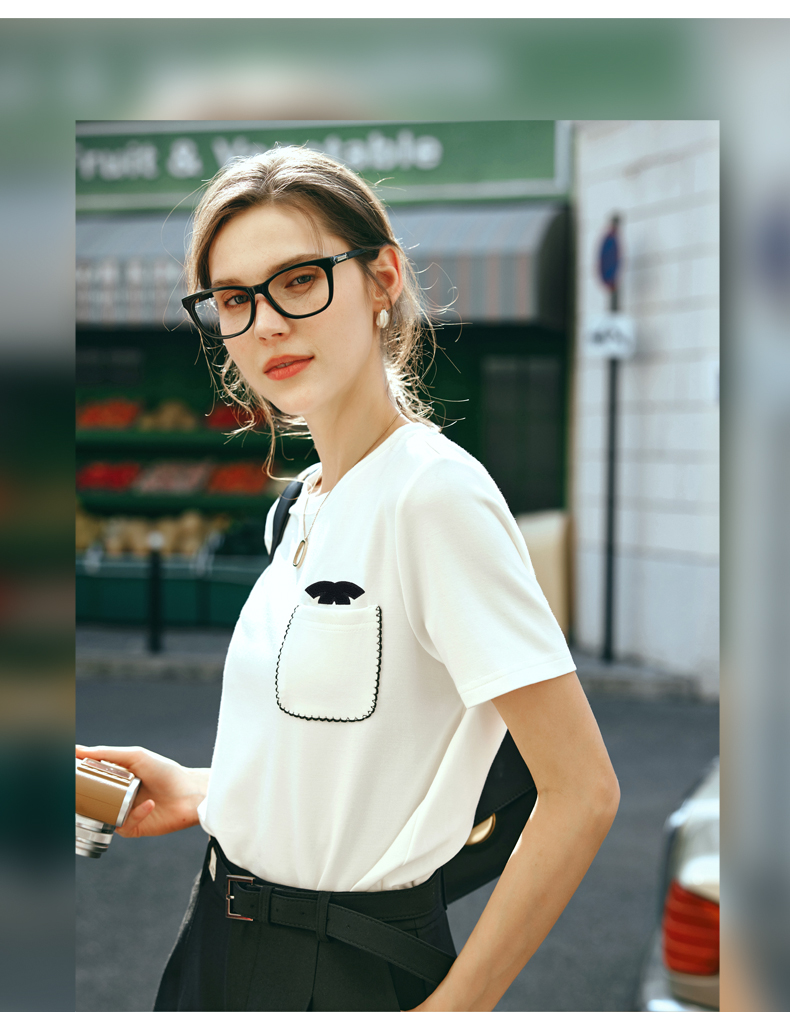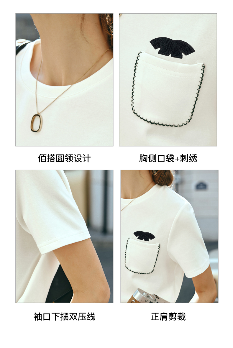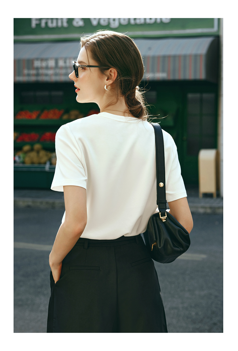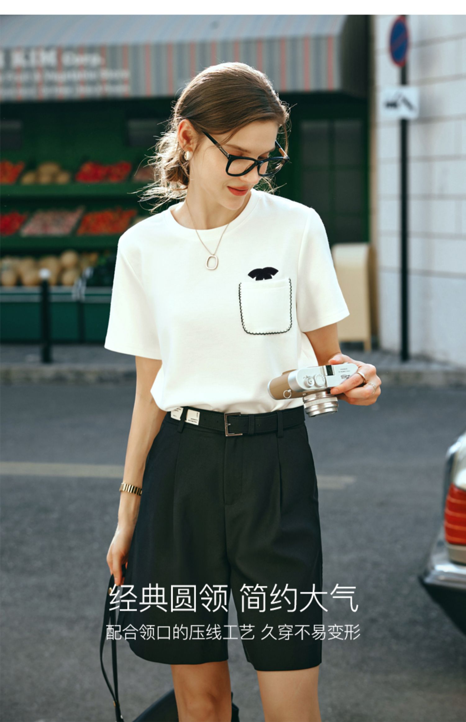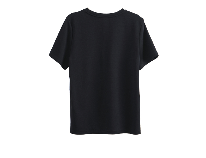 OLrain欧芮儿黑色T恤女早春2024年新款简约百搭刺绣短袖