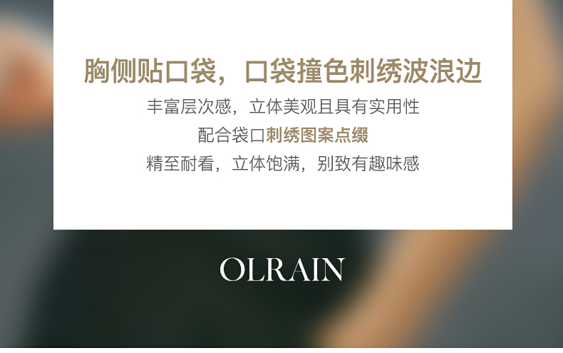 - “精致”是欧芮儿olrain品牌文化的核心,欧芮儿认为,精致的女人,不但要外在动人,更要内在迷人,内外兼修,有魅力、有气质、有内涵,自信而不自傲,优雅而不矫揉,自有万种风情而不轻浮,更不故作矜持。