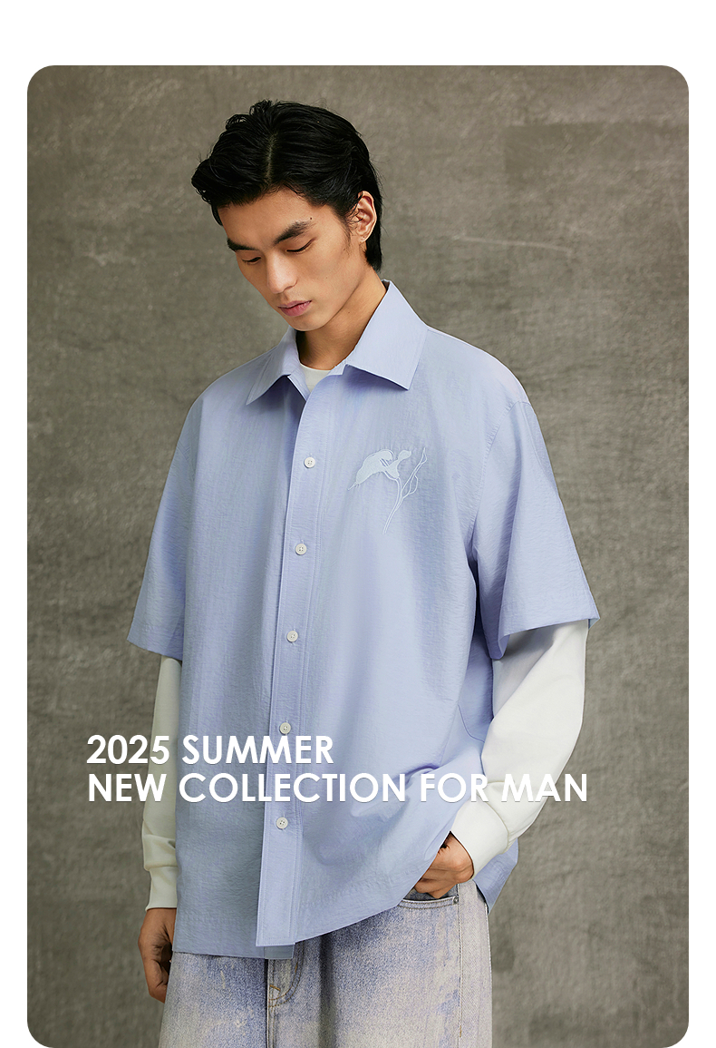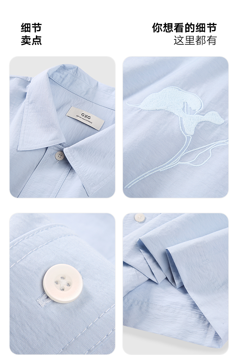 GXG男装 浅蓝色宽松时尚短袖衬衫25年夏热卖G25X232006
