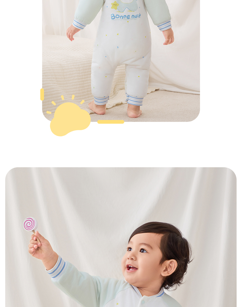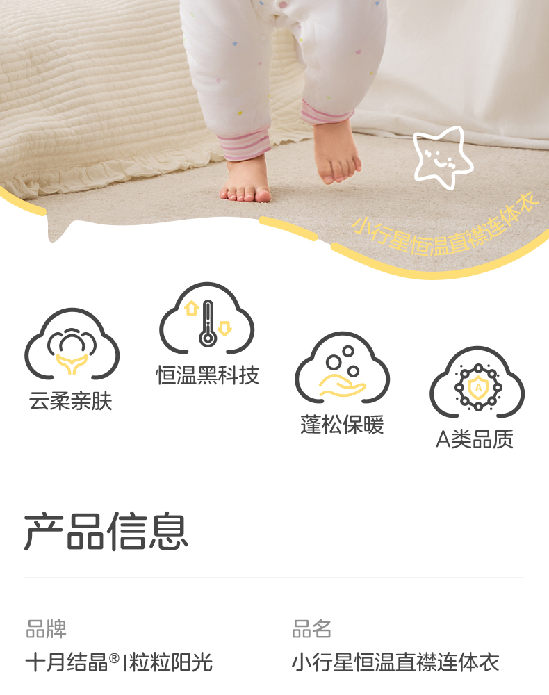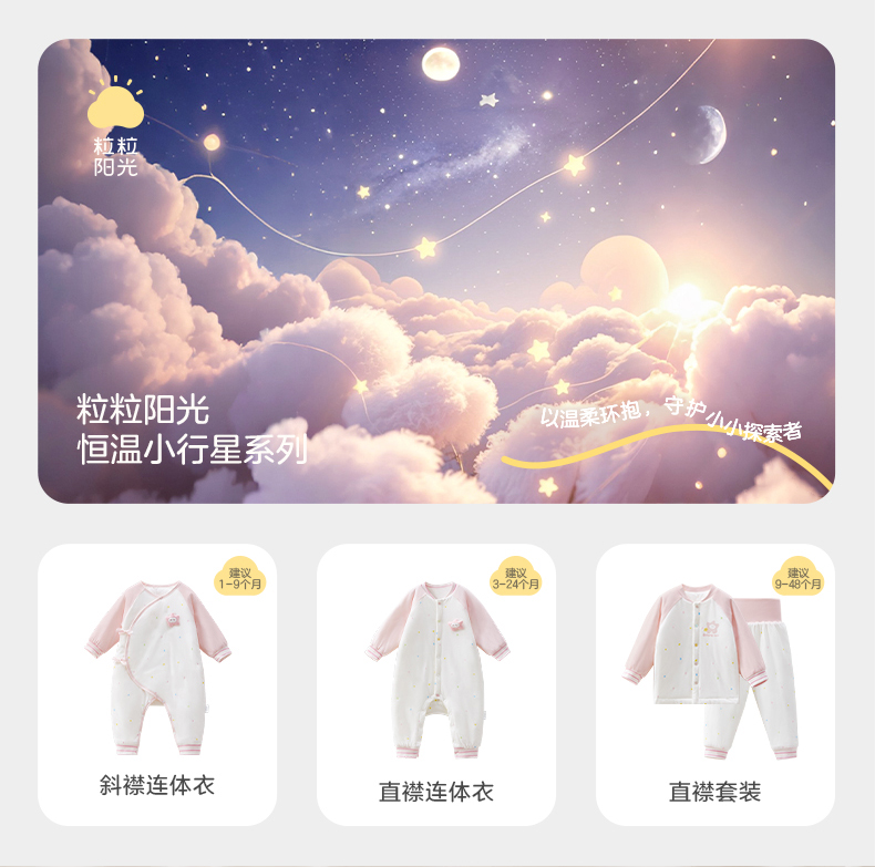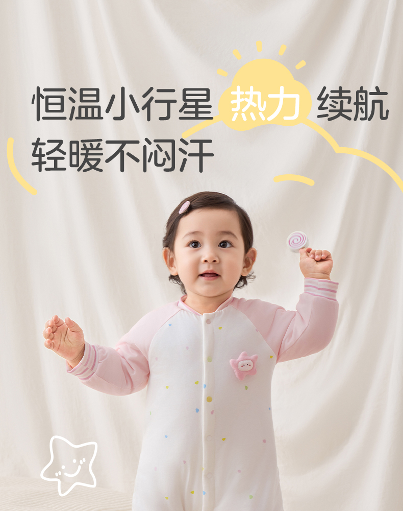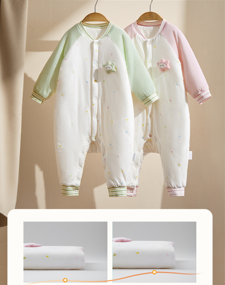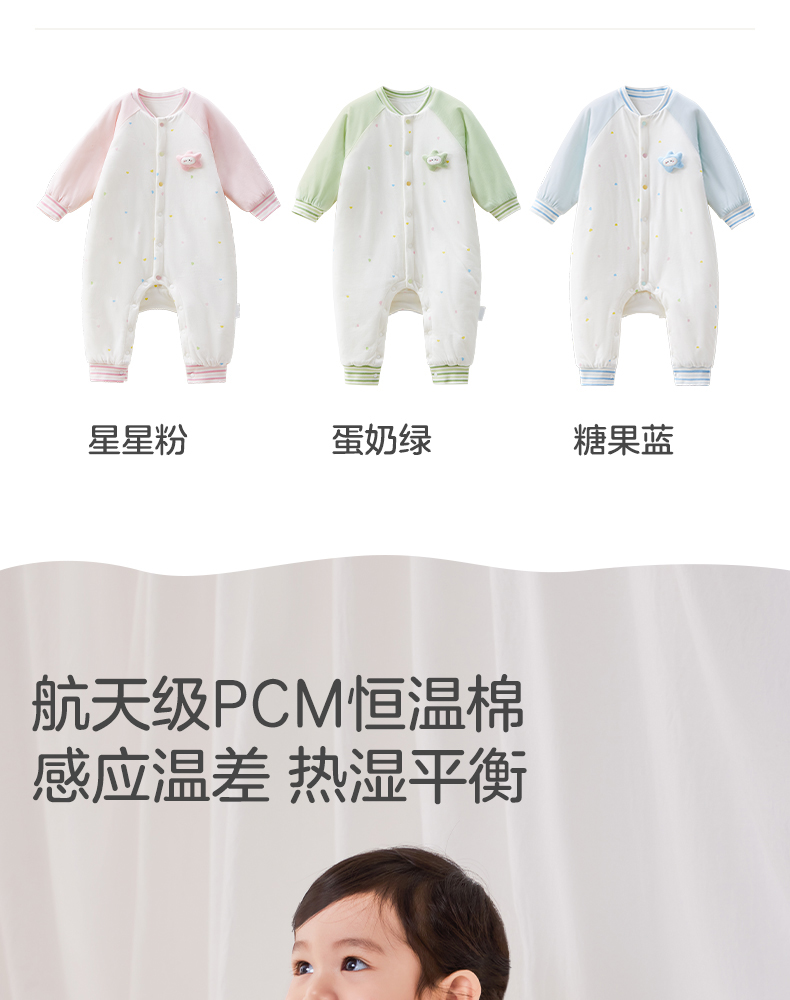 粒粒阳光秋季婴儿衣服小行星恒温夹棉连体衣宝宝婴儿服新
