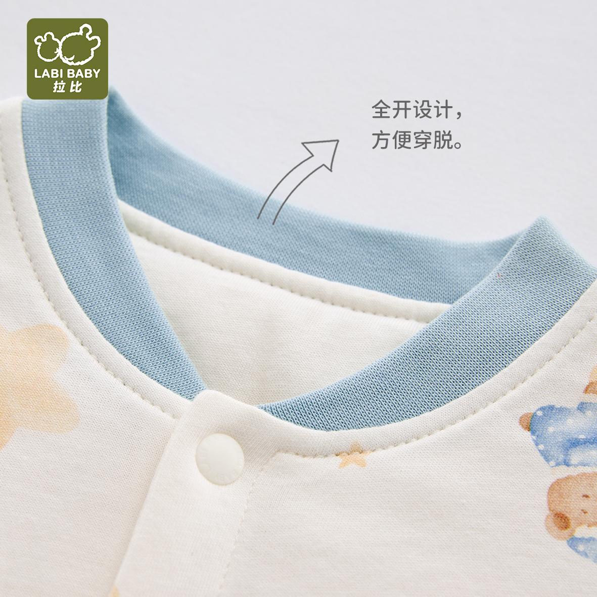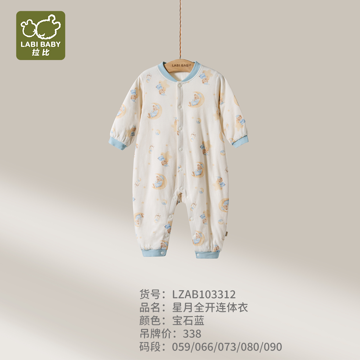拉比童衣J6-1星月全开连体衣蓝LZAB103312