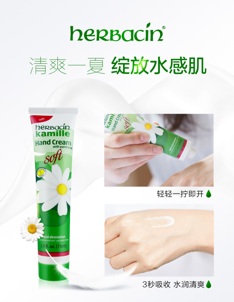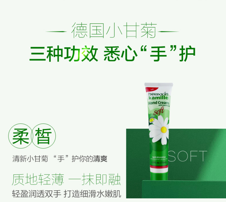 (Herbacin)德国小甘菊柔皙护手霜75ml 长效防裂 嫩滑滋润 补水保湿