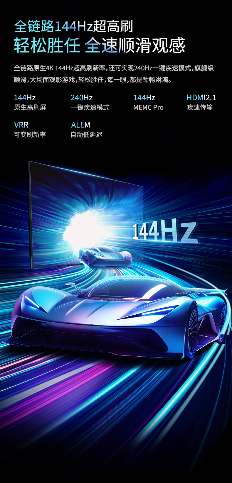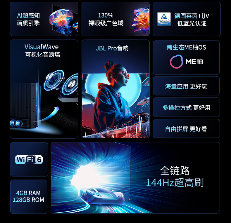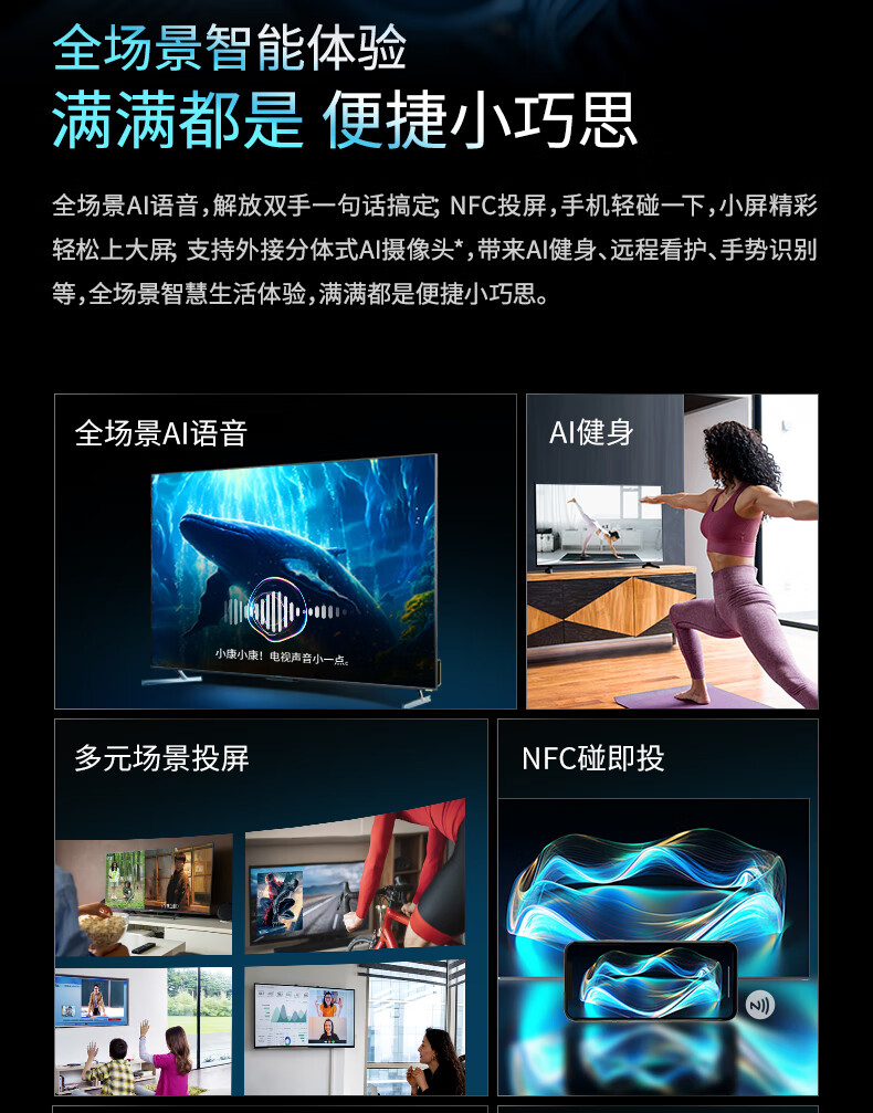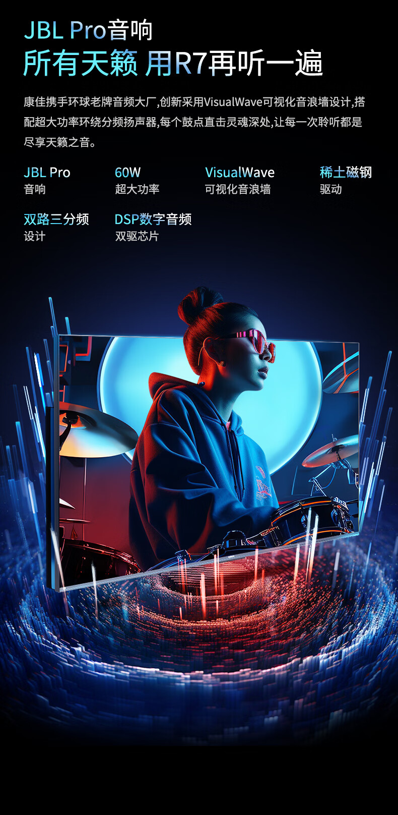 康佳电视 75R7 75英寸 Mini QD-LED 百级分区144Hz 4+128G 4K超清全面屏智能网络液晶平板游戏电视机