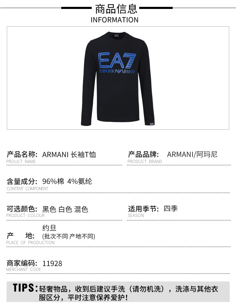 Armani EA7 男士 运动休闲弹棉长袖T恤 11928