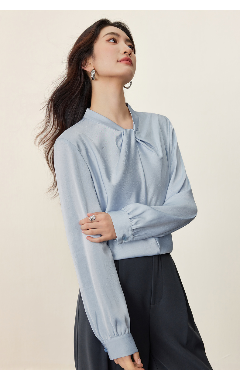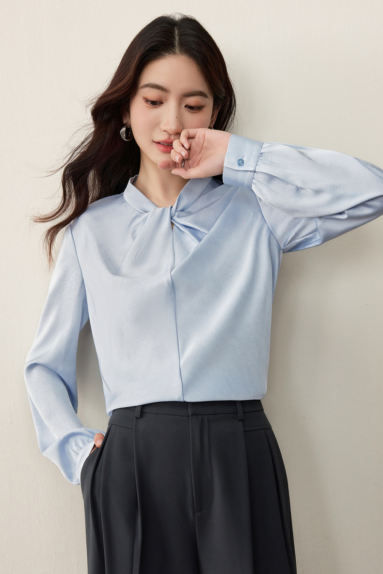 【内购】【领口立体扭结】都市优雅H型领口蝴蝶状扭结立体扭结雪纺衬衫-153VA3032
