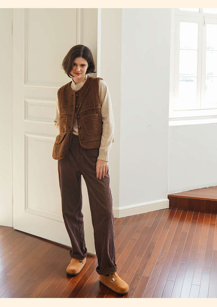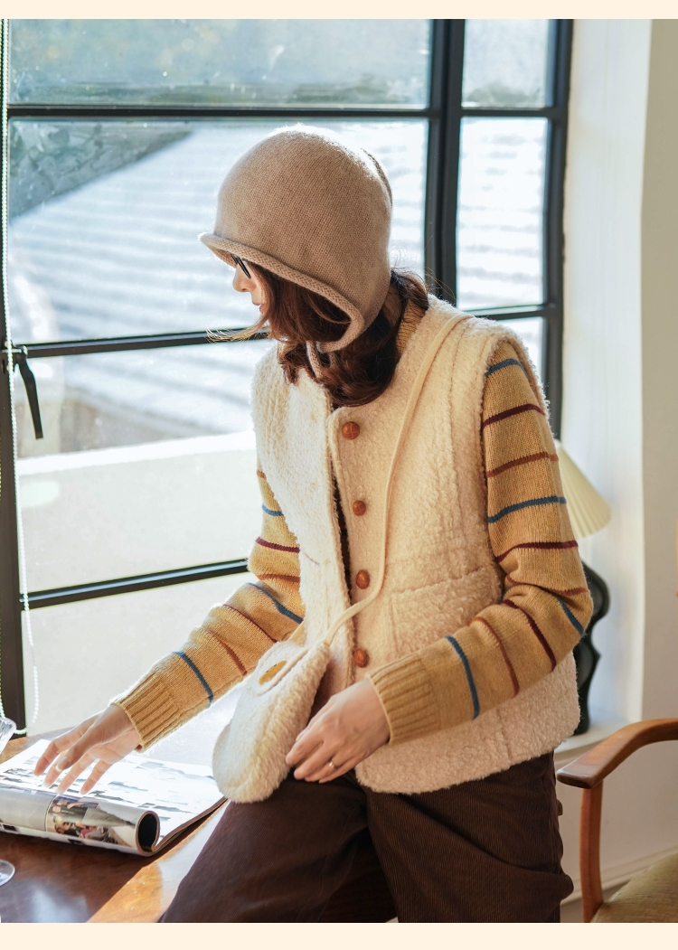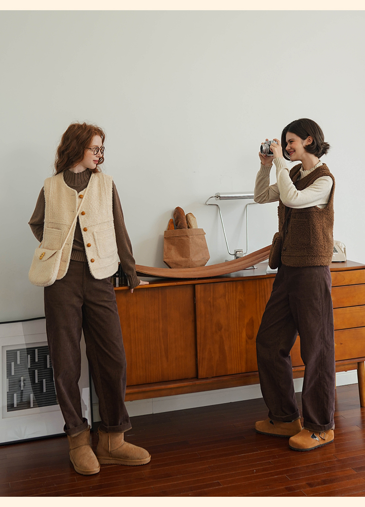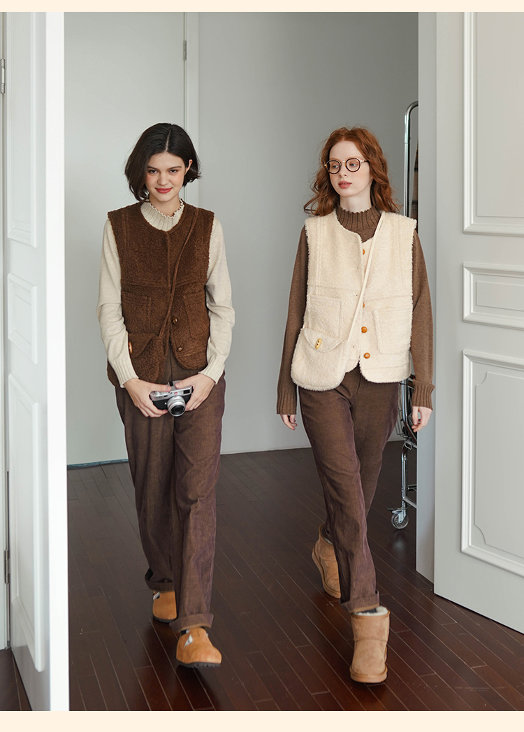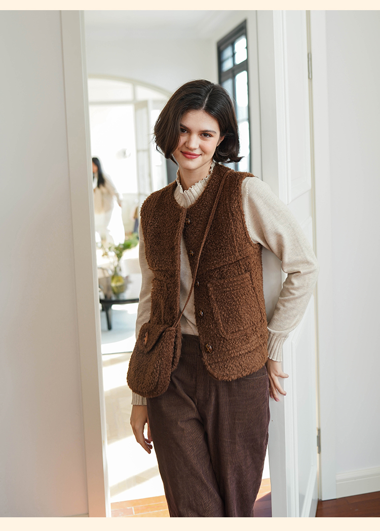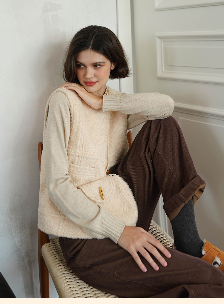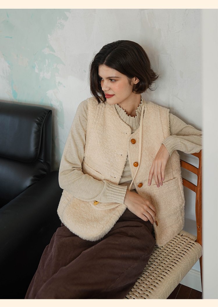 浮生八记/23D225/羊羔绒蘑菇扣马甲