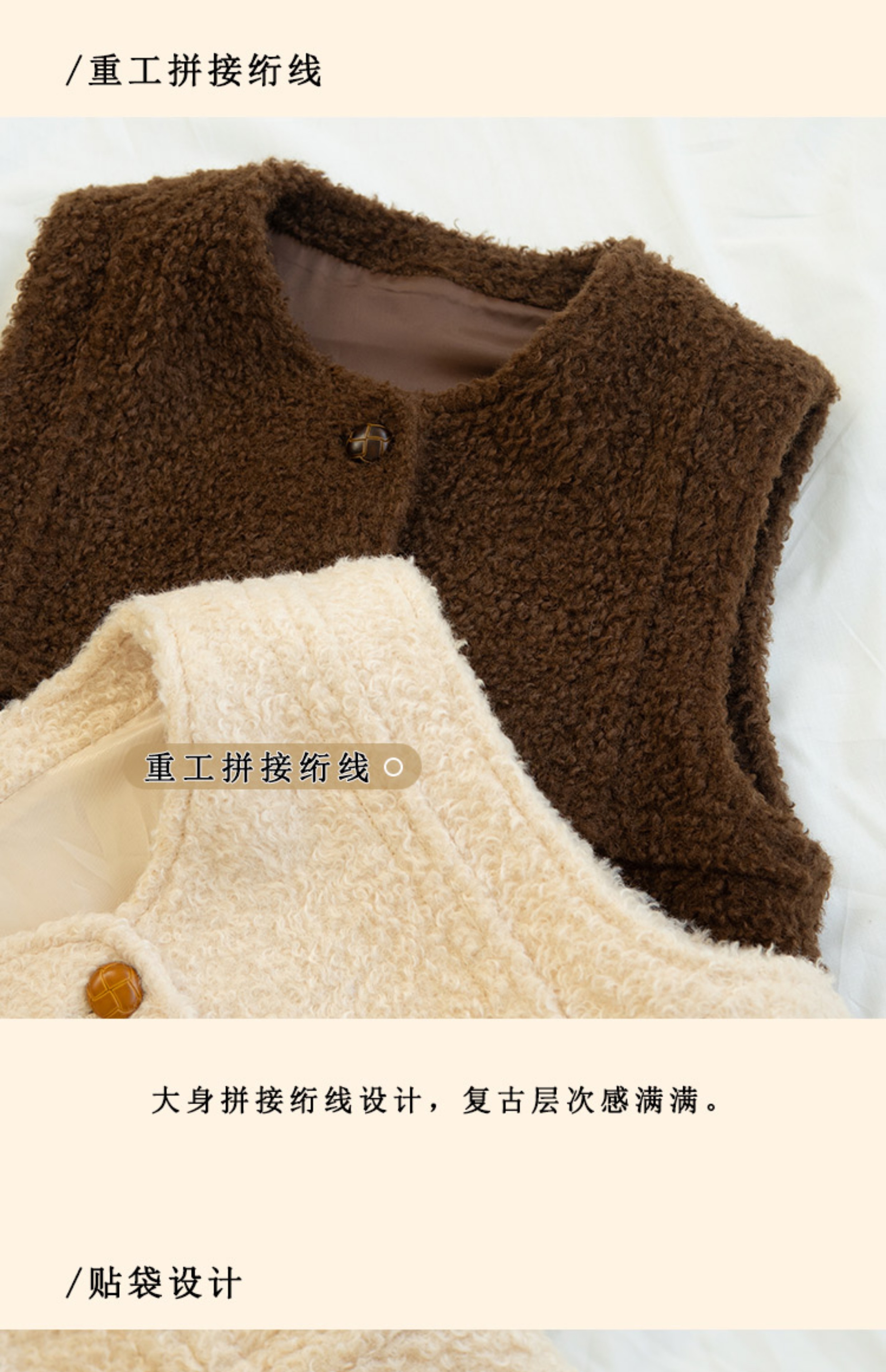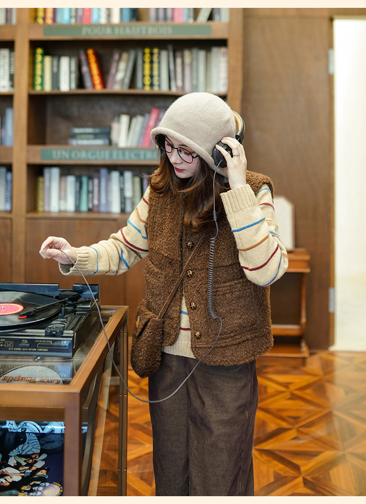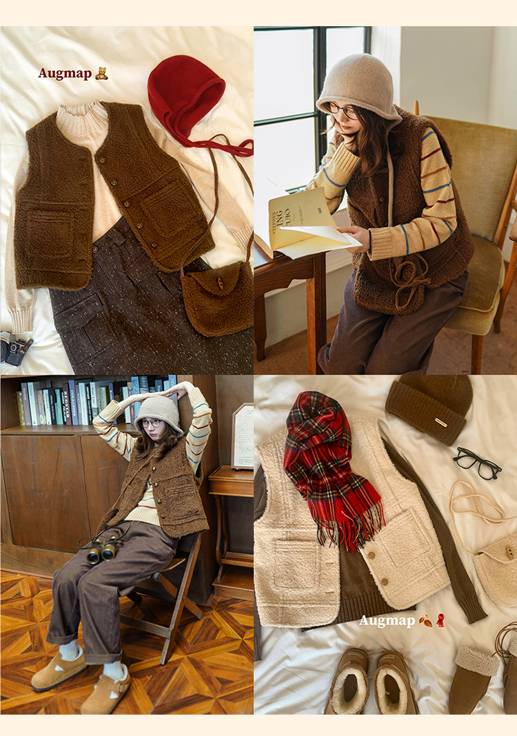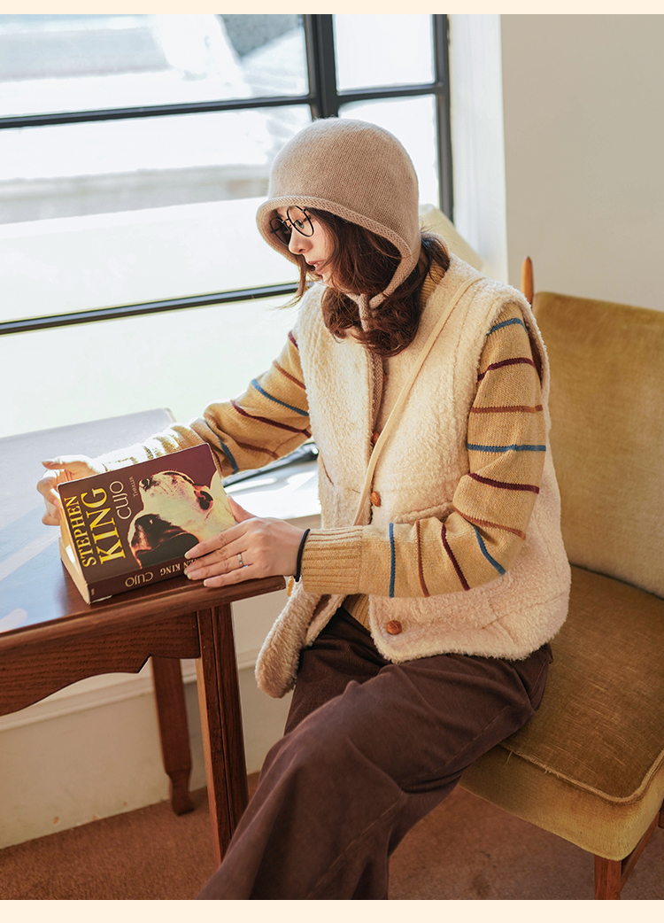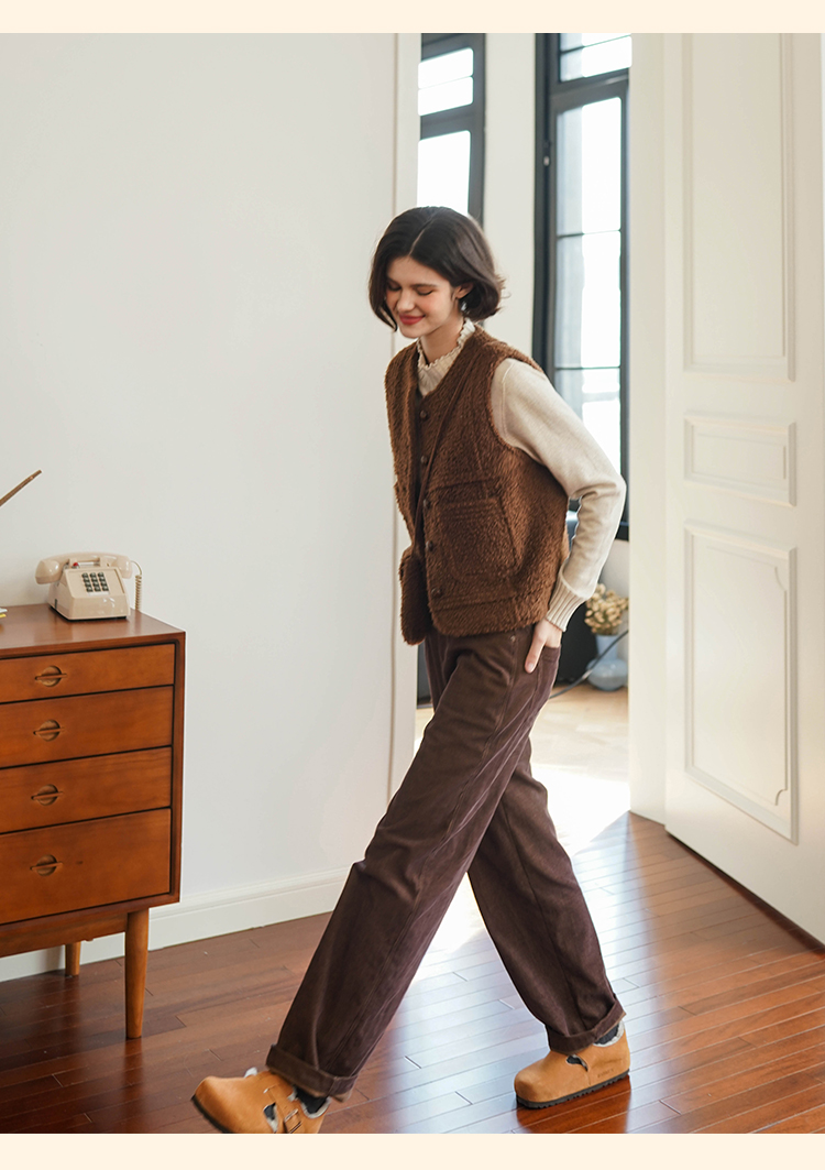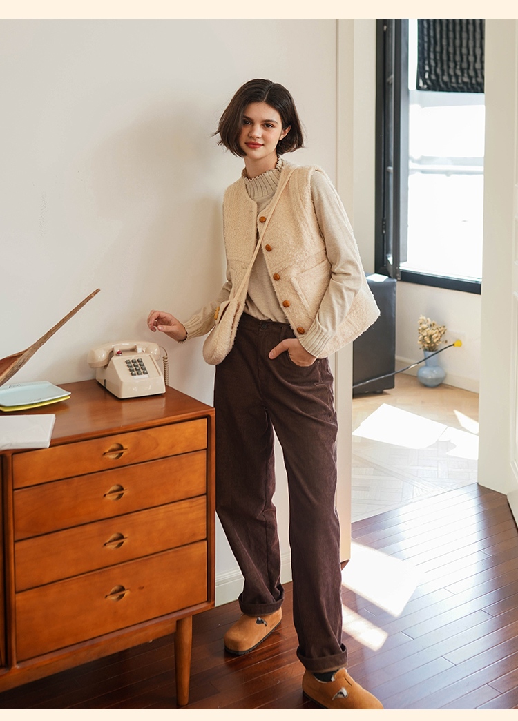 浮生八记/23D225/羊羔绒蘑菇扣马甲
