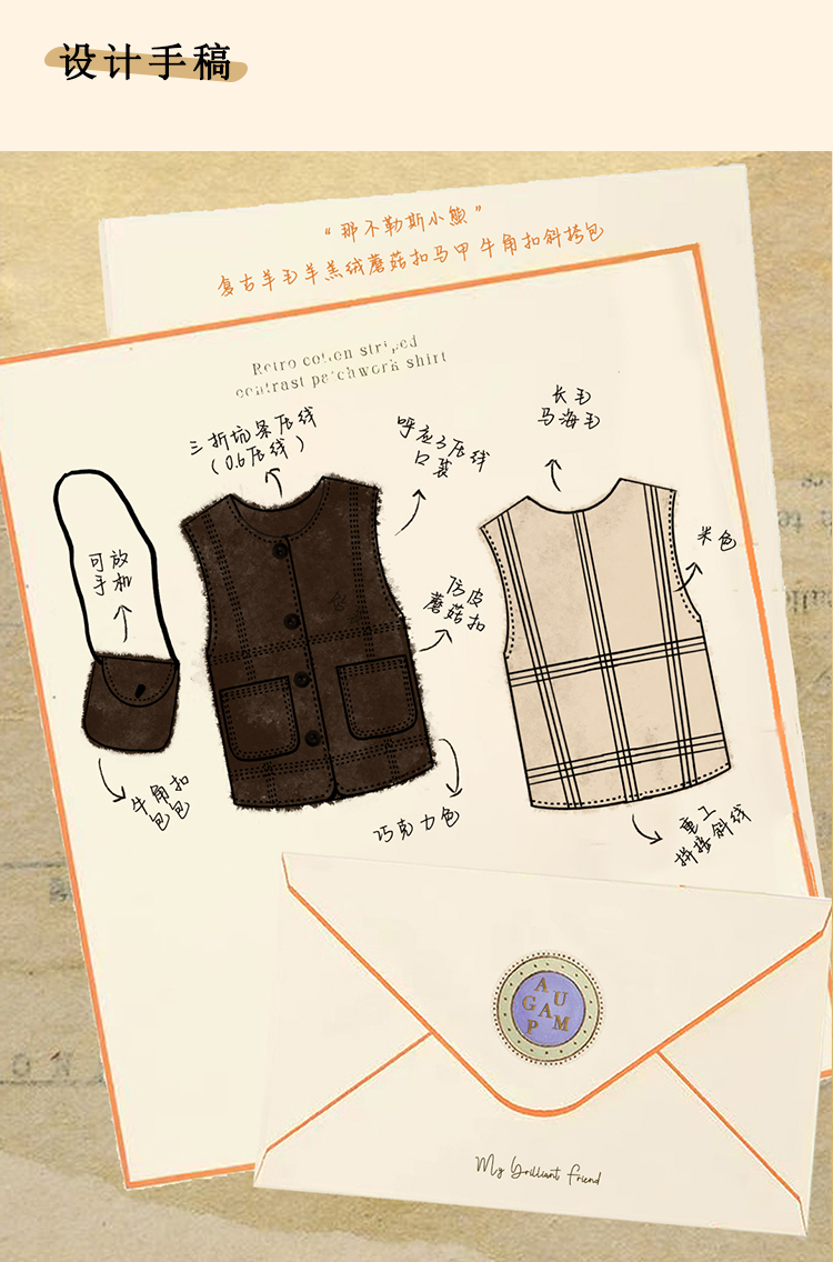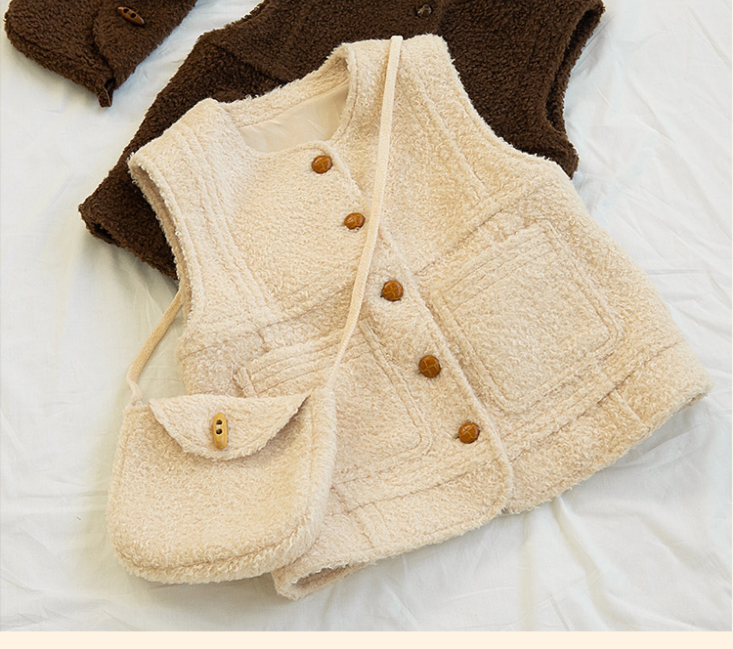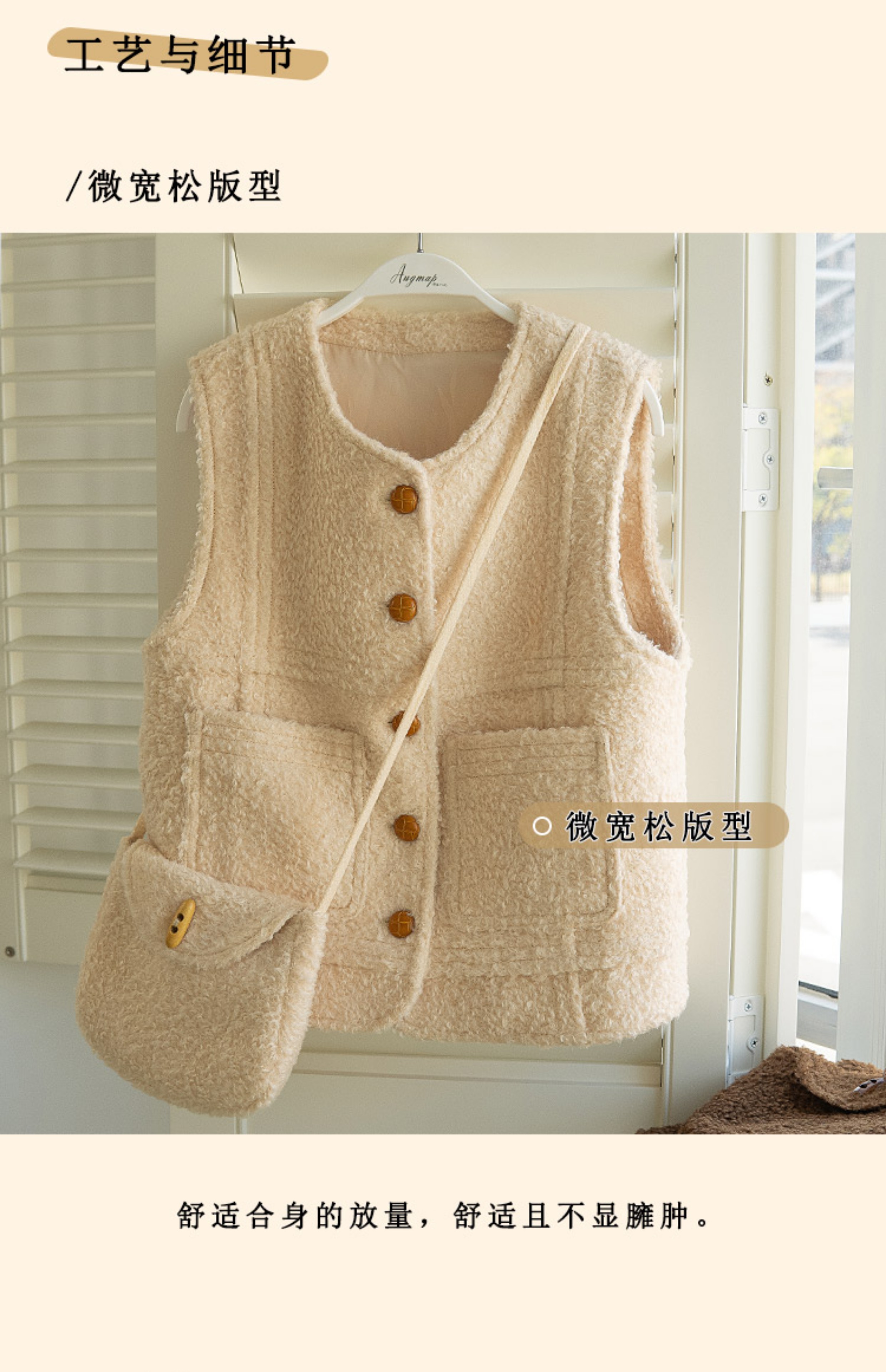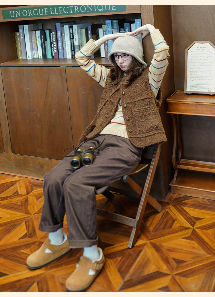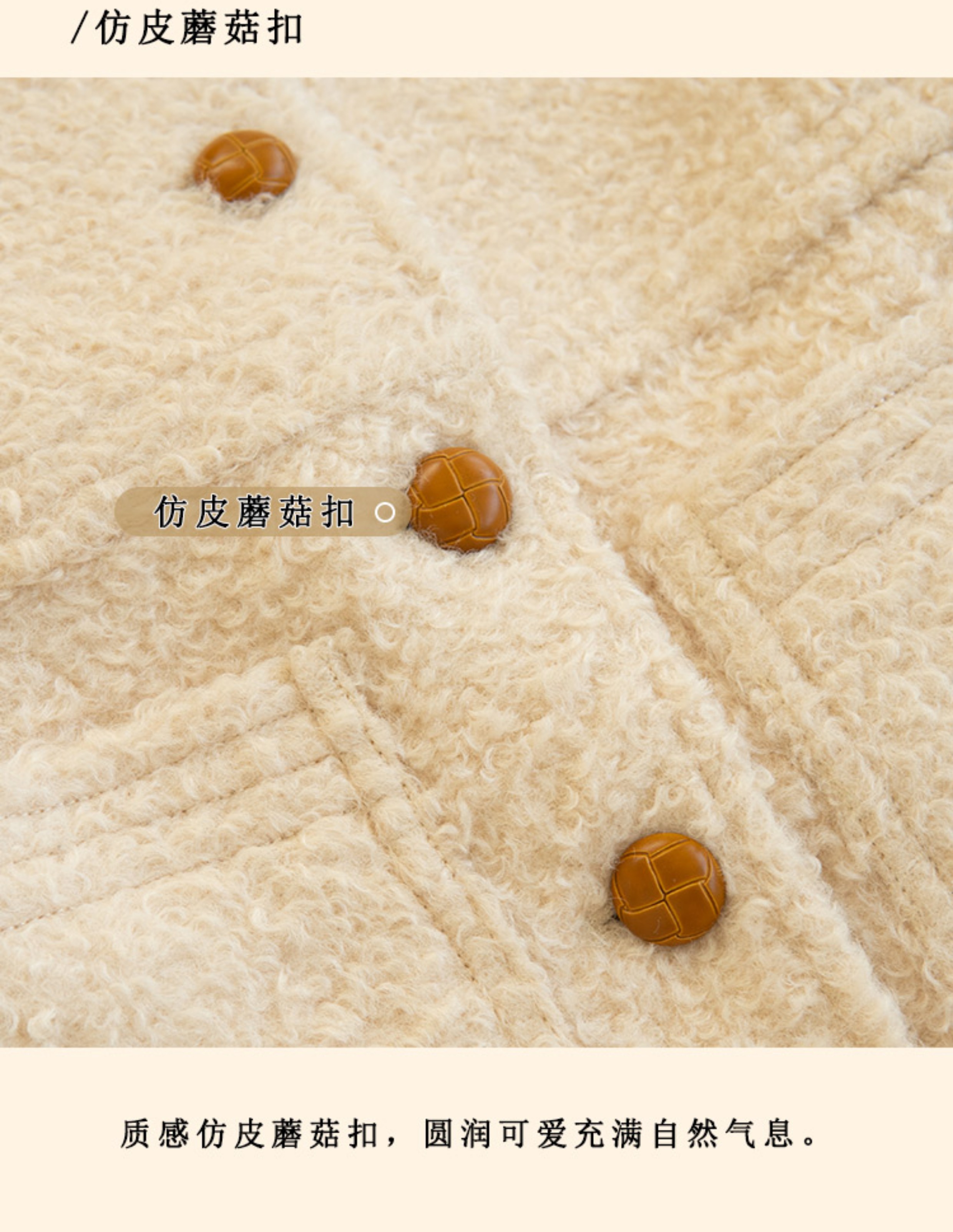 浮生八记/23D225/羊羔绒蘑菇扣马甲