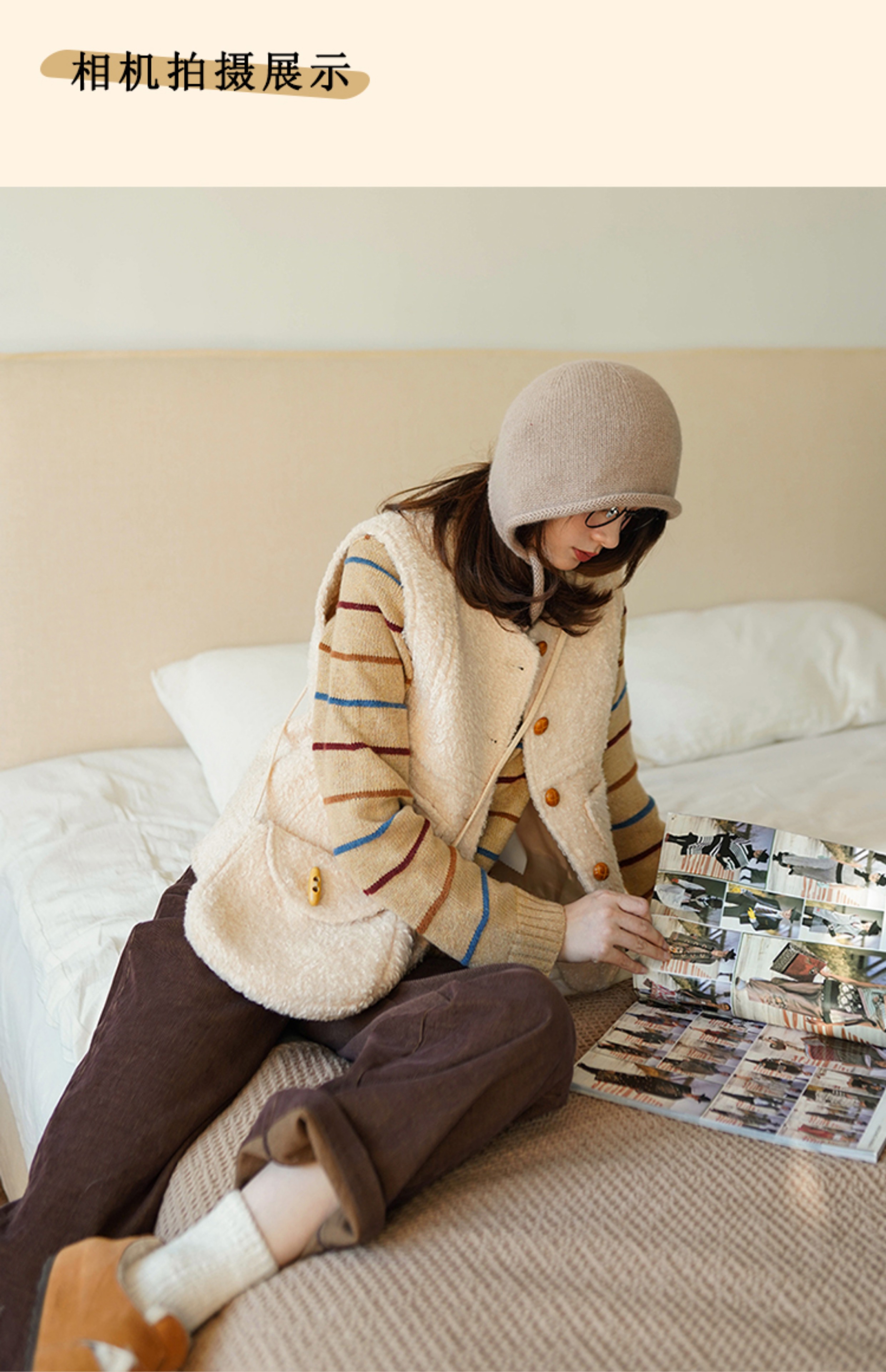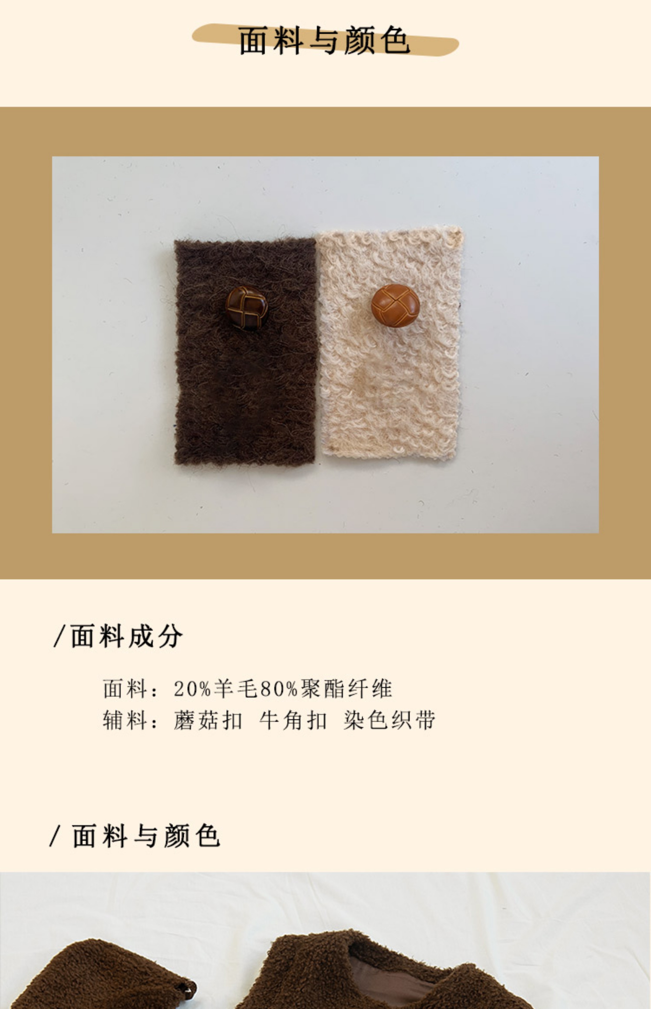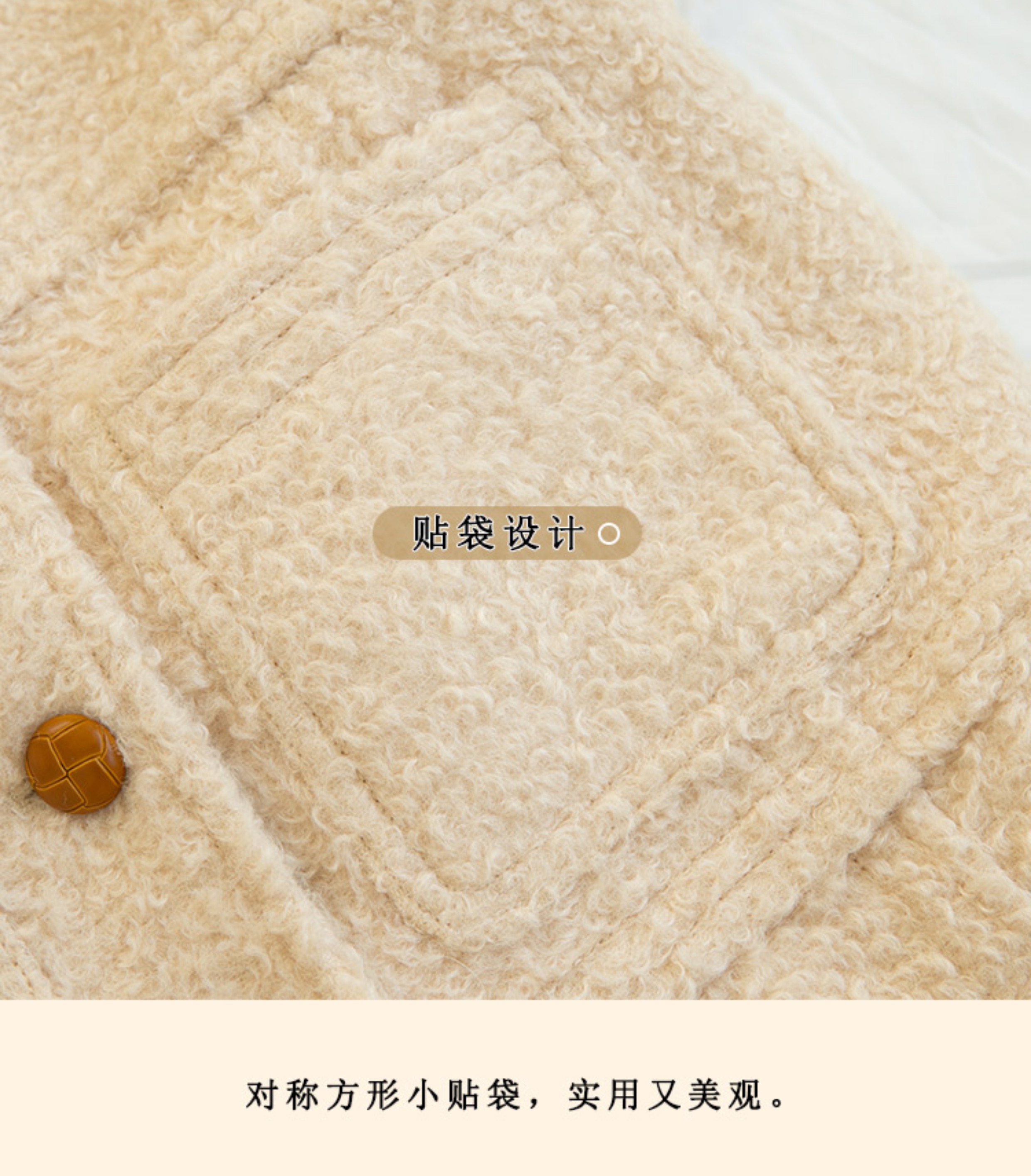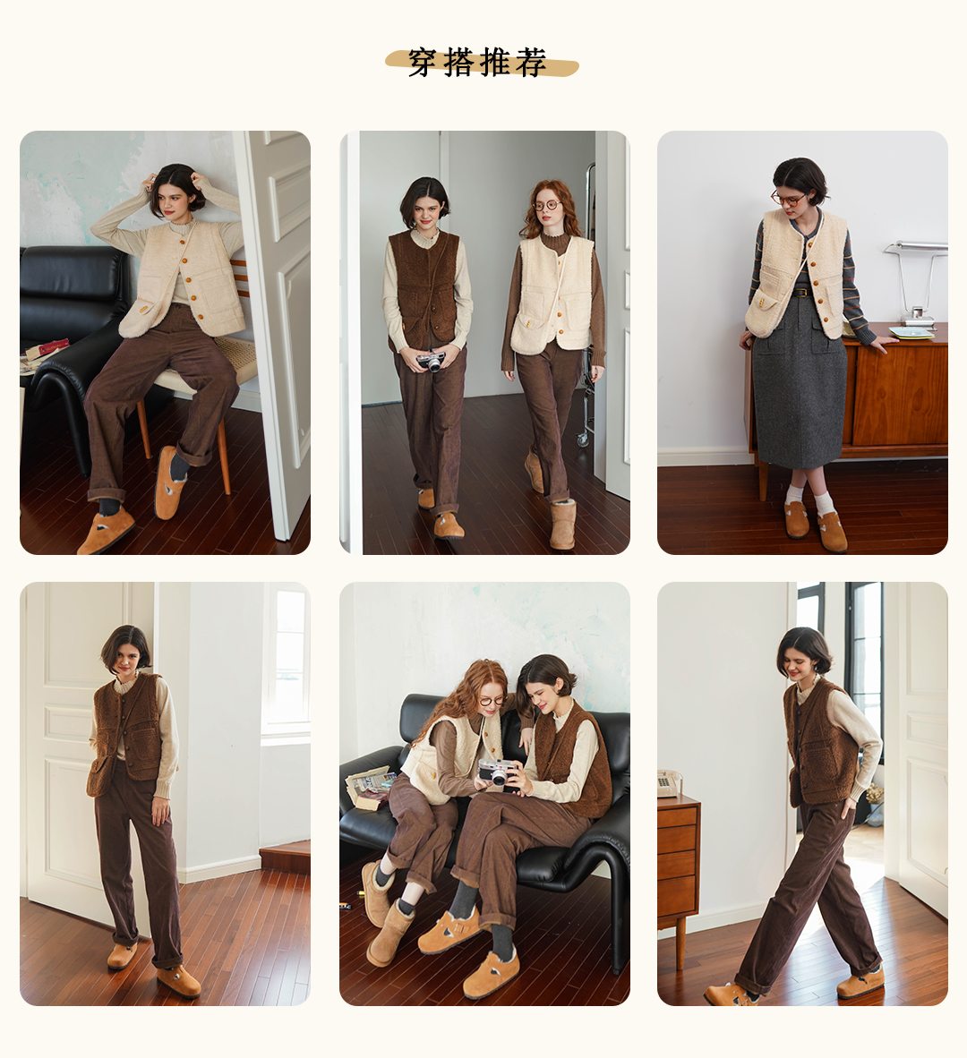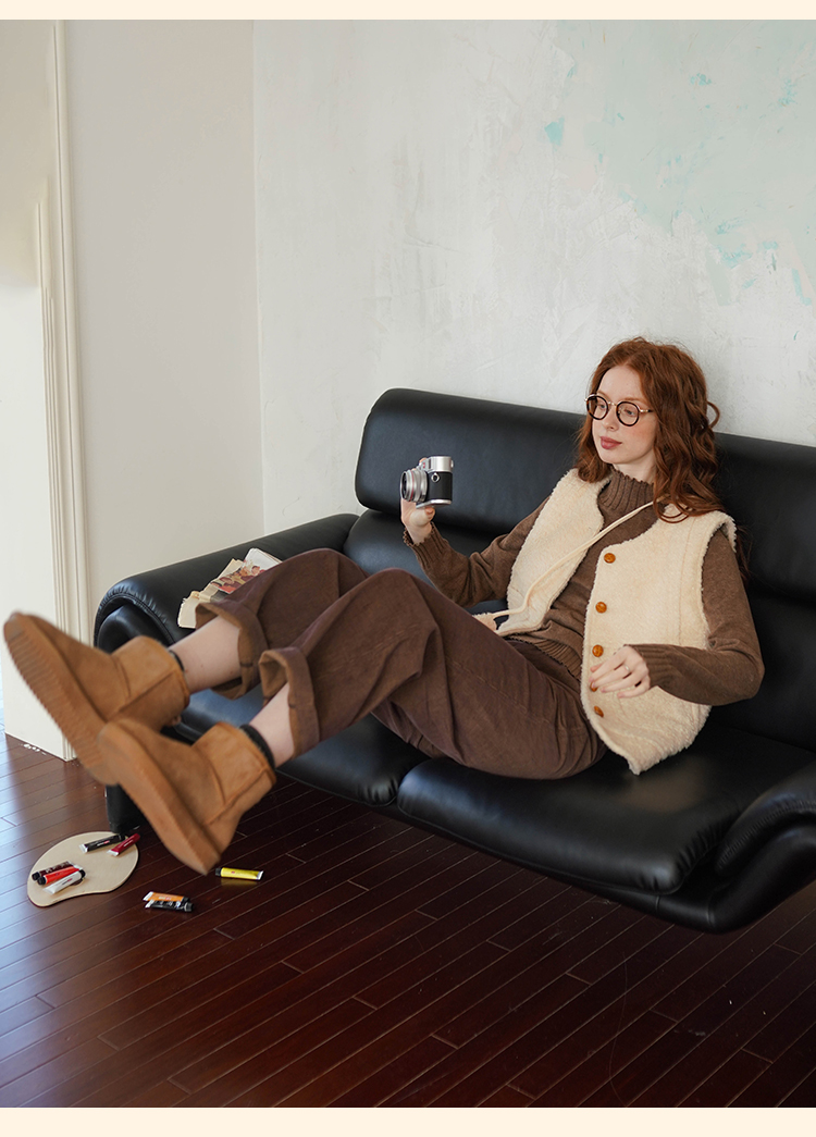 浮生八记/23D225/羊羔绒蘑菇扣马甲