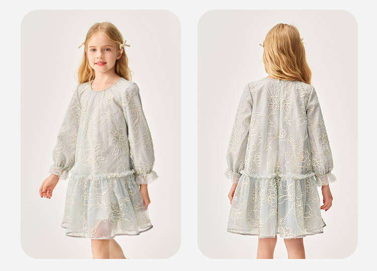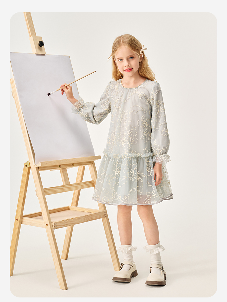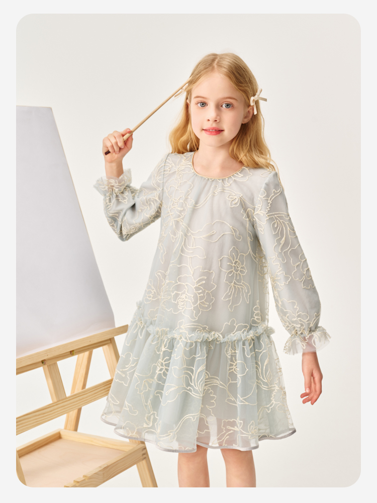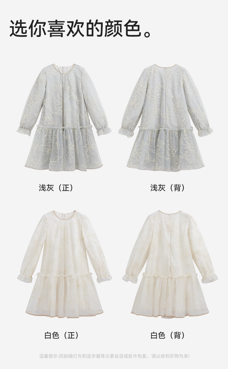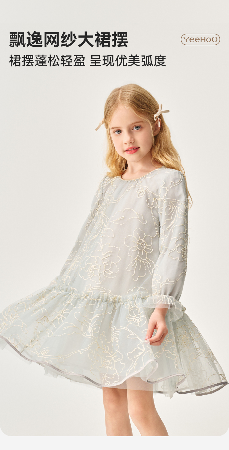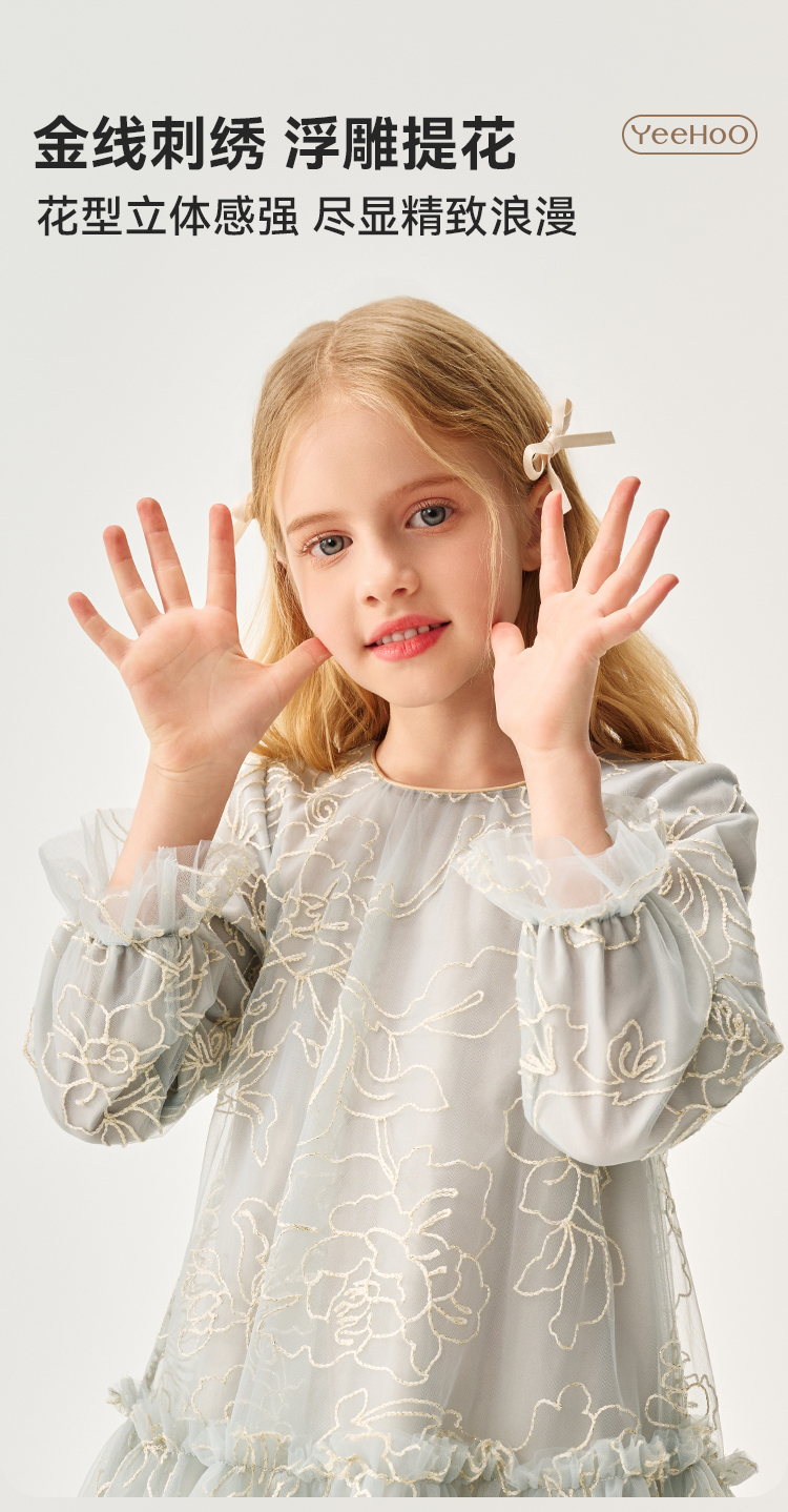 【英氏】【110-170】女童春秋刺绣连衣裙