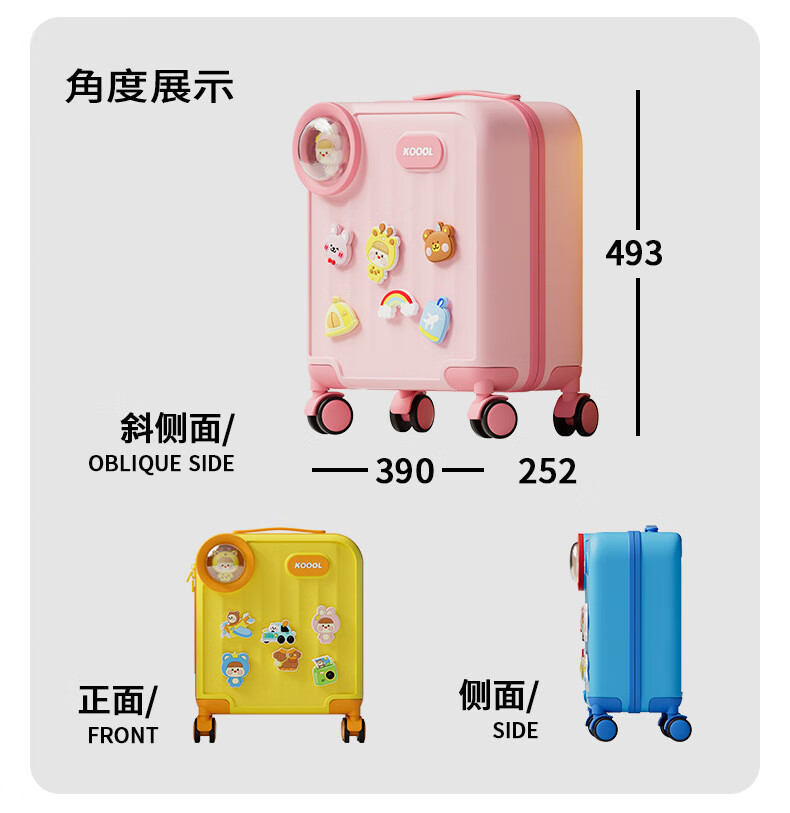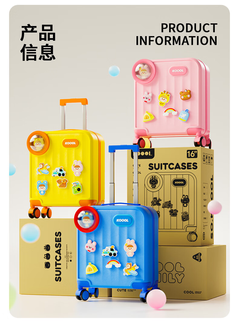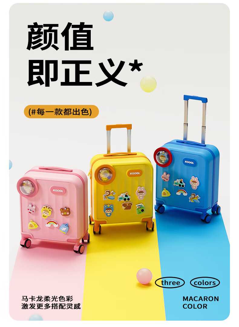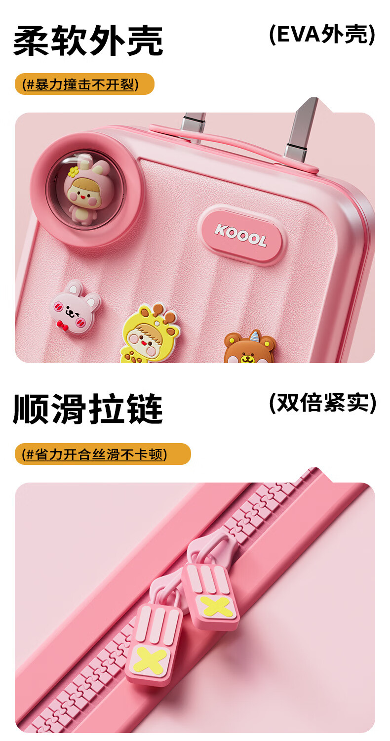 科物酷儿童行李箱16寸拉链万向轮皮箱卡通拉杆箱可登机收纳旅行箱KWK