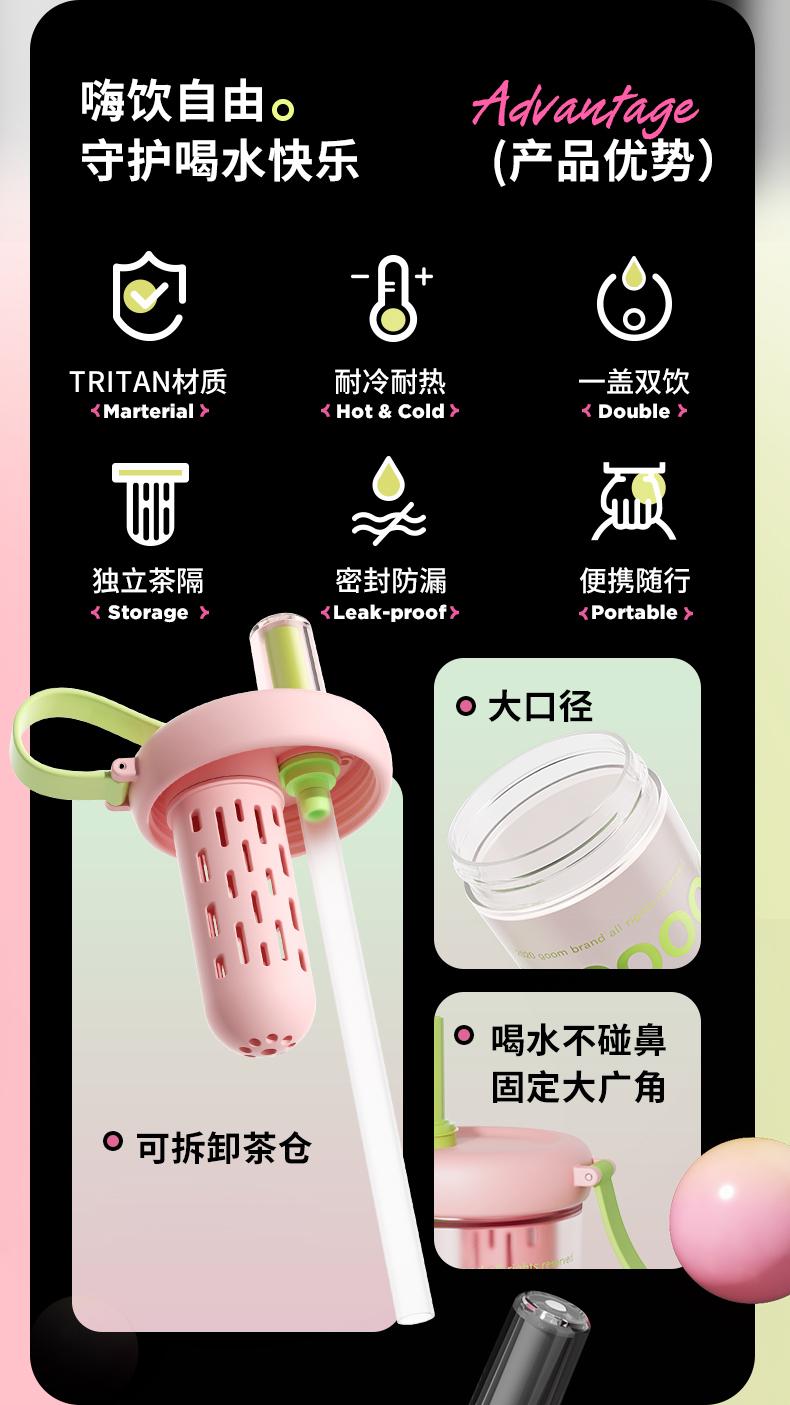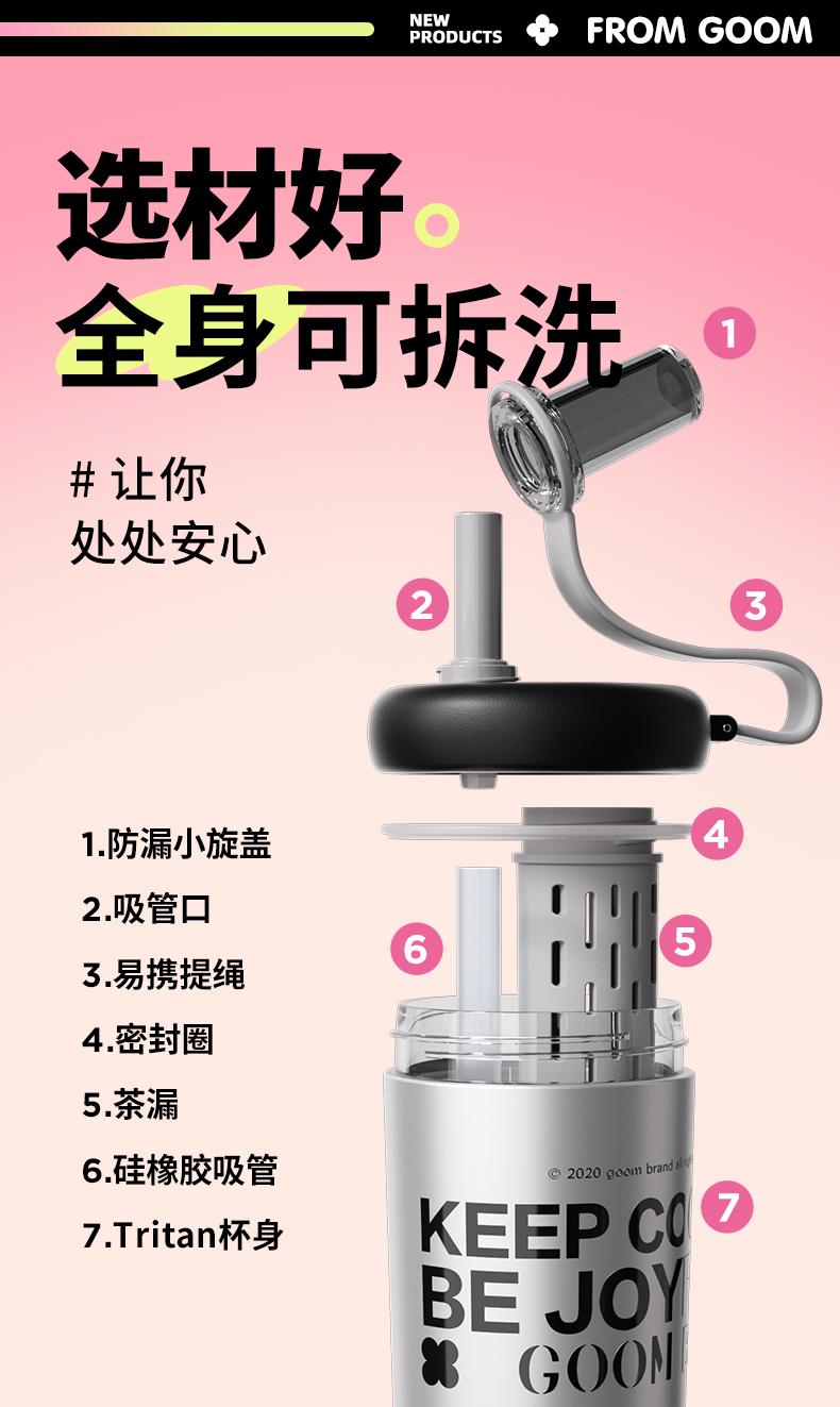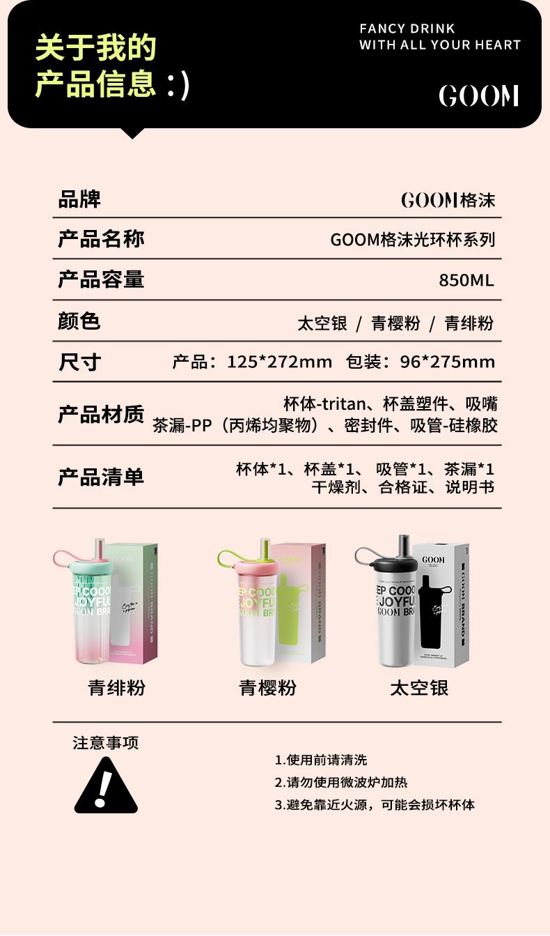 【春日焕新】GOOM大容量夏季水杯渐变色新款高颜值原创设计吸管杯子 TZ