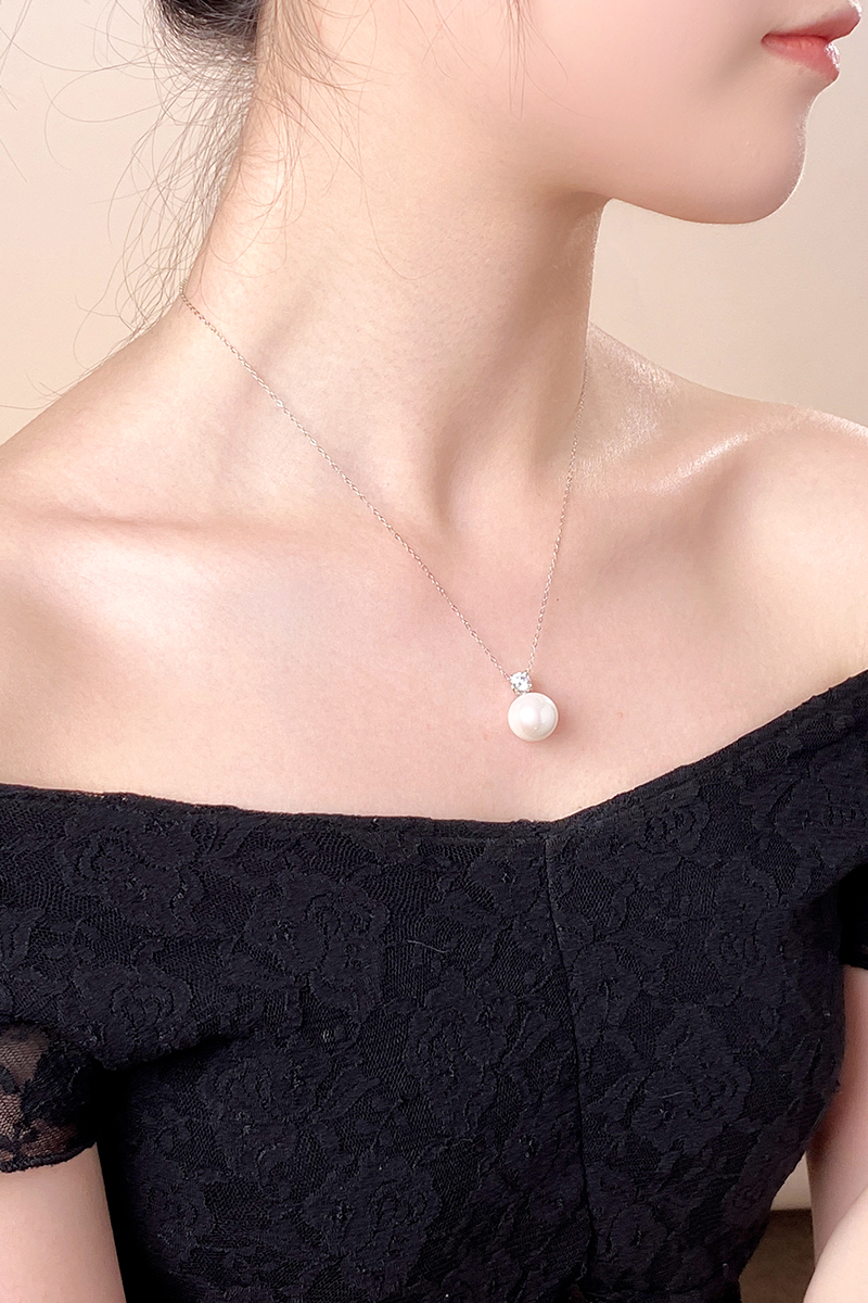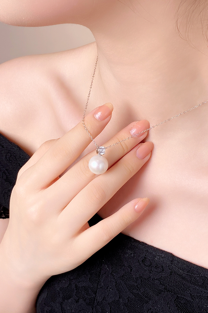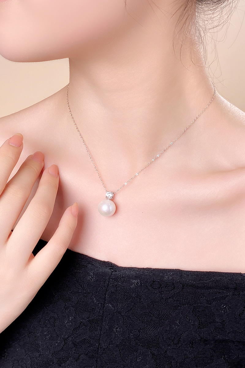 【分销】戴拉珍珠YX6292001,戴妃淡水有核13-14mm珍珠吊坠(赠S925银链),正圆极强光几乎无暇