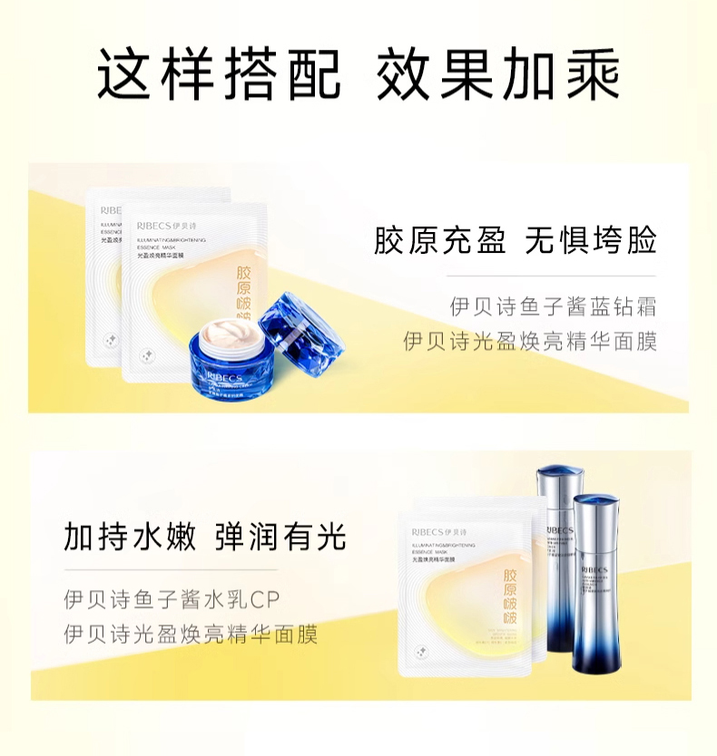 伊贝诗光盈焕亮面膜胶原啵啵保湿紧致水光弹润精华面膜贴女男