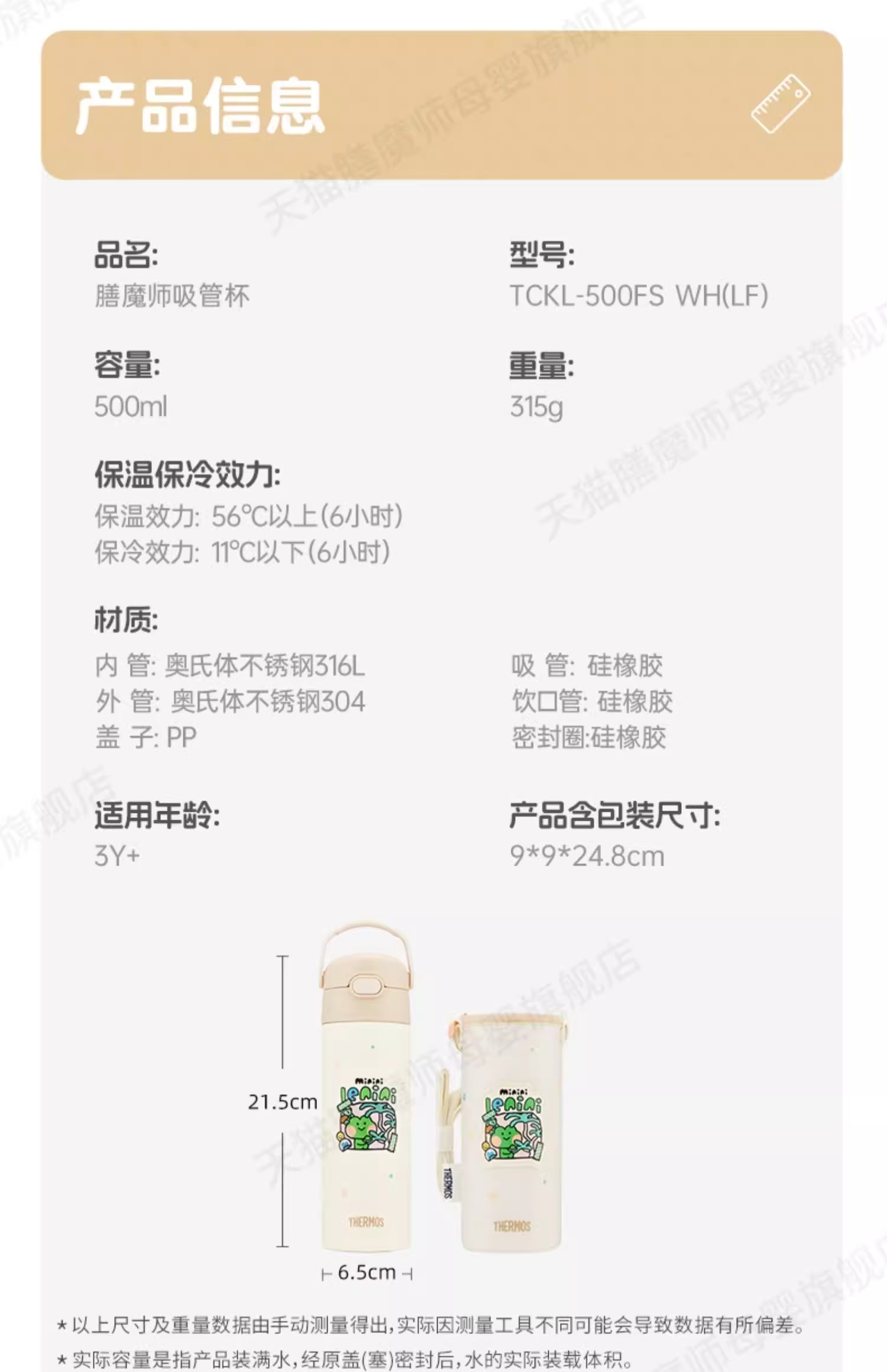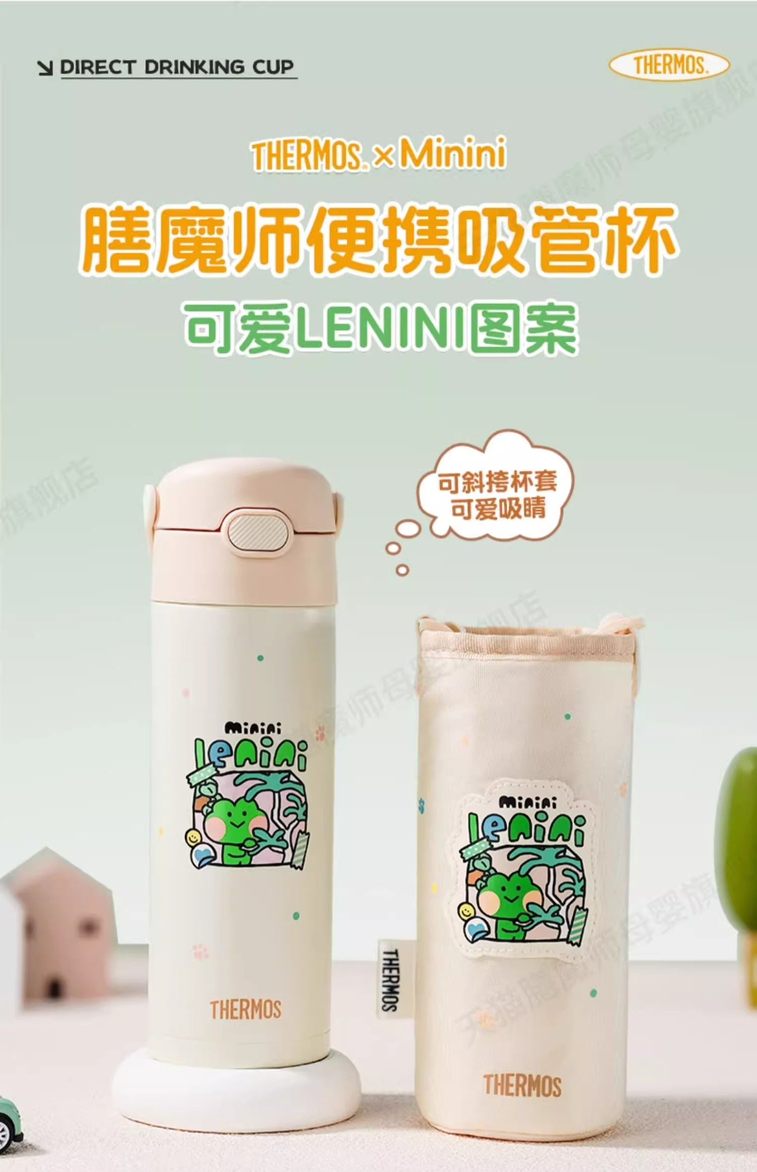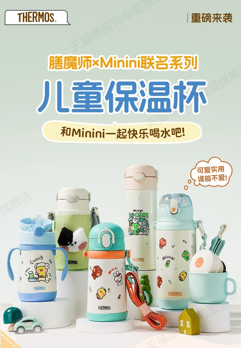 膳魔师高真空不锈钢吸管杯便携儿童保温杯500ml