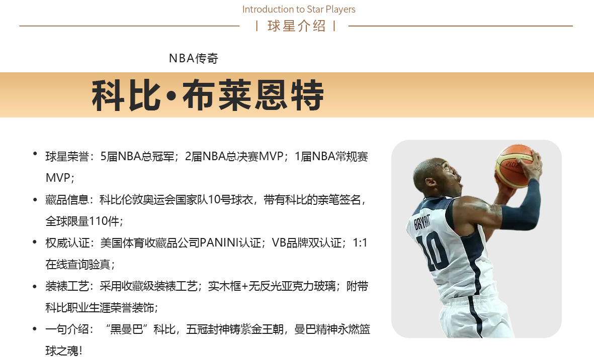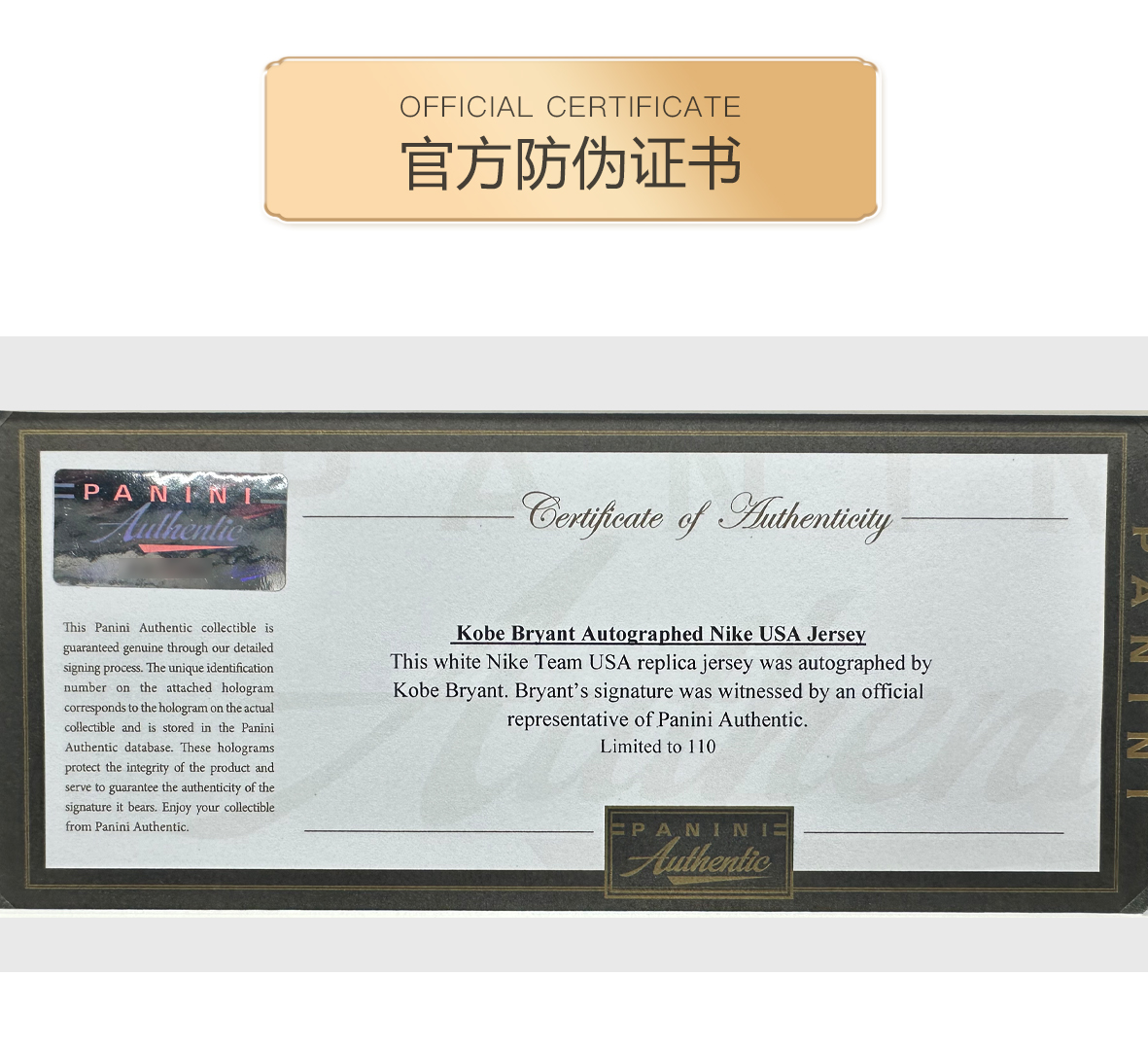 收藏系列 科比 国家队10号白色限量版 正面 亲笔签名球衣